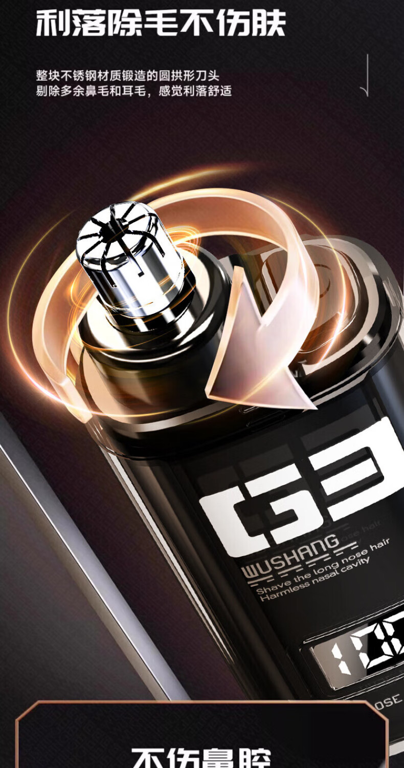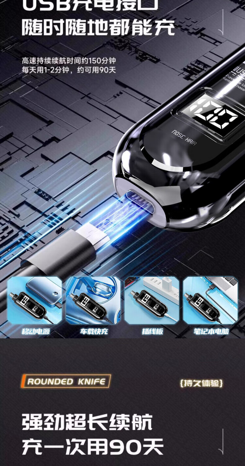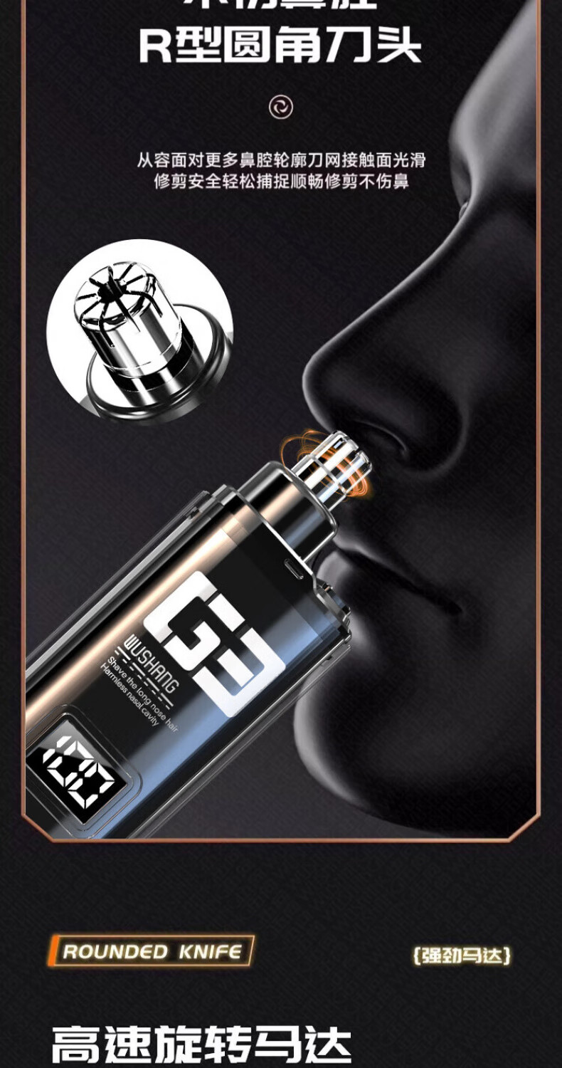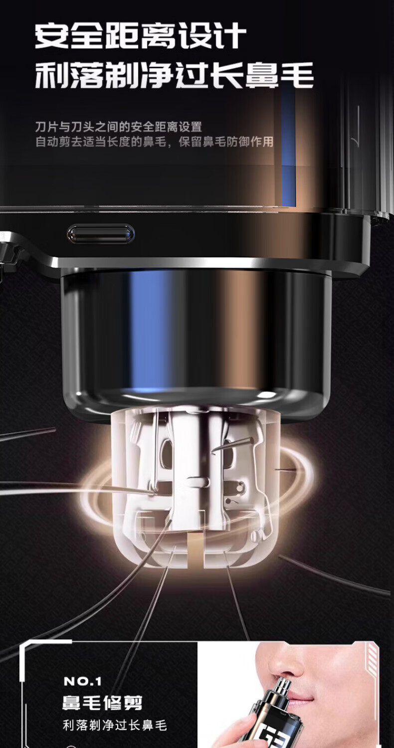 AILUKI日本高端充电鼻毛修剪器男生电动鼻毛剪刀神器男士鼻孔修理清理女 【曜夜黑】闪充款【39万99转力】续航598天