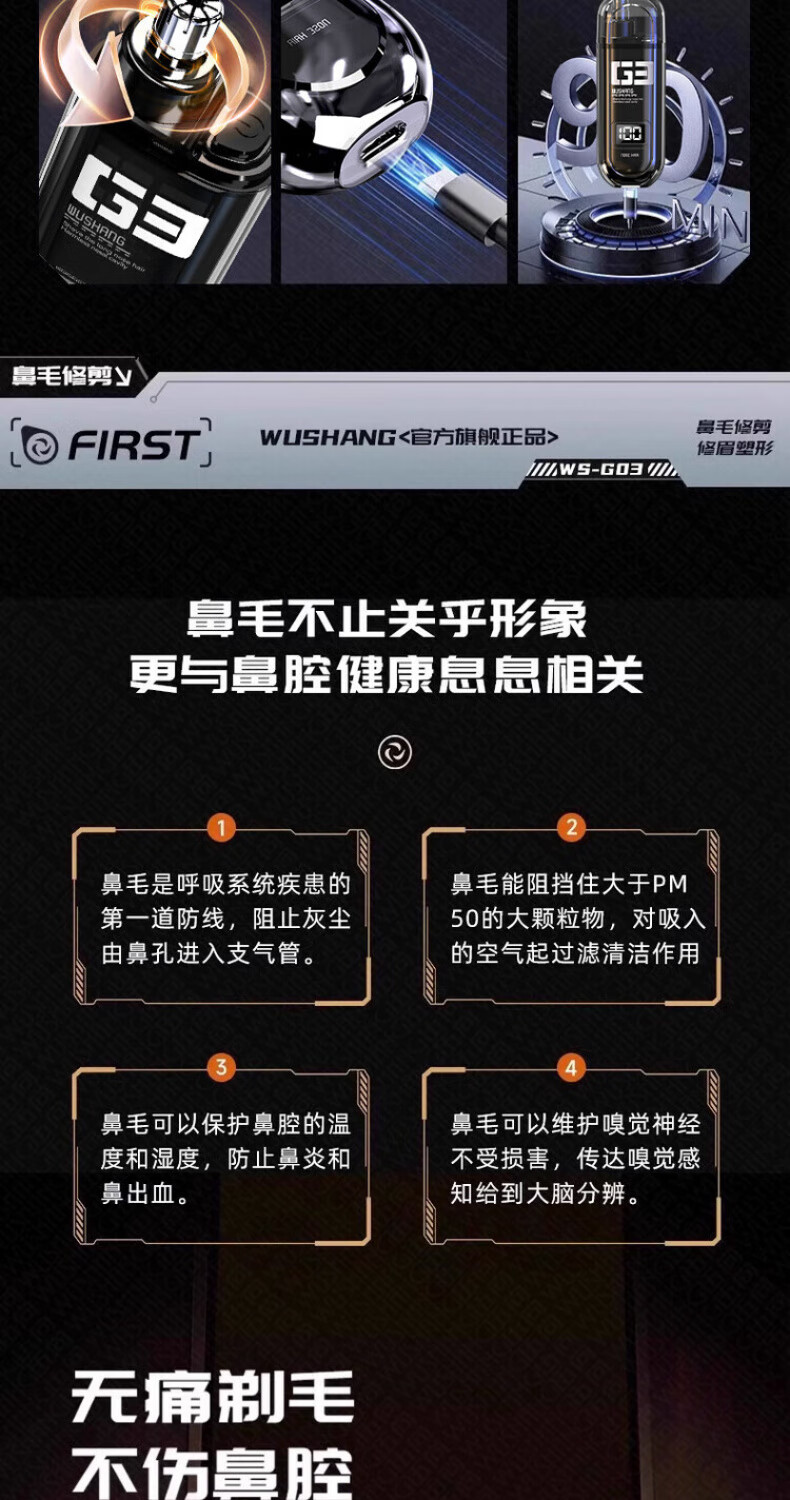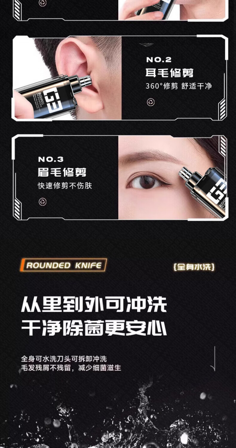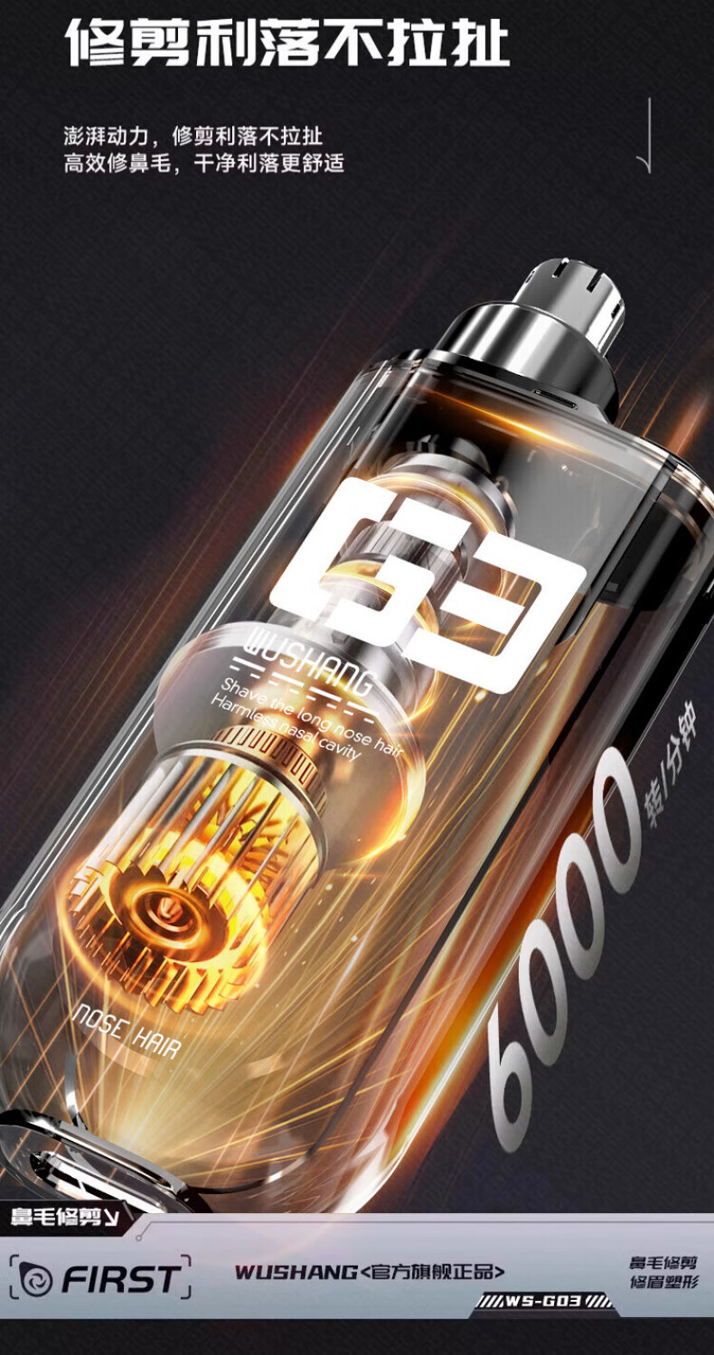 AILUKI日本高端充电鼻毛修剪器男生电动鼻毛剪刀神器男士鼻孔修理清理女 【曜夜黑】闪充款【39万99转力】续航598天