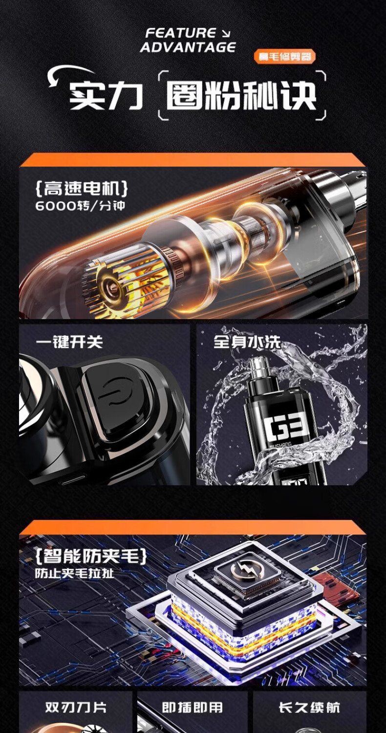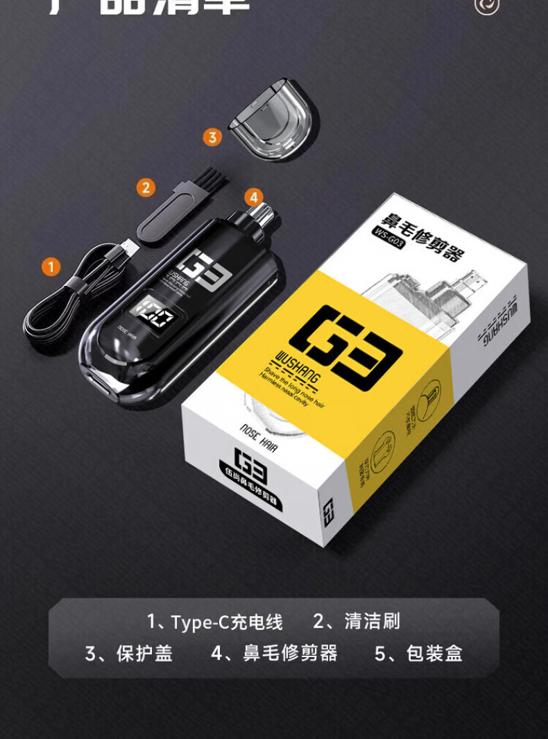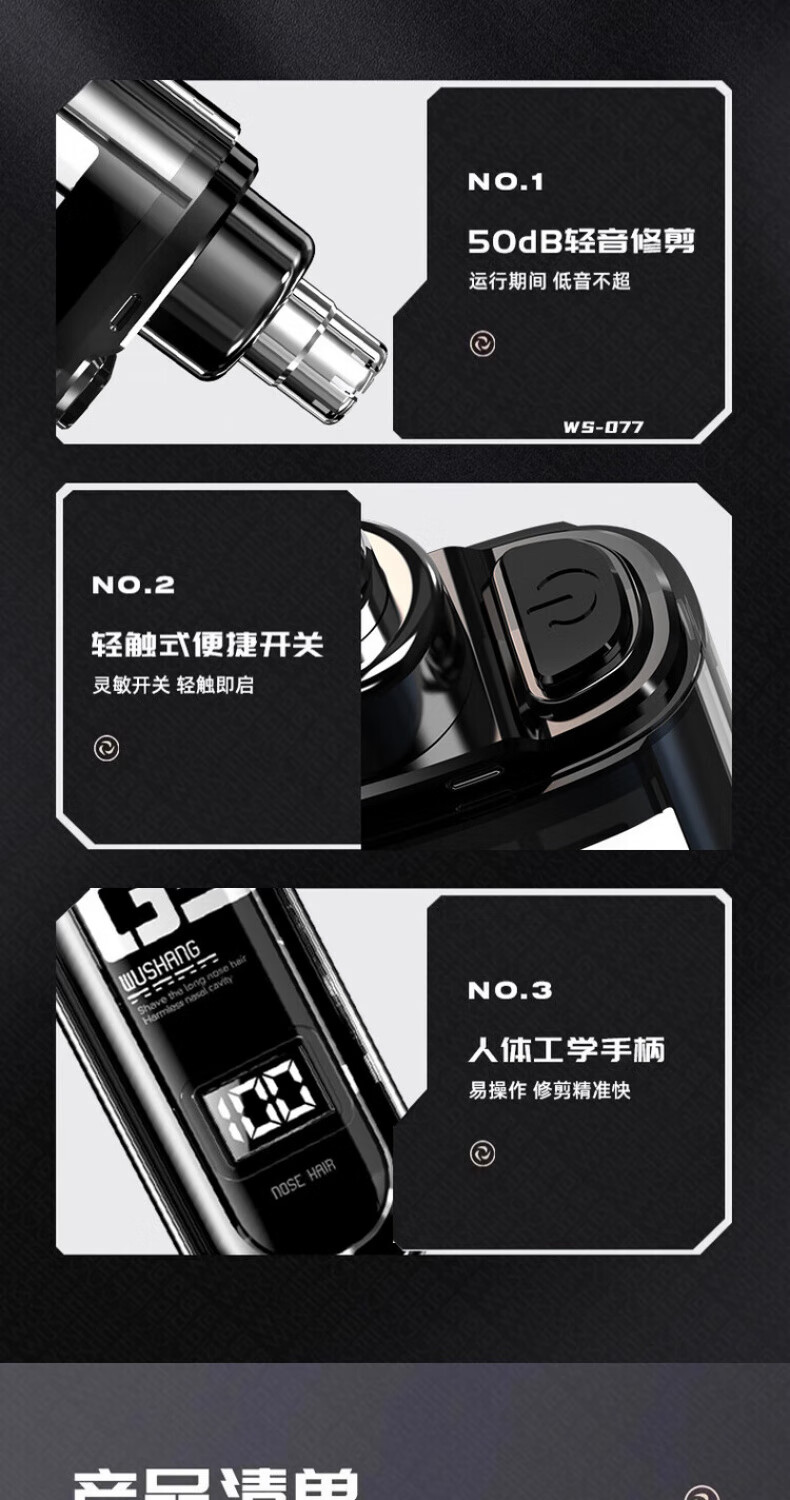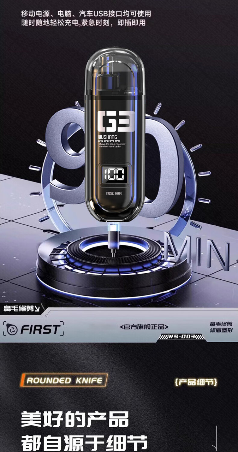 AILUKI日本高端充电鼻毛修剪器男生电动鼻毛剪刀神器男士鼻孔修理清理女 【曜夜黑】闪充款【39万99转力】续航598天