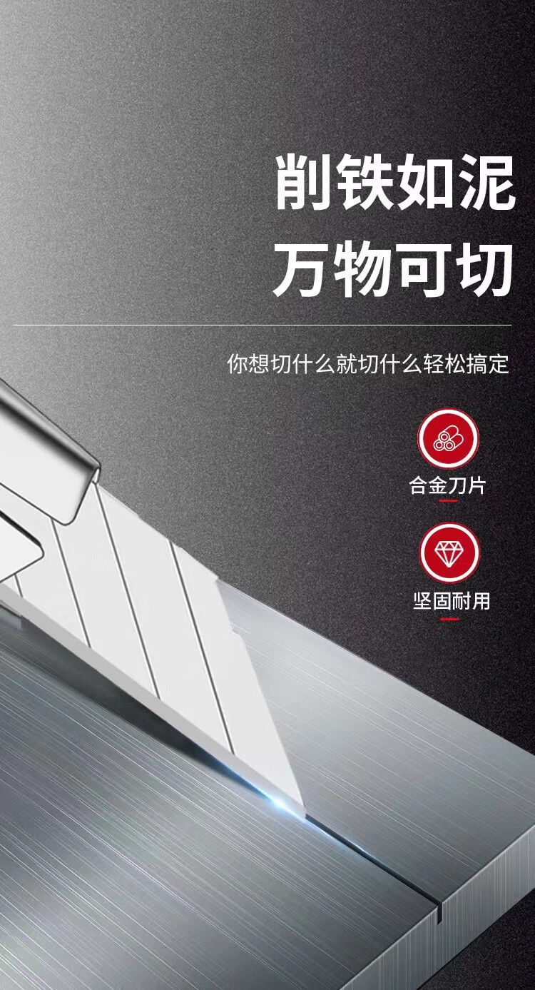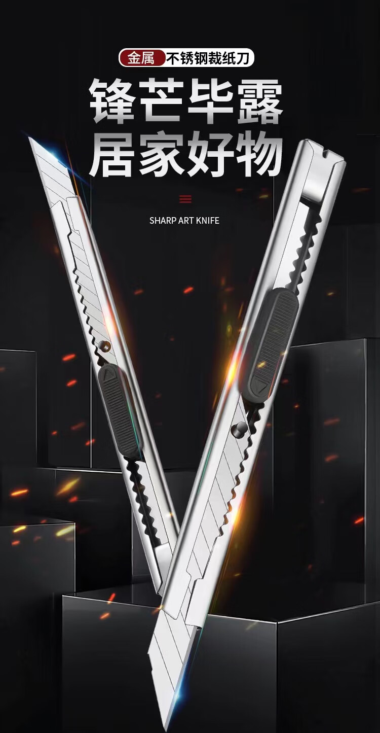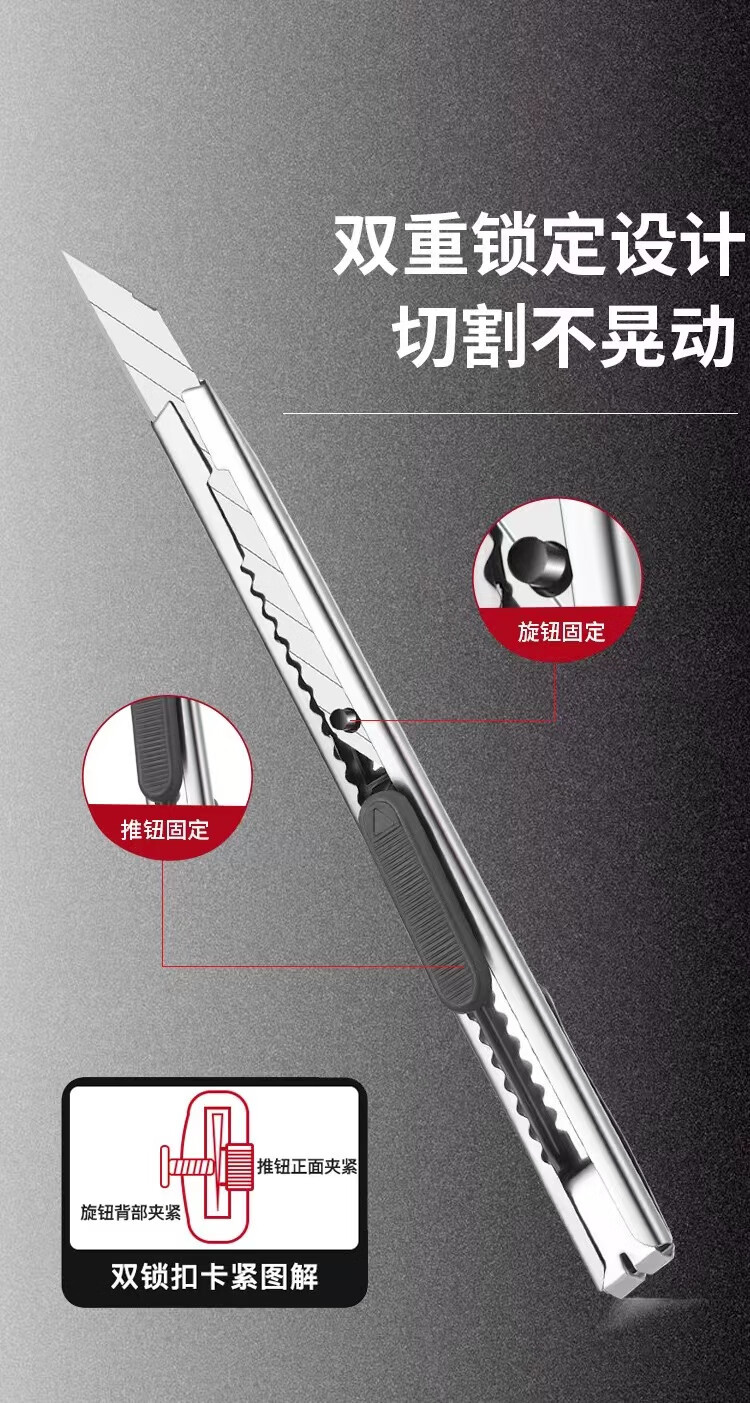 金属小号美工刀伸缩快递刀自动锁小刀多功能 优质金属防锈耐用 家用便携不伤手物流用 1把