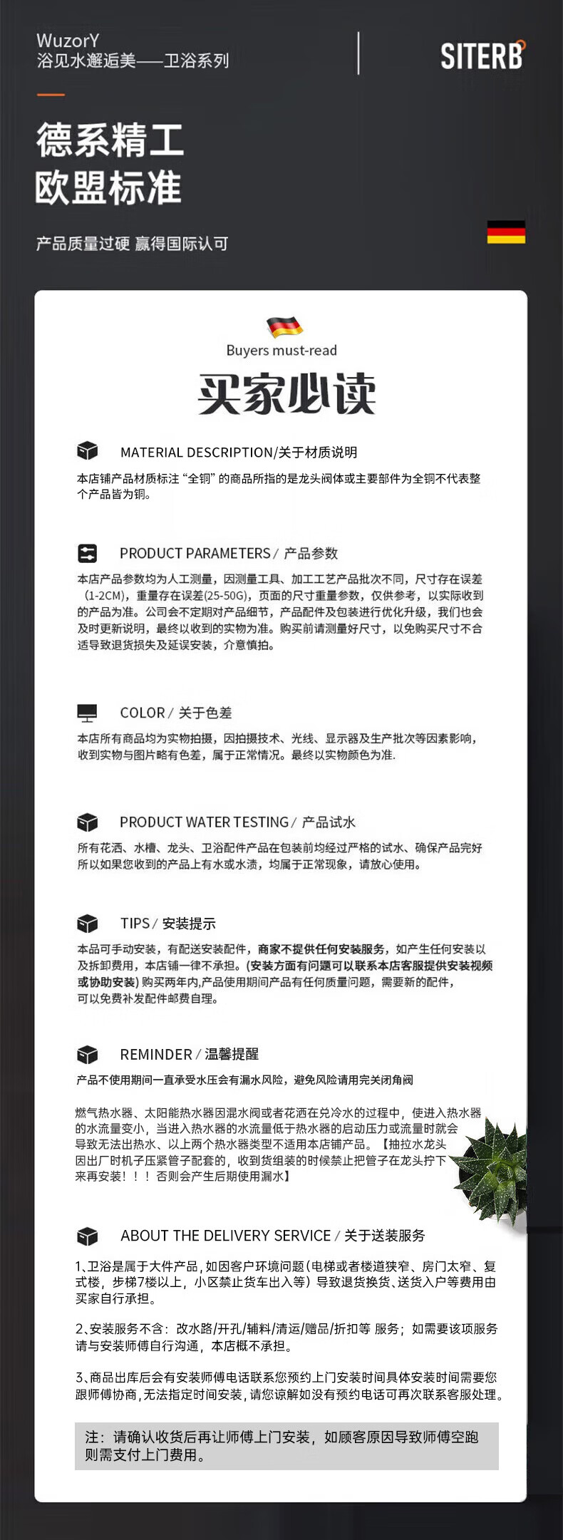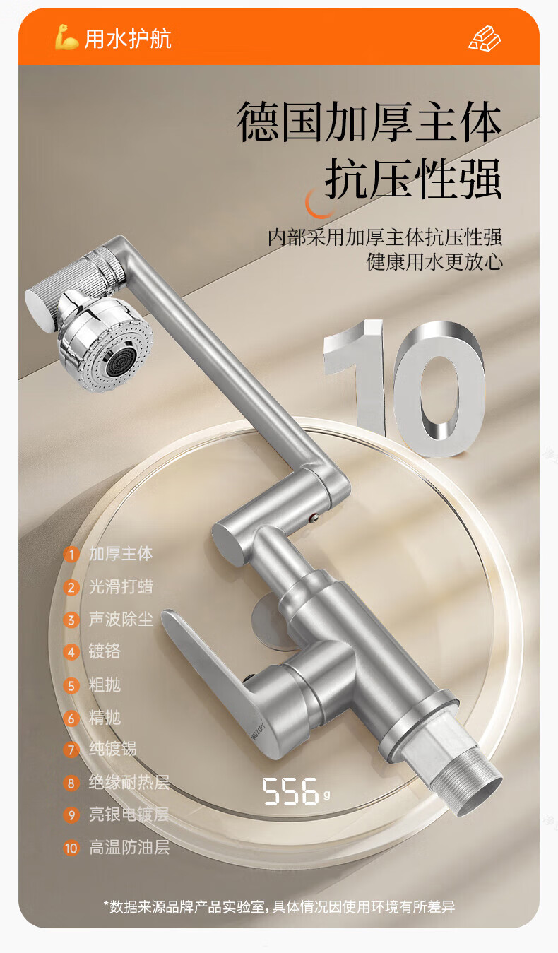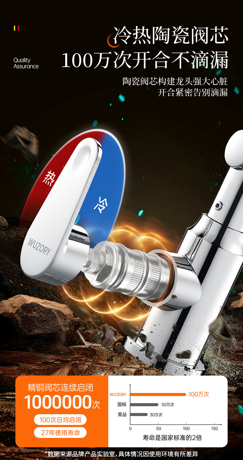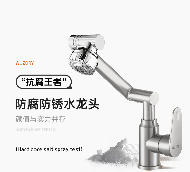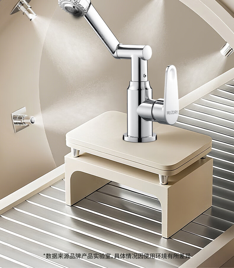 WUZORY【德国】水龙头洗手盆面盆冷热水二合一卫生间洗脸机械臂水龙头 【亮银】机械臂面盆水龙头 两档增压防溅丨配80CM防爆管*2