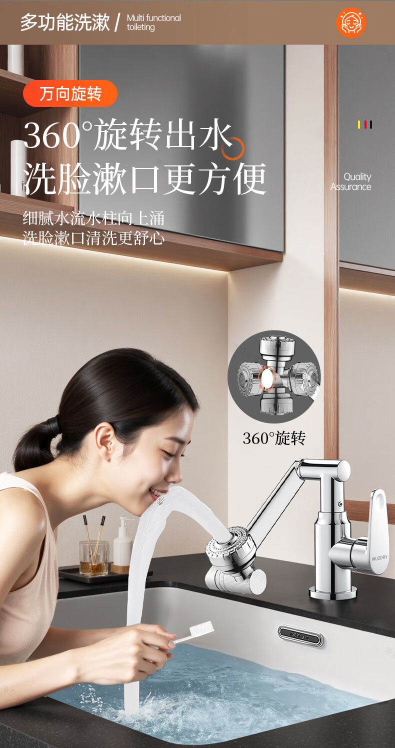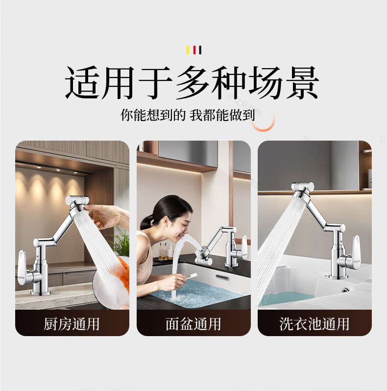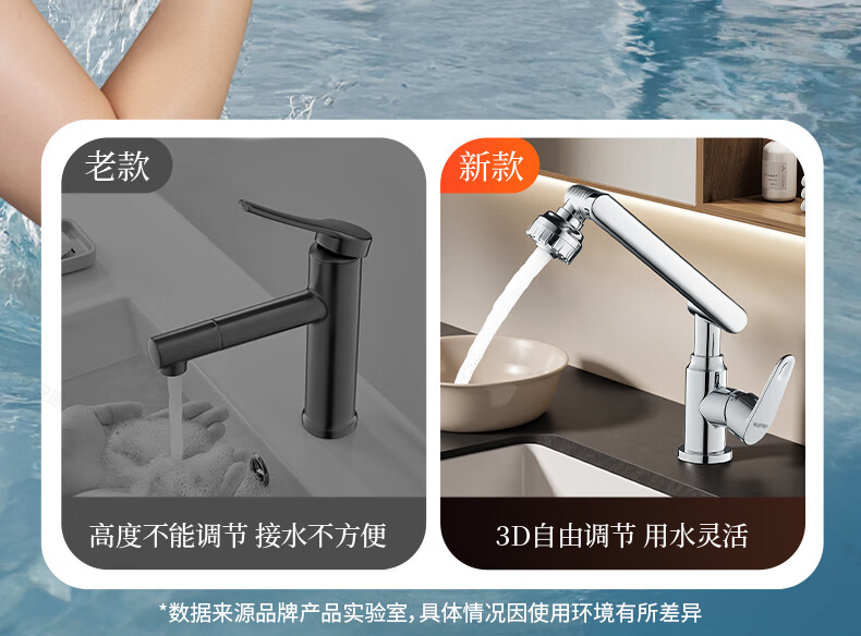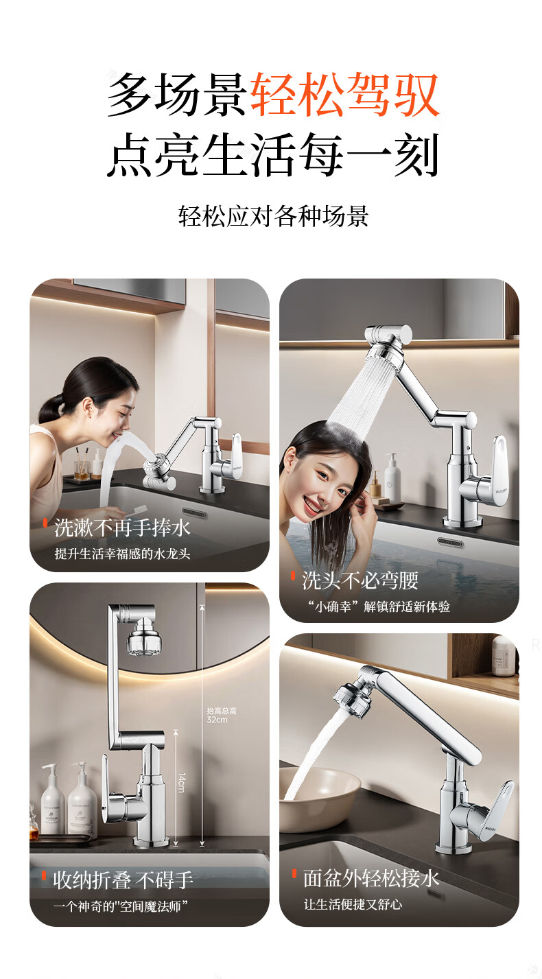 壹品印象家用面盆冷热二合一水龙头洗手盆卫生间万向机械臂浴室洗漱台龙头 太空银【两档调节+80cm冷热管】