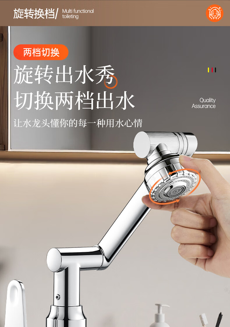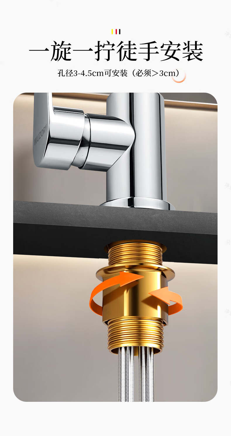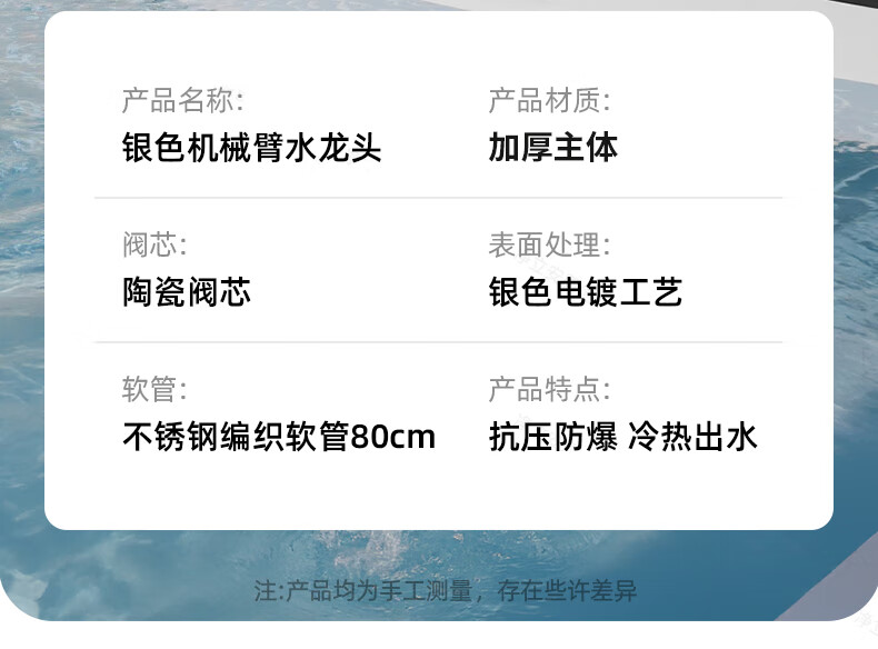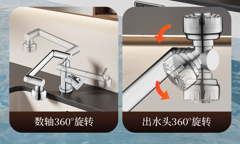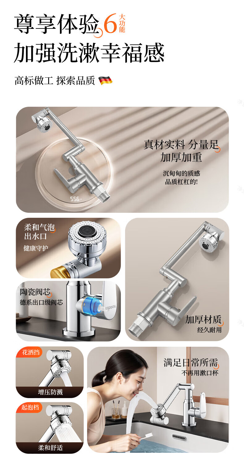 壹品印象家用面盆冷热二合一水龙头洗手盆卫生间万向机械臂浴室洗漱台龙头 太空银【两档调节+80cm冷热管】