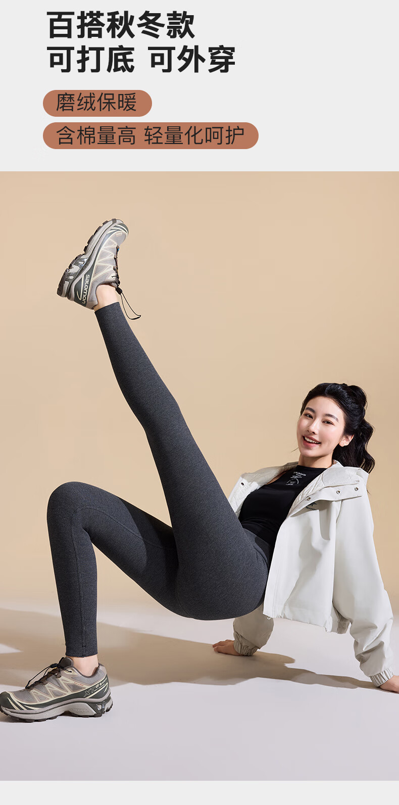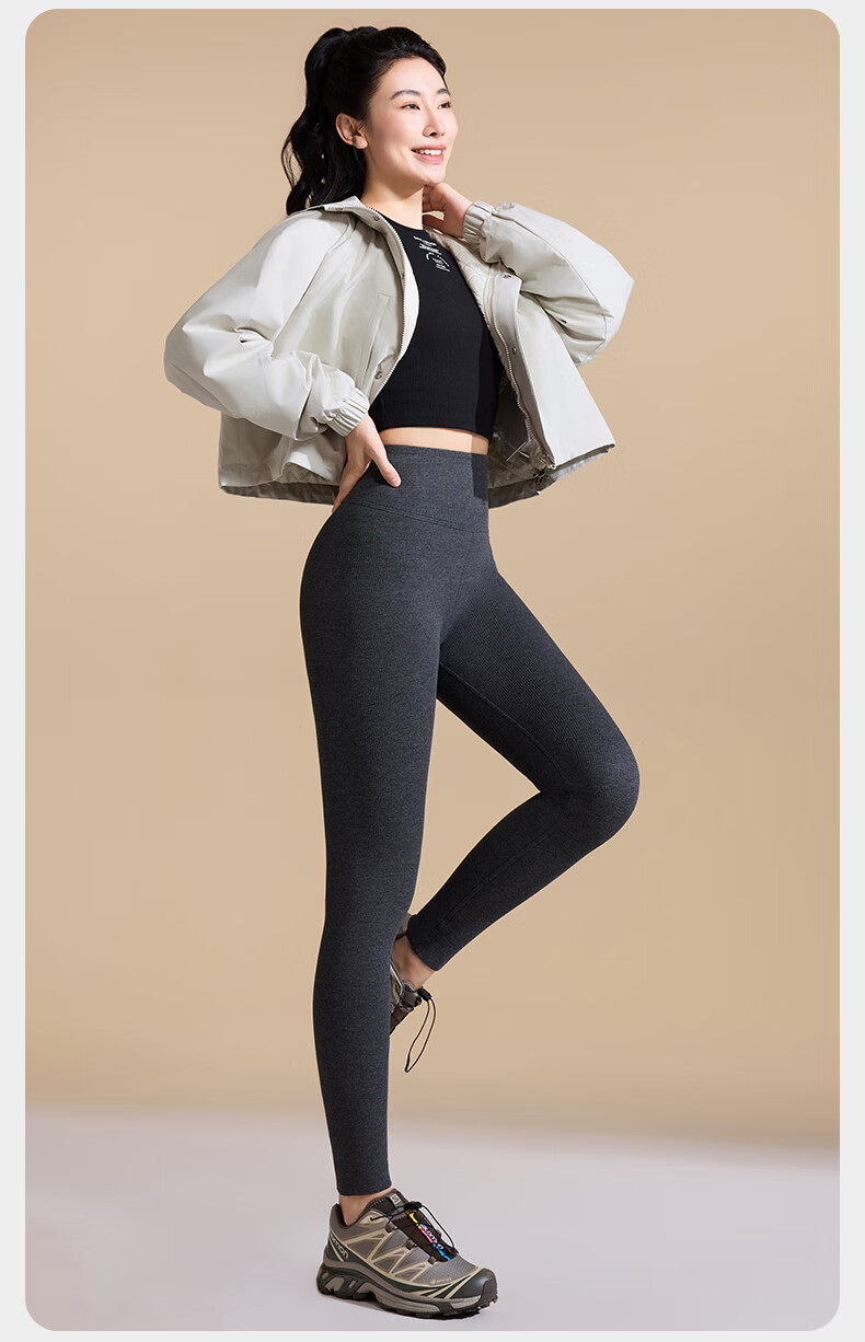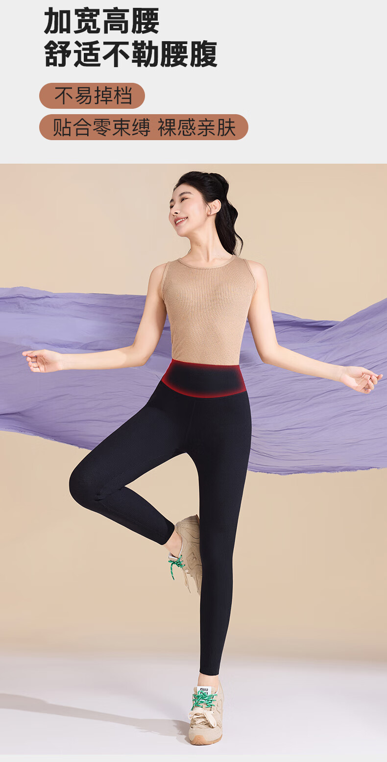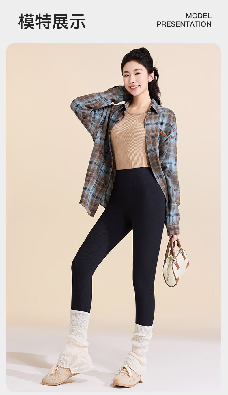 猫人(MiiOW)【蜜桃臀打底裤】加绒鲨鱼裤秋冬加厚提臀紧身裤高腰收腹打底裤 紫杉醇芭比裤【加绒】黑色 M