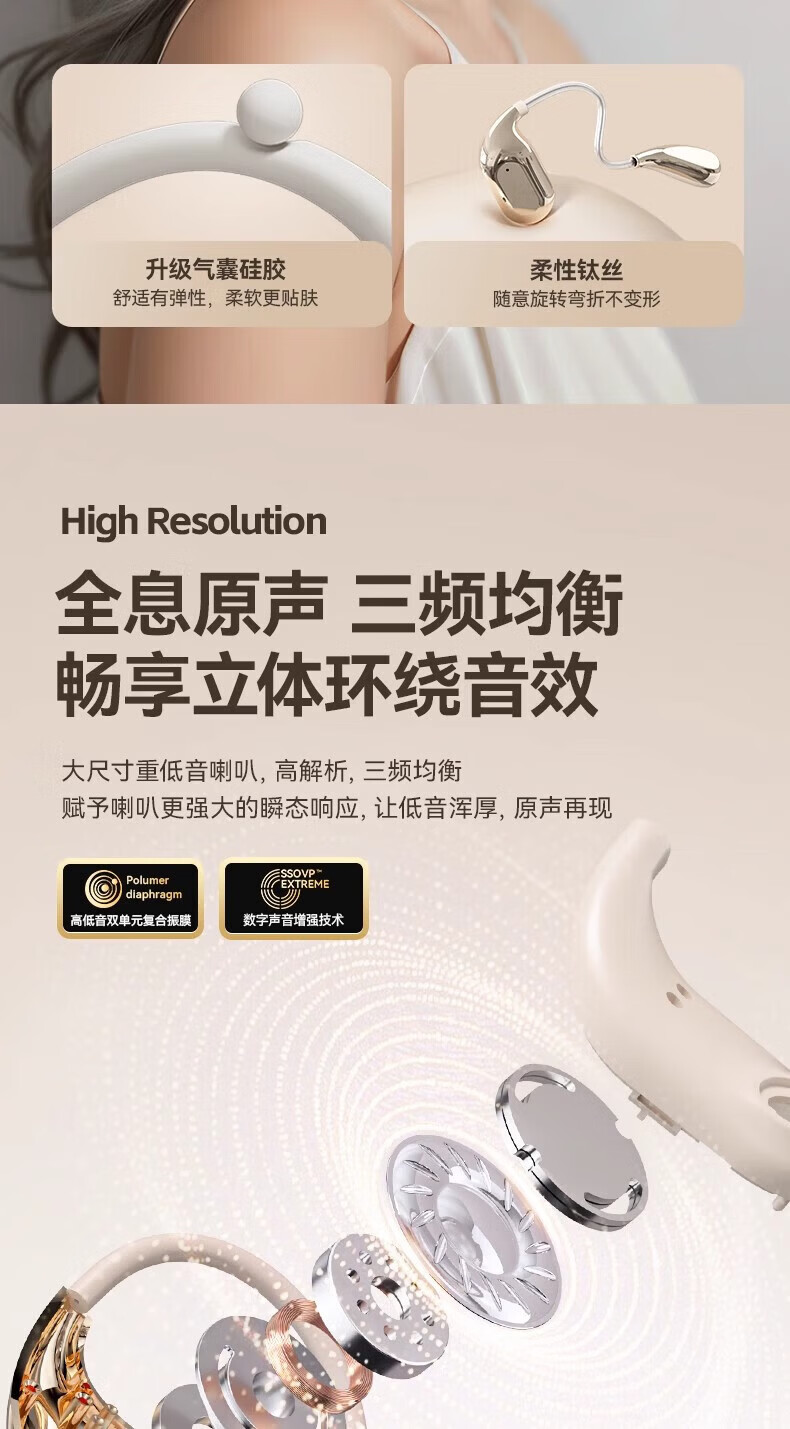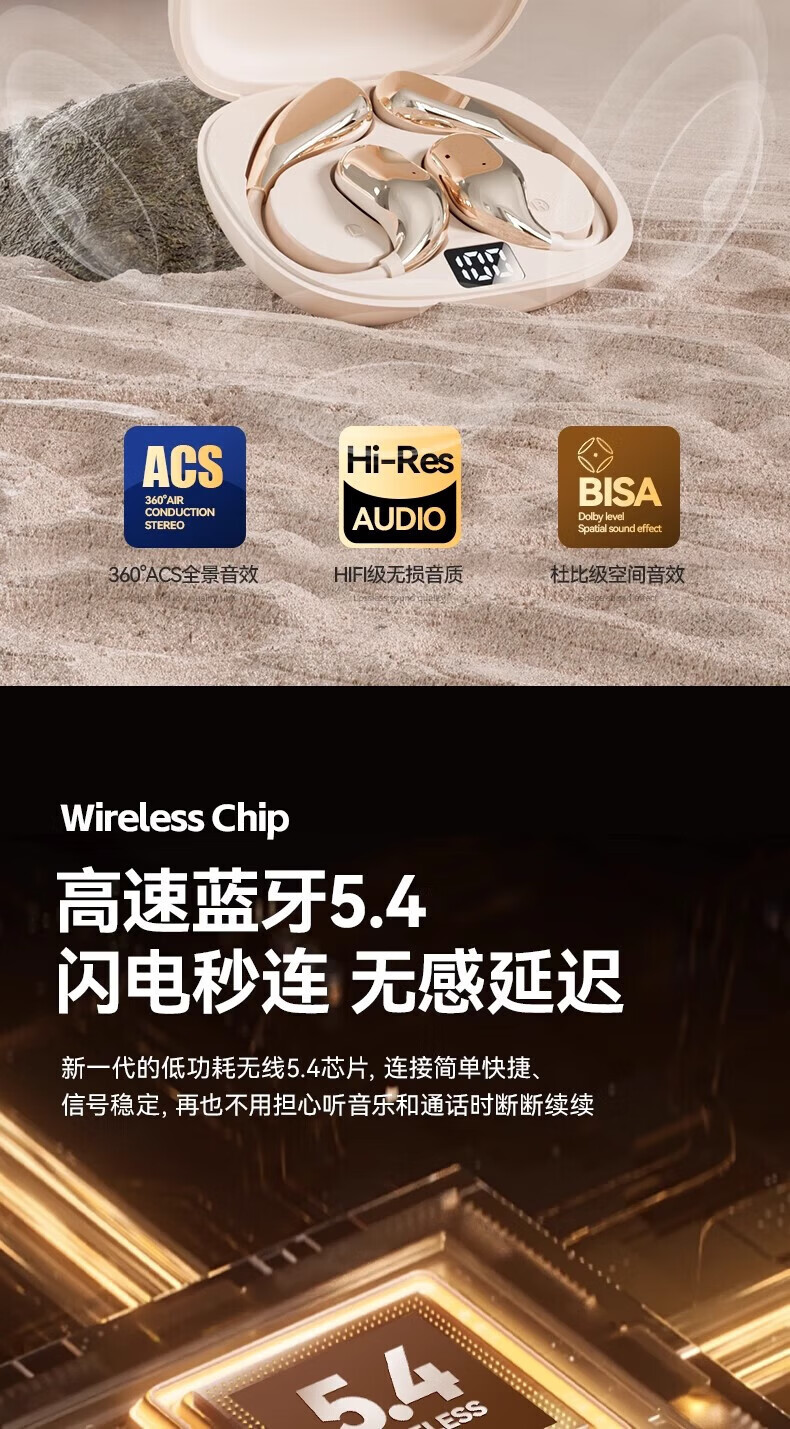 SANAG塞那Z60S AI 【限时立减15%】耳夹式无线蓝牙耳机骨传导概念开放夹耳式跑步运动超轻无感年货团购 【金标】Z60S AI全新升级丨杏仁白