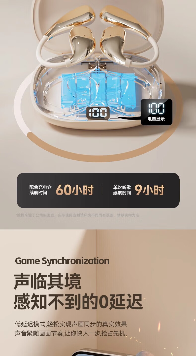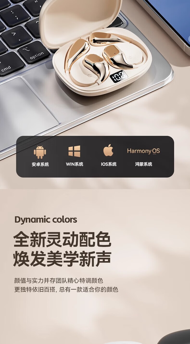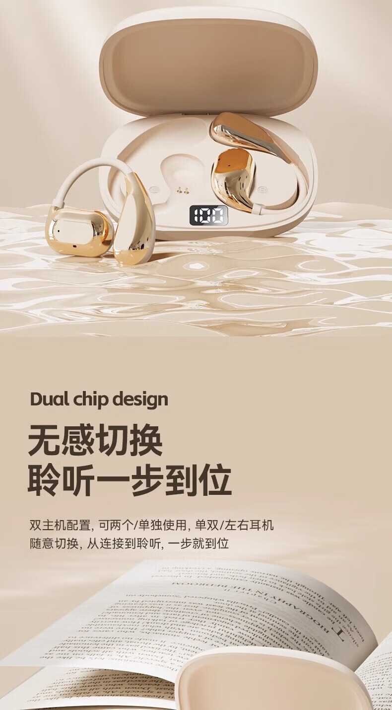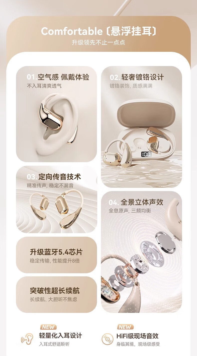 BOOCHI【2025新款|好评如潮】华为苹果通用无线蓝牙耳机挂耳式不入耳超长续航游戏运动耳机带降噪耳麦 米肤色【千元音效】云感降噪
