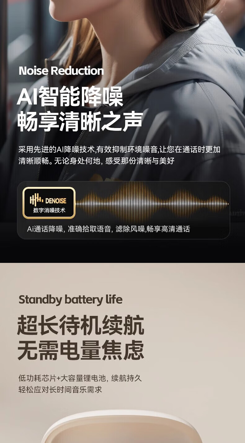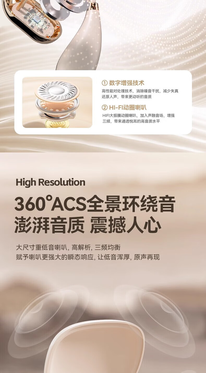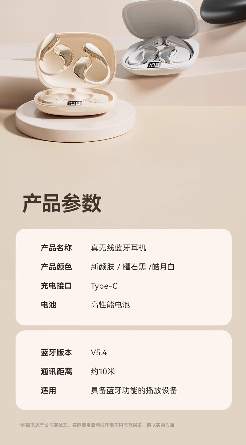 BOOCHI【2025新款|好评如潮】华为苹果通用无线蓝牙耳机挂耳式不入耳超长续航游戏运动耳机带降噪耳麦 米肤色【千元音效】云感降噪