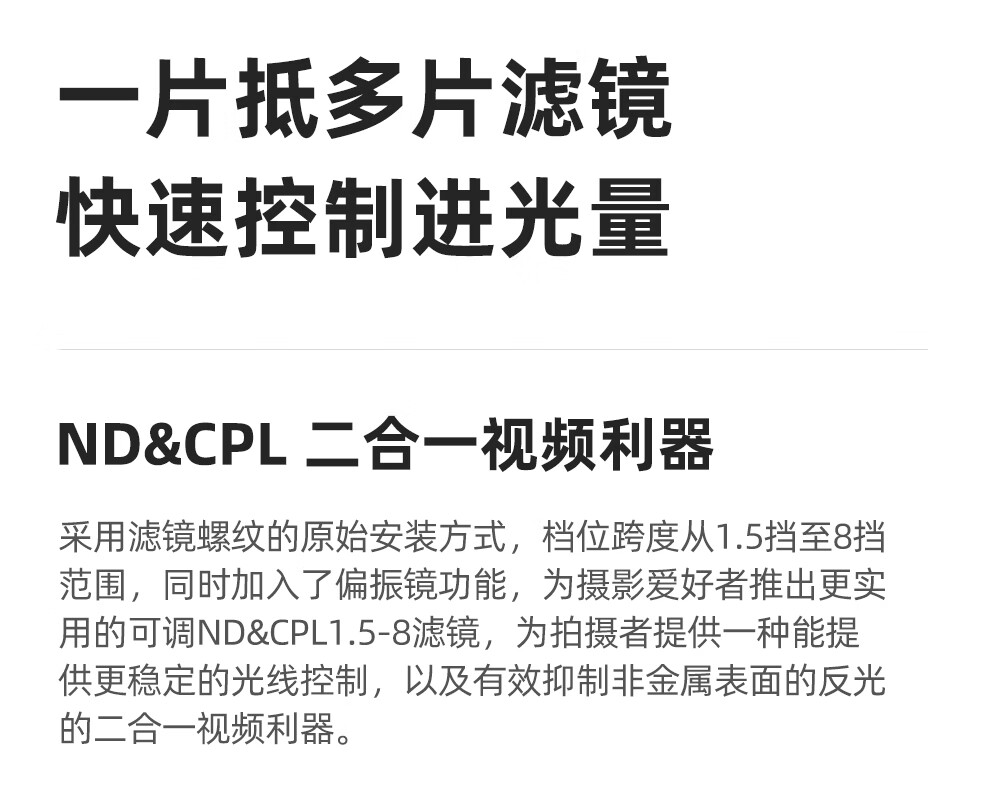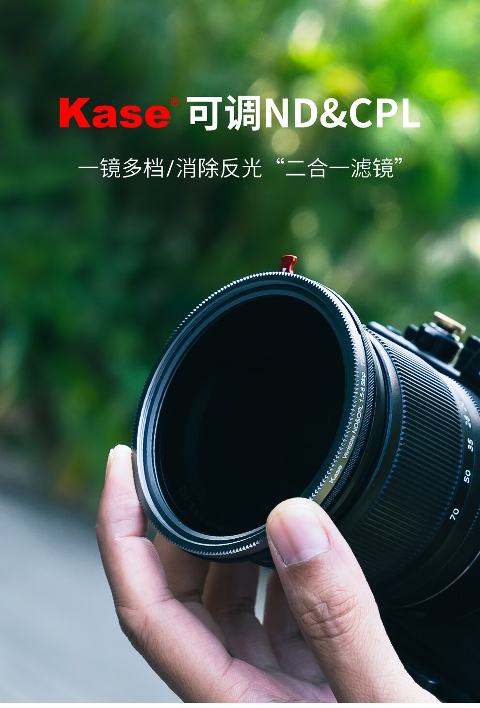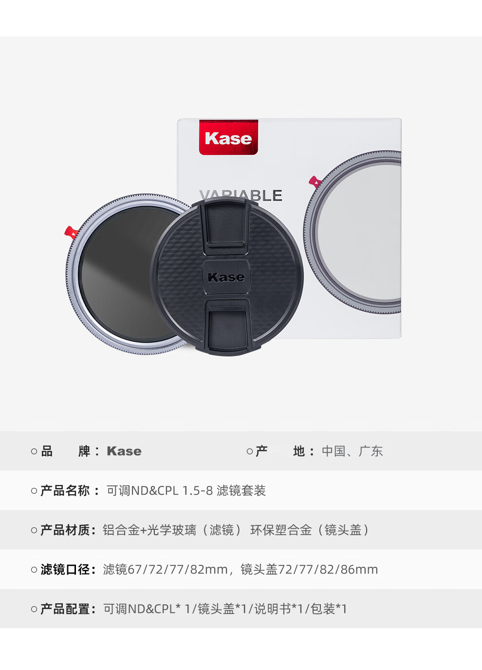 卡色(Kase)三合一滤镜 67mm 可调VND&CPL&黑柔 可变ND2-256减光滤镜 视频利器减光人像风光三合一 二合一滤镜 可调ND&CPL1.5-8+镜头盖【2合1】 67mm