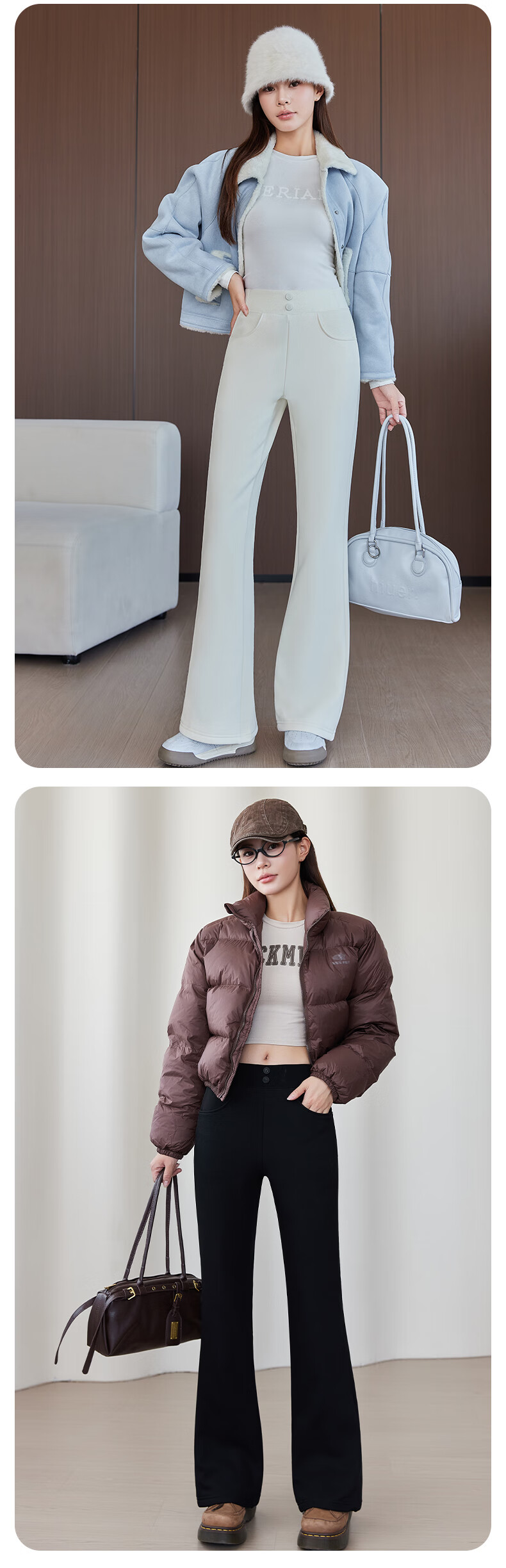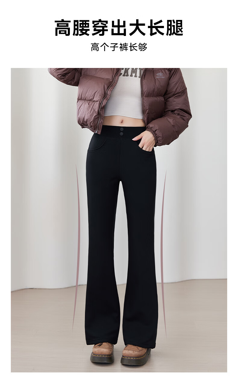 浪莎羽绒裤女款2025年最新款冬季外穿加绒加厚微喇鹅绒裤防寒保暖棉裤 黑色 【抗寒鹅绒裤】 L 【建议:115-130斤】