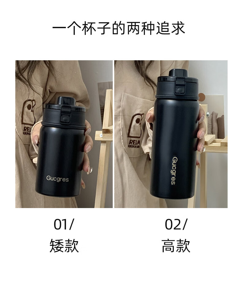 【优选】无印平替通用茶隔保温杯简约学生不锈钢杯IN便携水杯 大号哑光英文 默认项