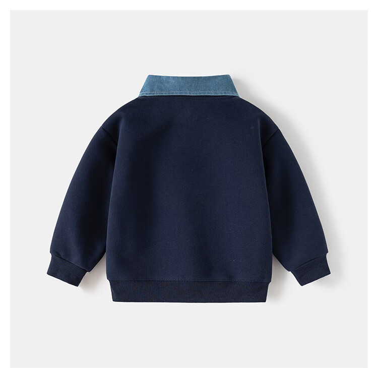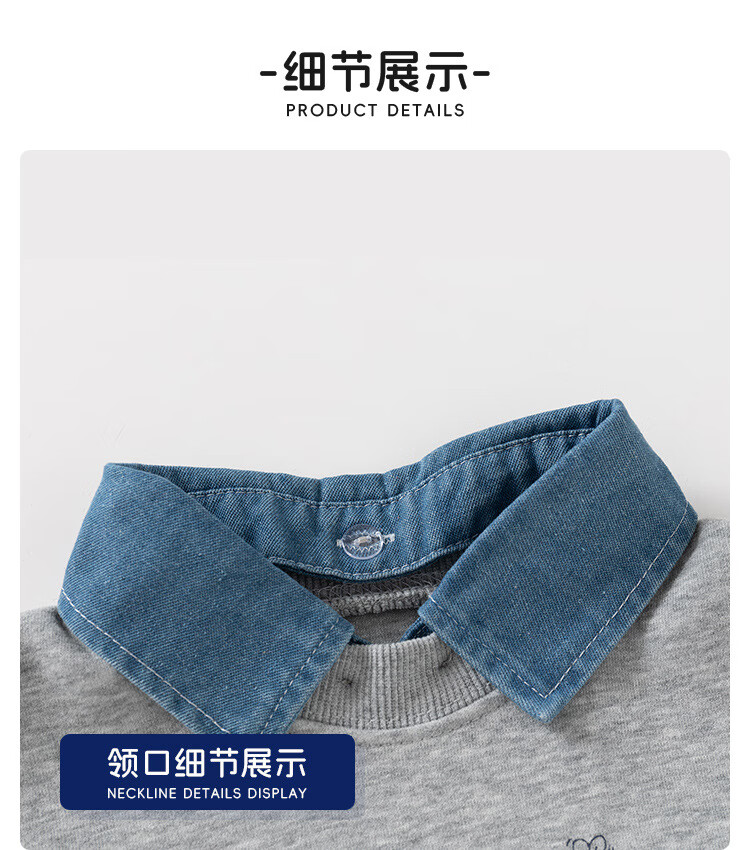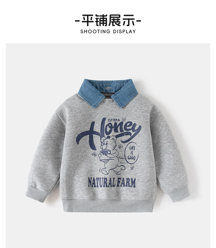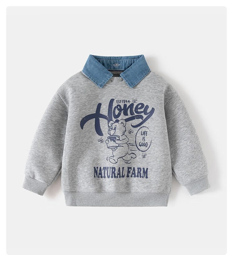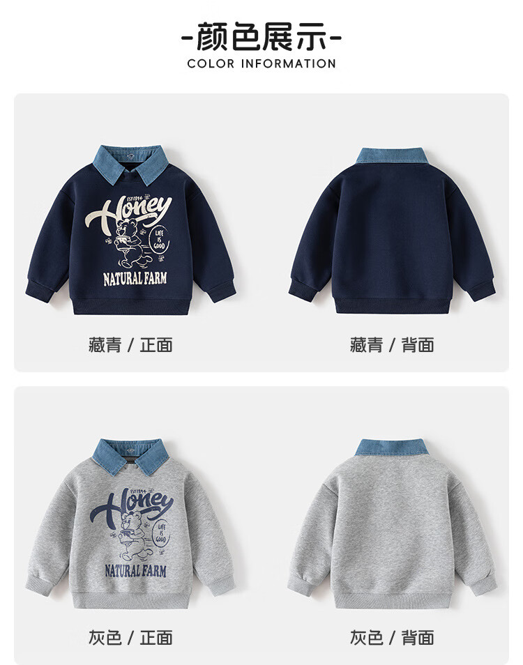 WELLKIDS春季儿童假两件卫衣新款韩版童装男童可拆卸领外套潮宝宝上衣 藏青HONEY熊 110