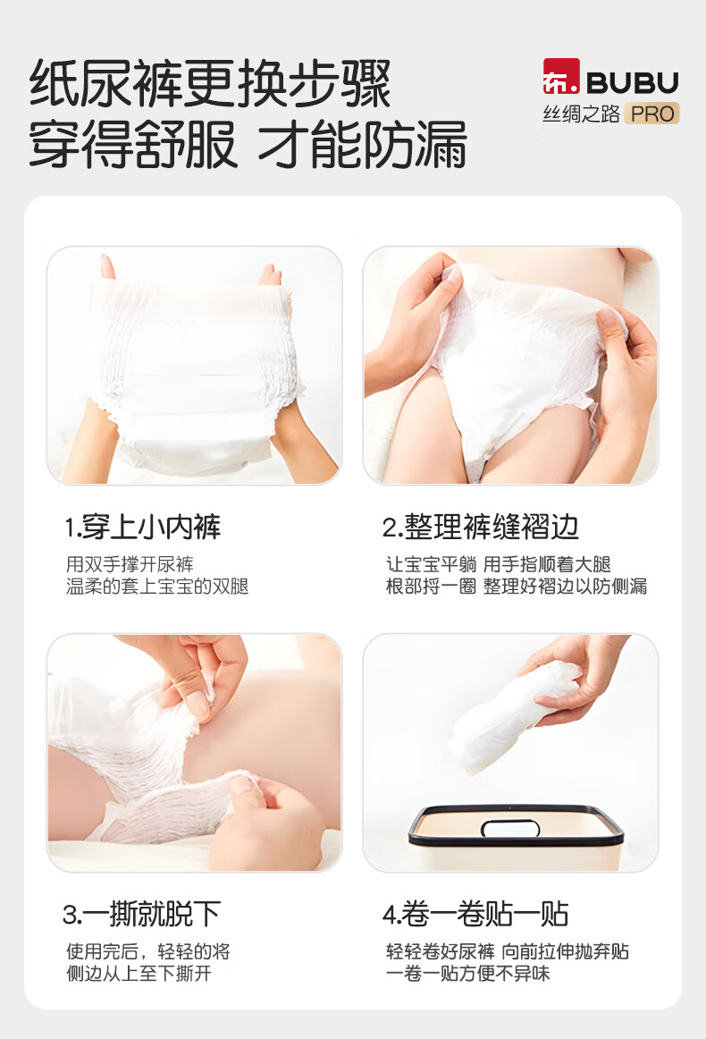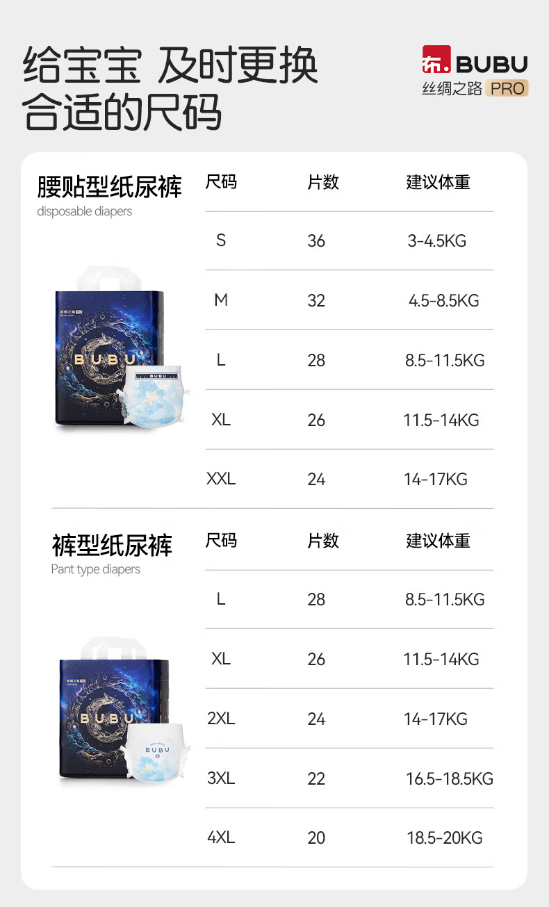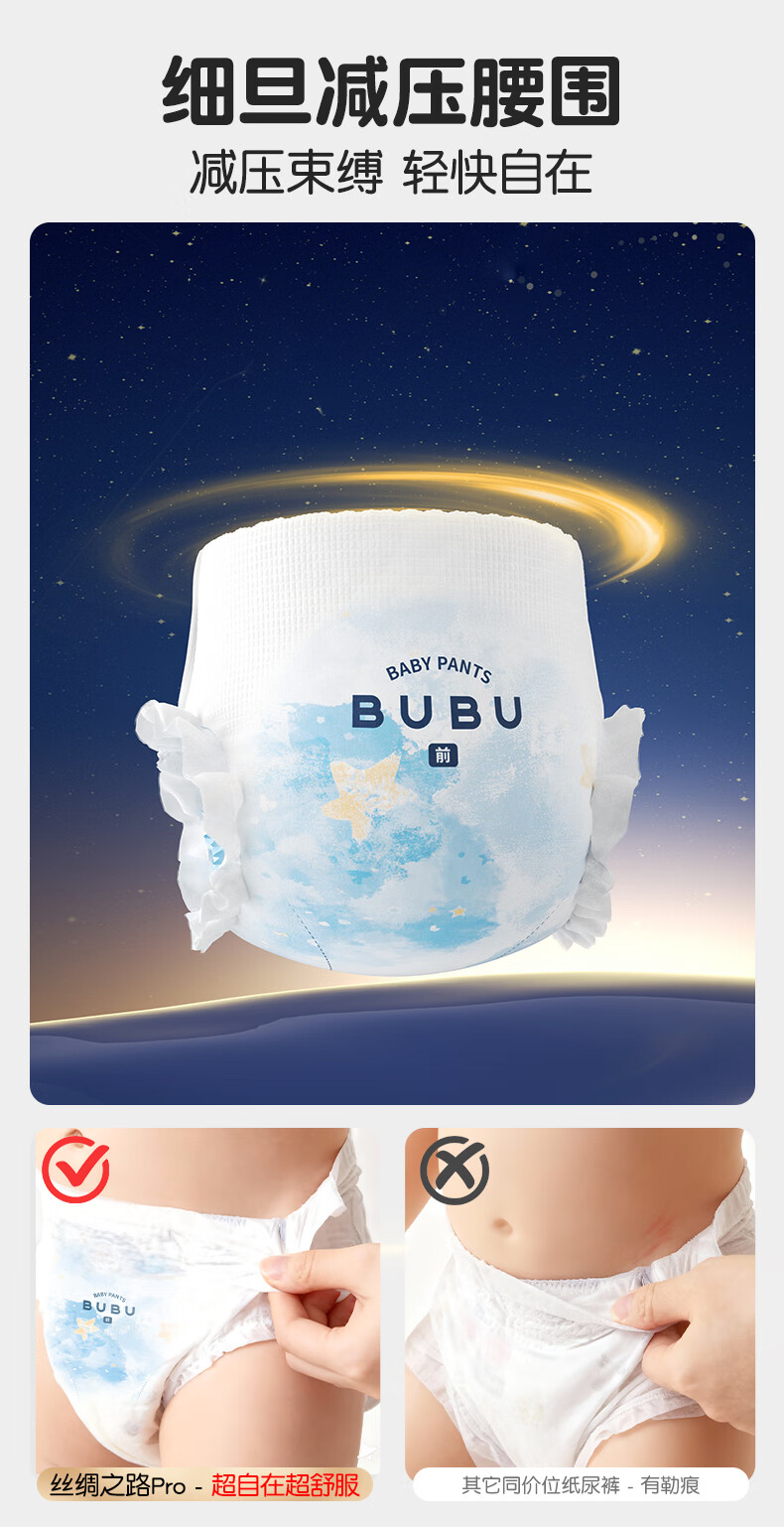 BUBU丝绸之路PRO拉拉裤蚕丝蛋白柔软透气婴儿尿不湿 拉拉裤旅行装XXL码16片