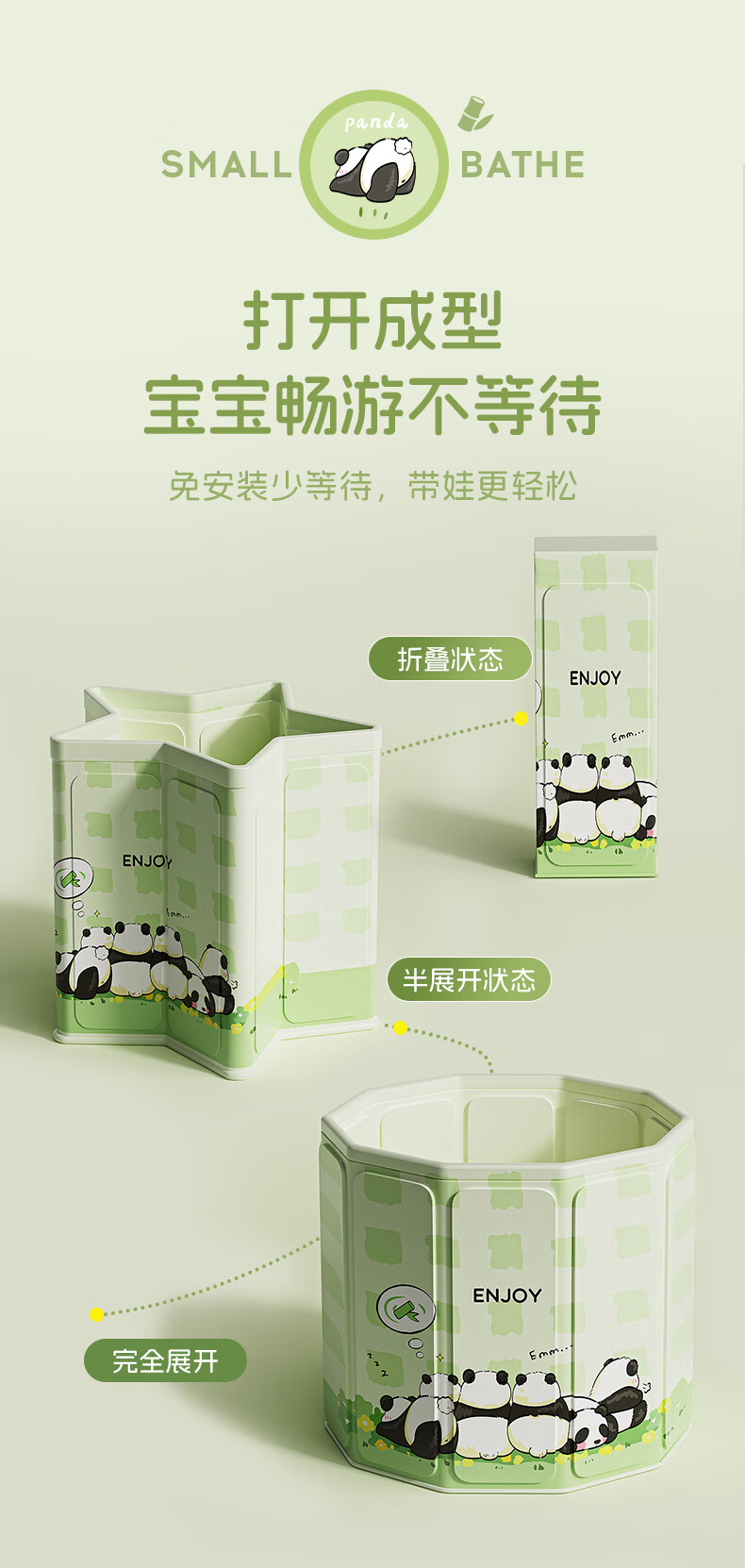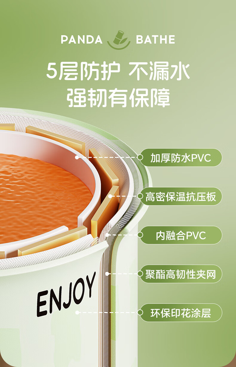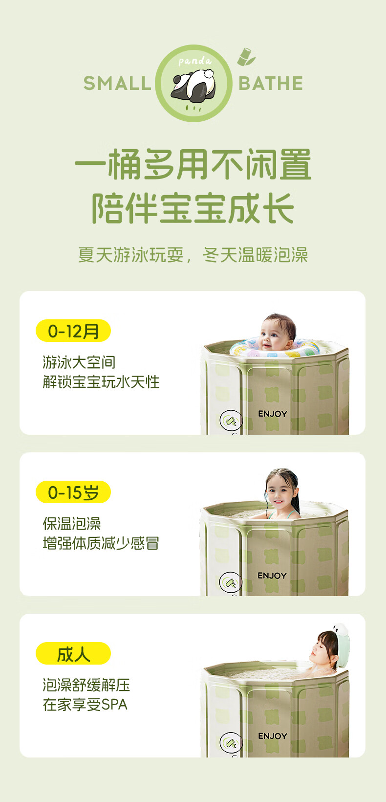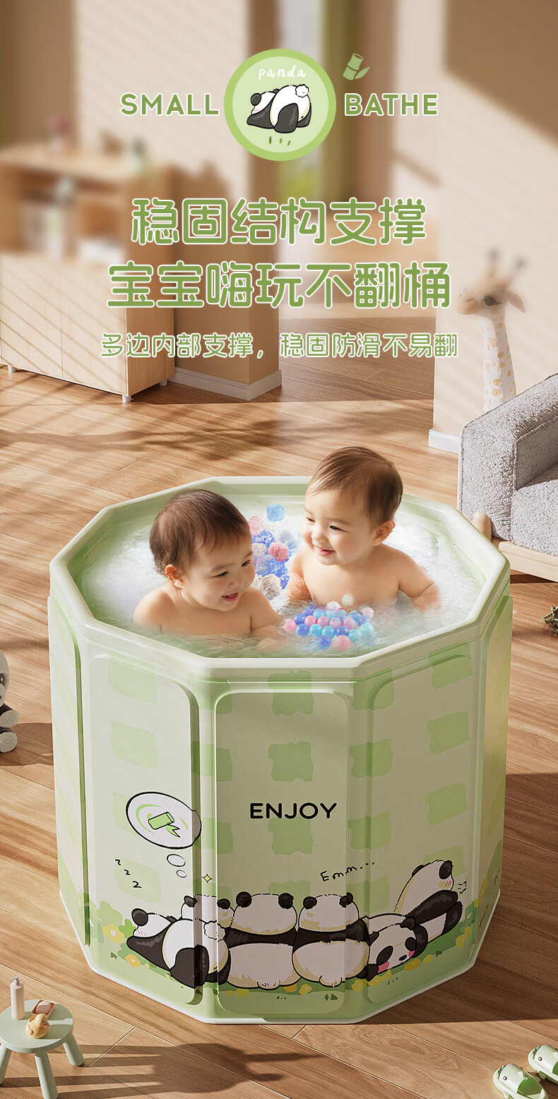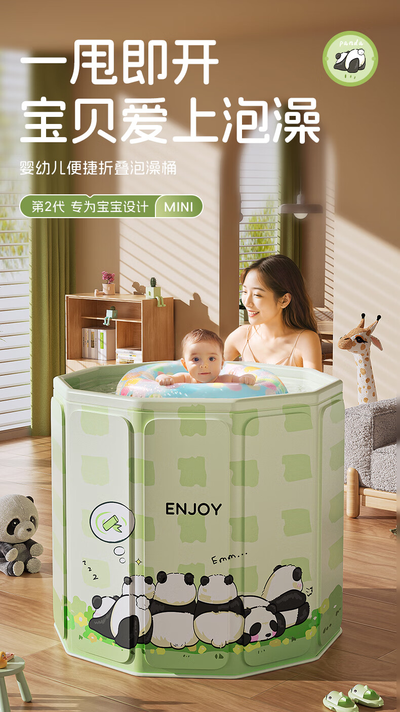 赟娅泡澡桶大人折叠儿童洗澡加厚成人家用浴桶浴缸坐浴盆大号 70*66胖达绿泡澡桶(简浴童心)