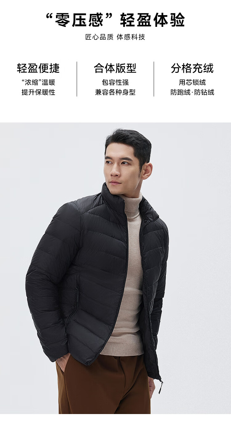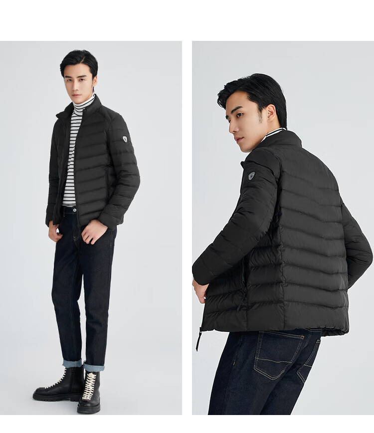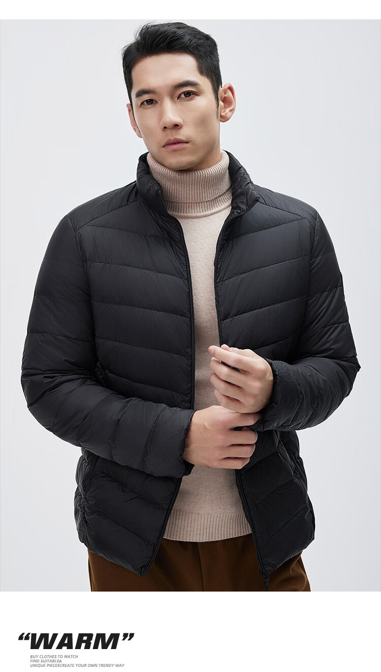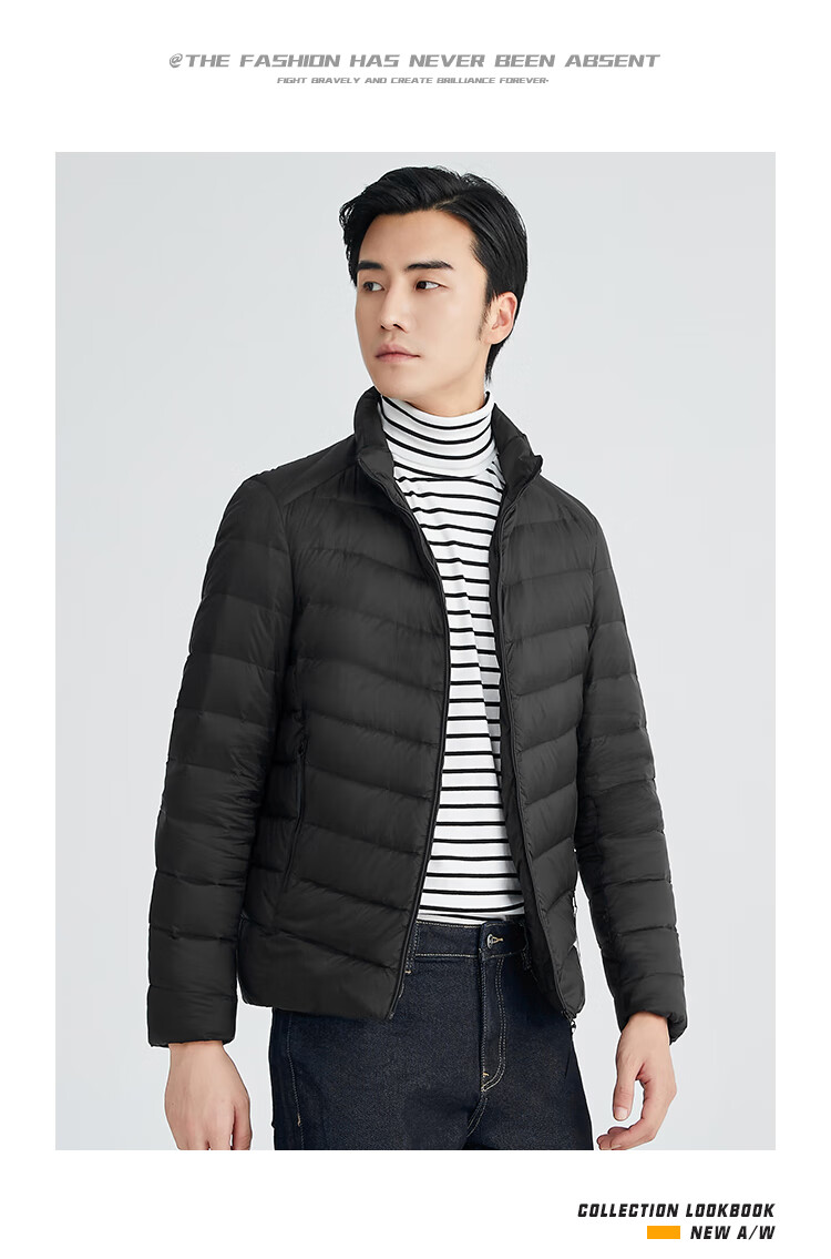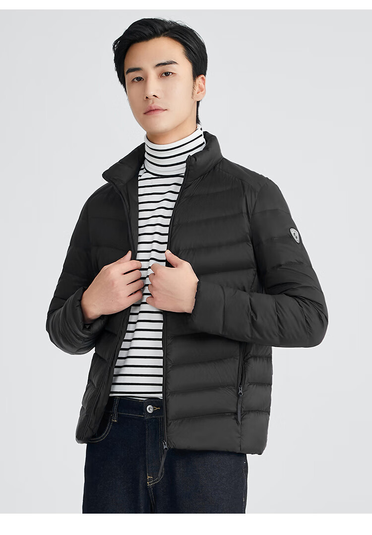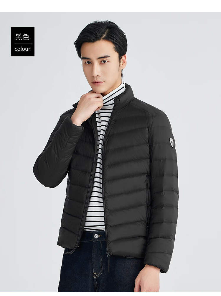 【鹦鹉梨专属】25秋冬男士短款运动风便携立领轻薄休闲排骨羽绒服 黑色 2XL 140-160斤