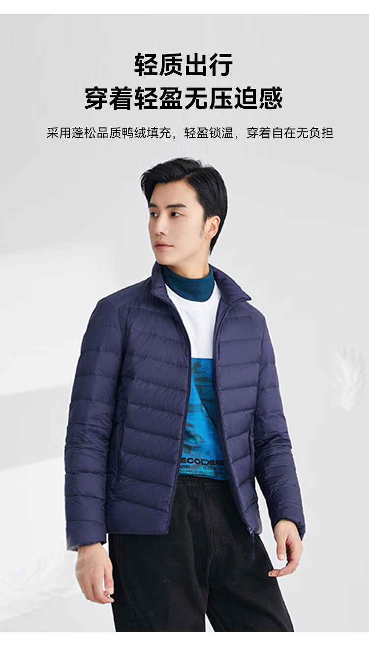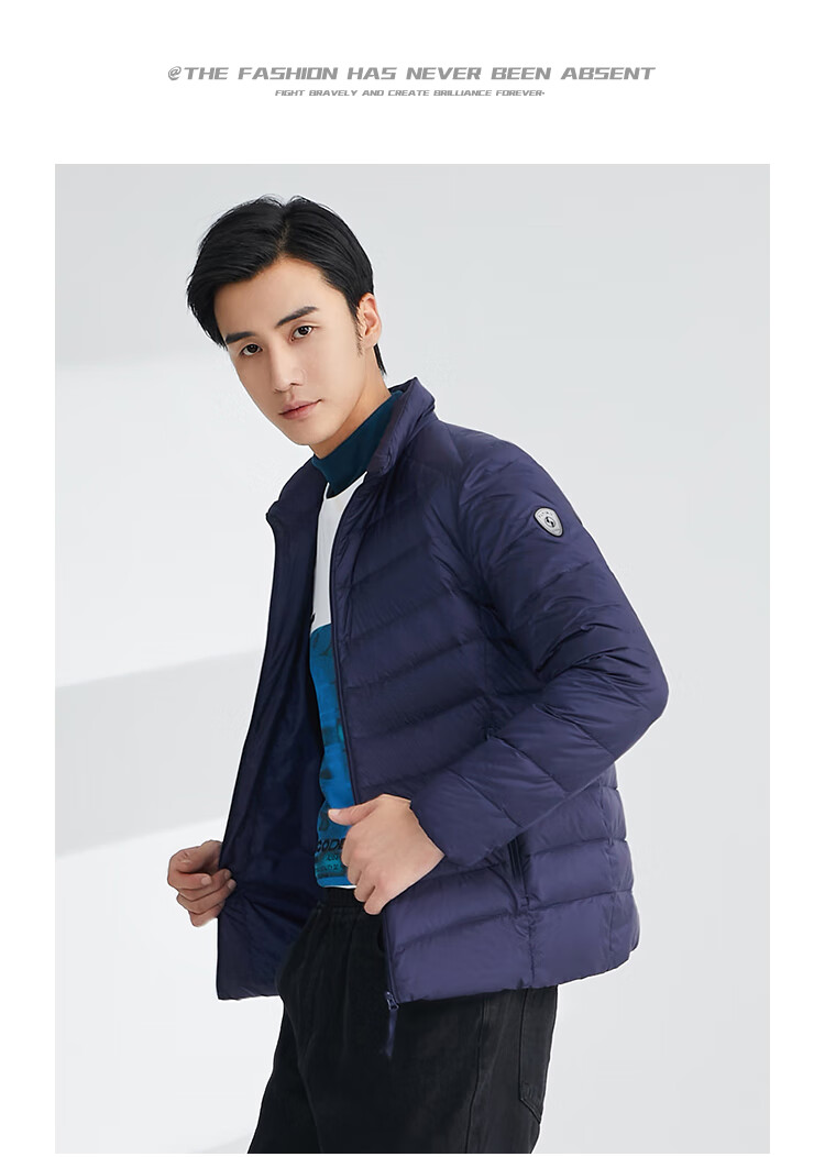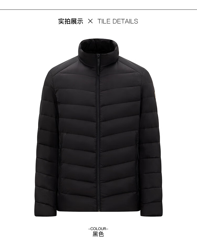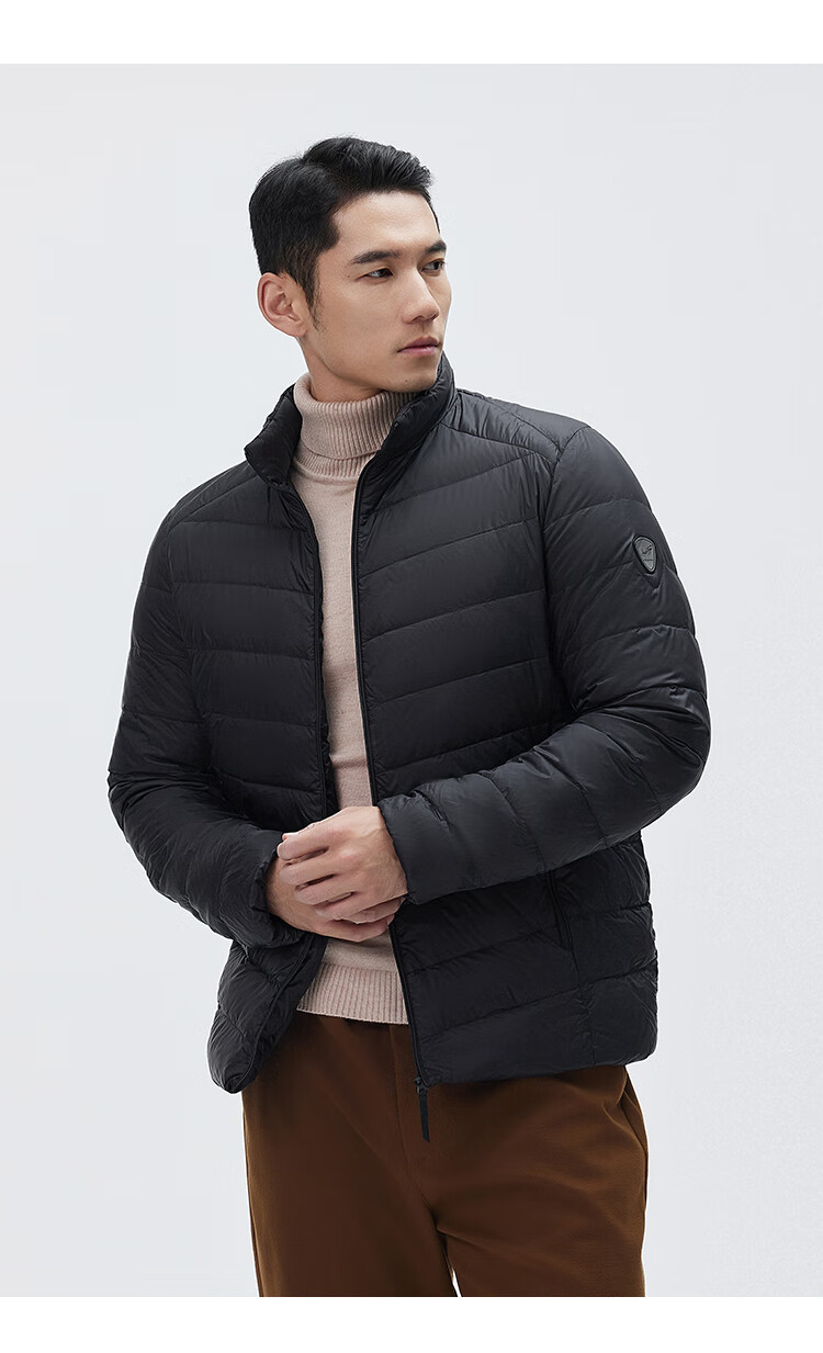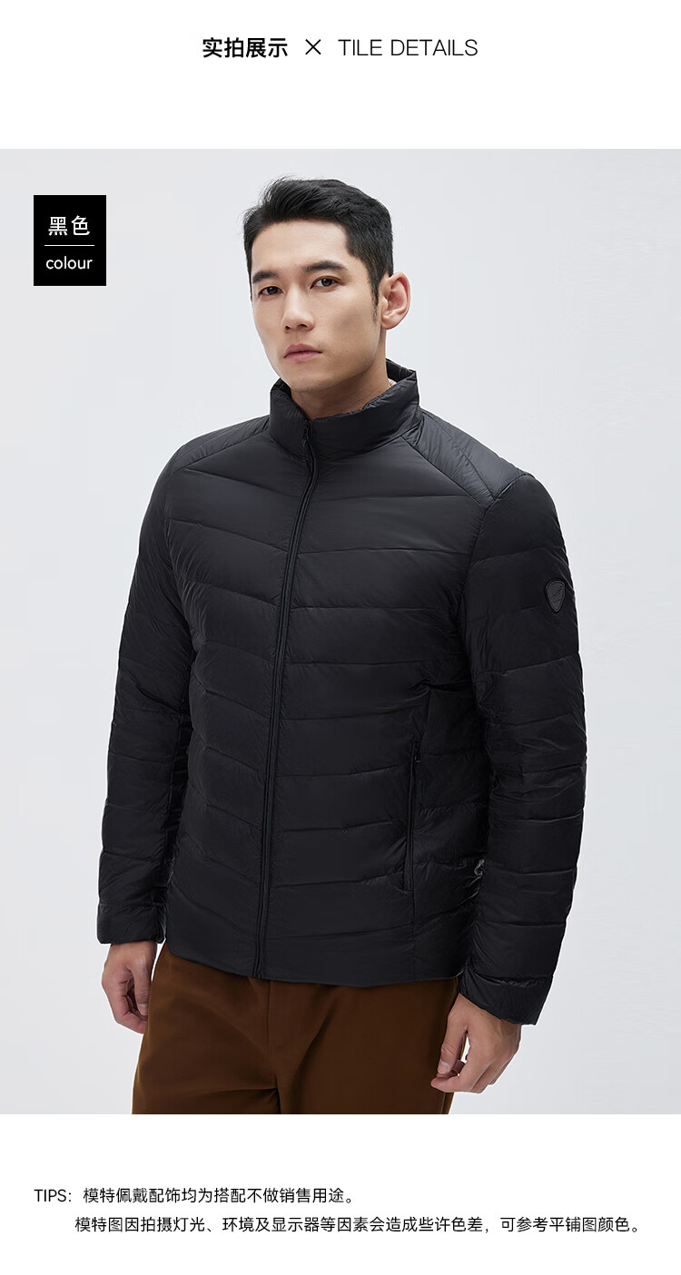【鹦鹉梨专属】25秋冬男士短款运动风便携立领轻薄休闲排骨羽绒服 黑色 2XL 140-160斤