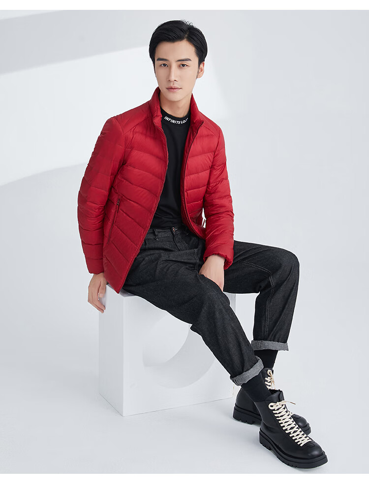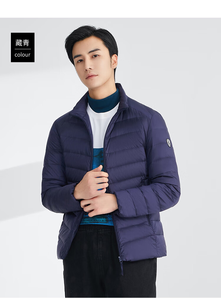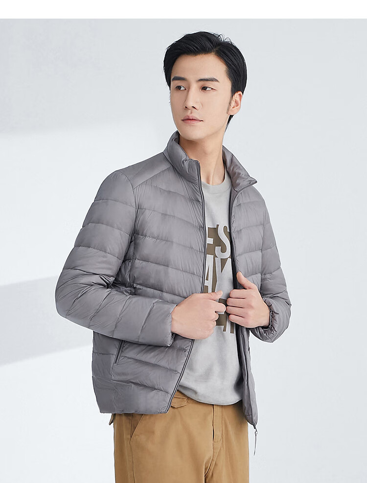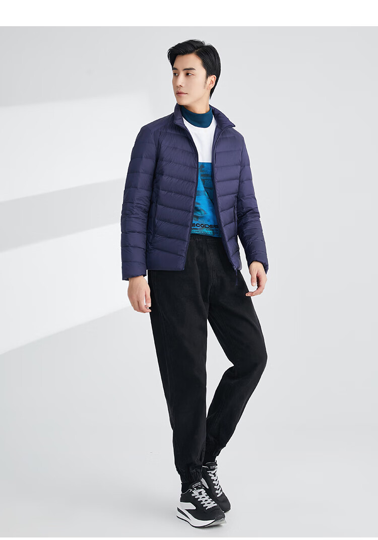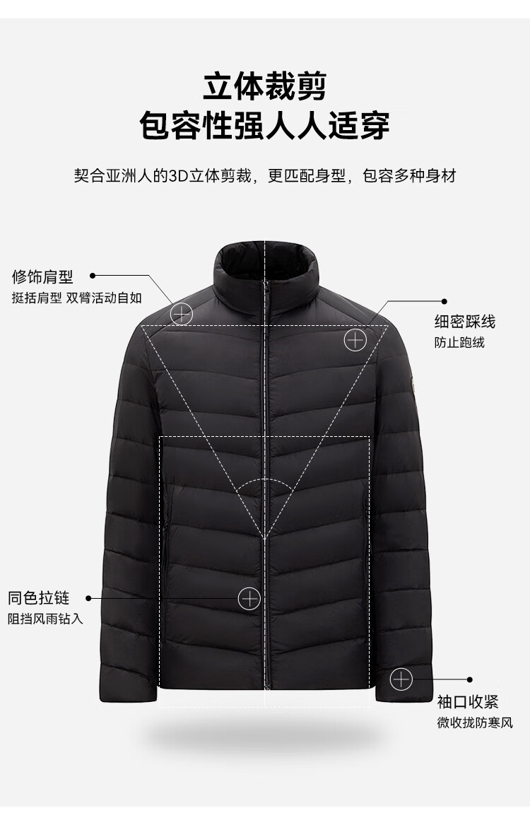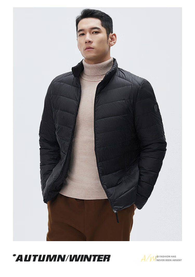 【鹦鹉梨专属】25秋冬男士短款运动风便携立领轻薄休闲排骨羽绒服 黑色 2XL 140-160斤