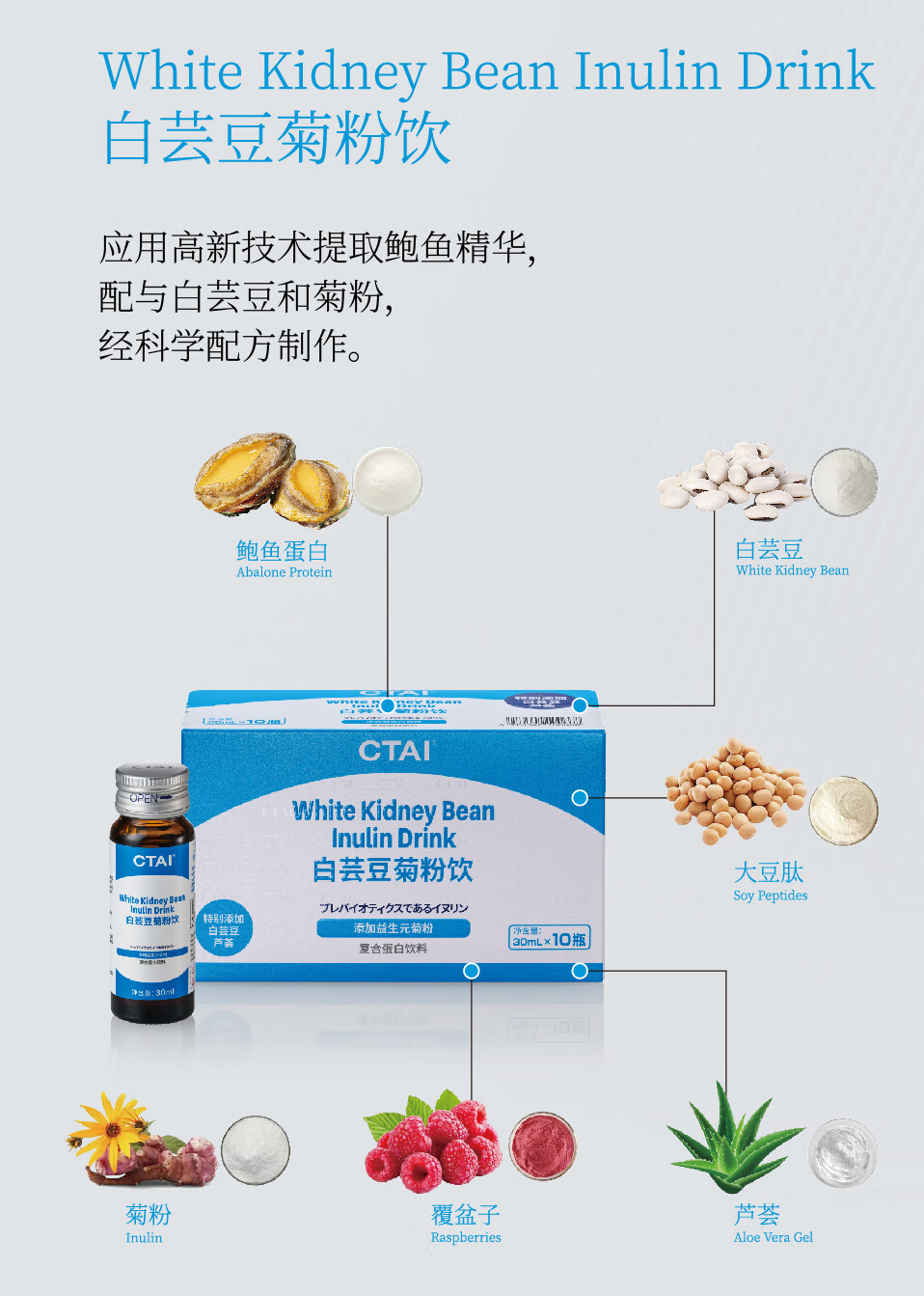 长太CTAI白芸豆菊粉30ml鲍鱼蛋白肽益生元0脂肪小分子膳食纤维液体饮 白芸豆菊粉饮1盒(体验装) 30ml*10瓶/盒