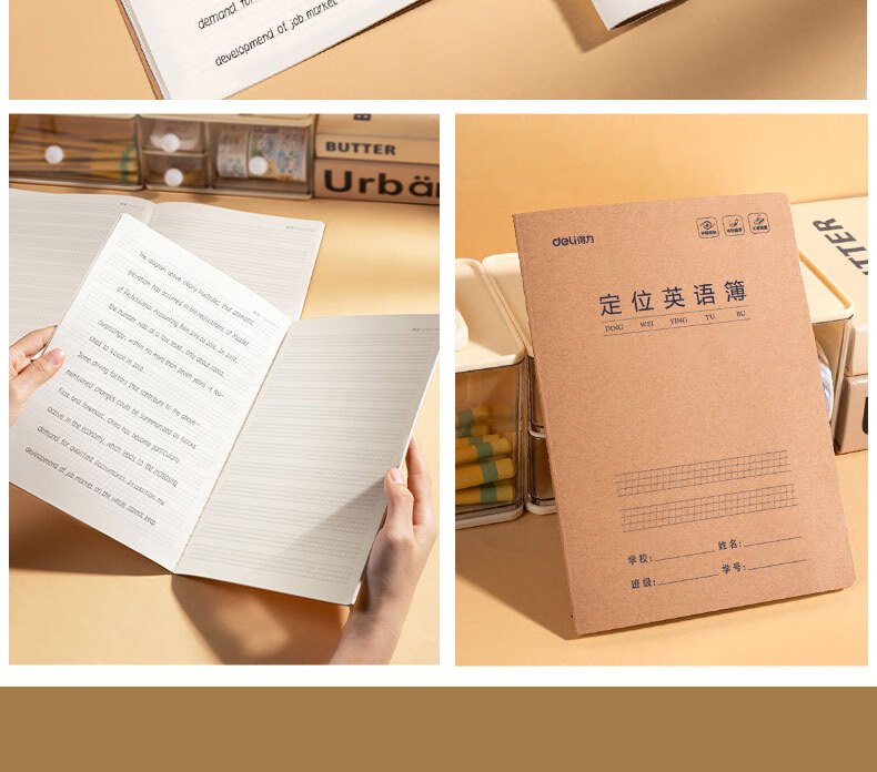 得力英语定位书写纸16k护眼定位英语本小学生初高中生专用练字衡水体英文作文规范训练英语缝线作业本 英语定位簿【20本】16k-32张/本