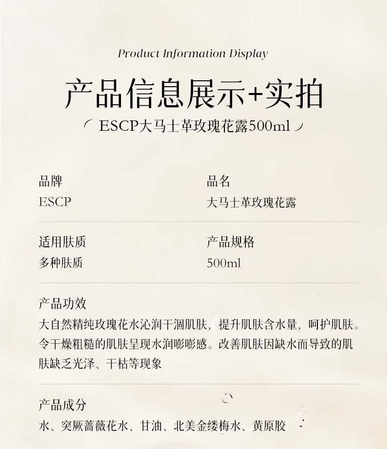 ESCP大马士革玫瑰花露保湿爽肤水湿敷水 2瓶/1000ml