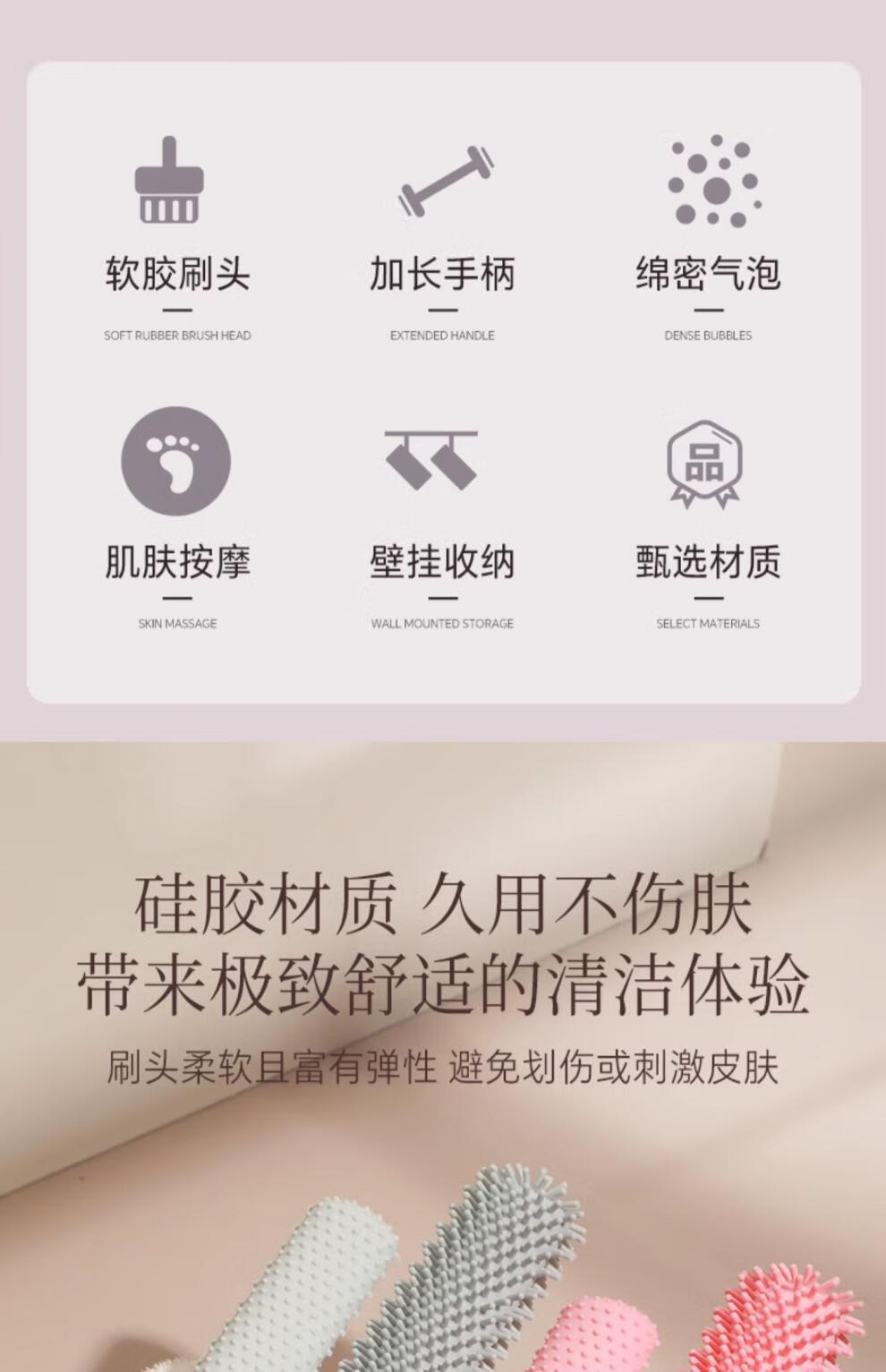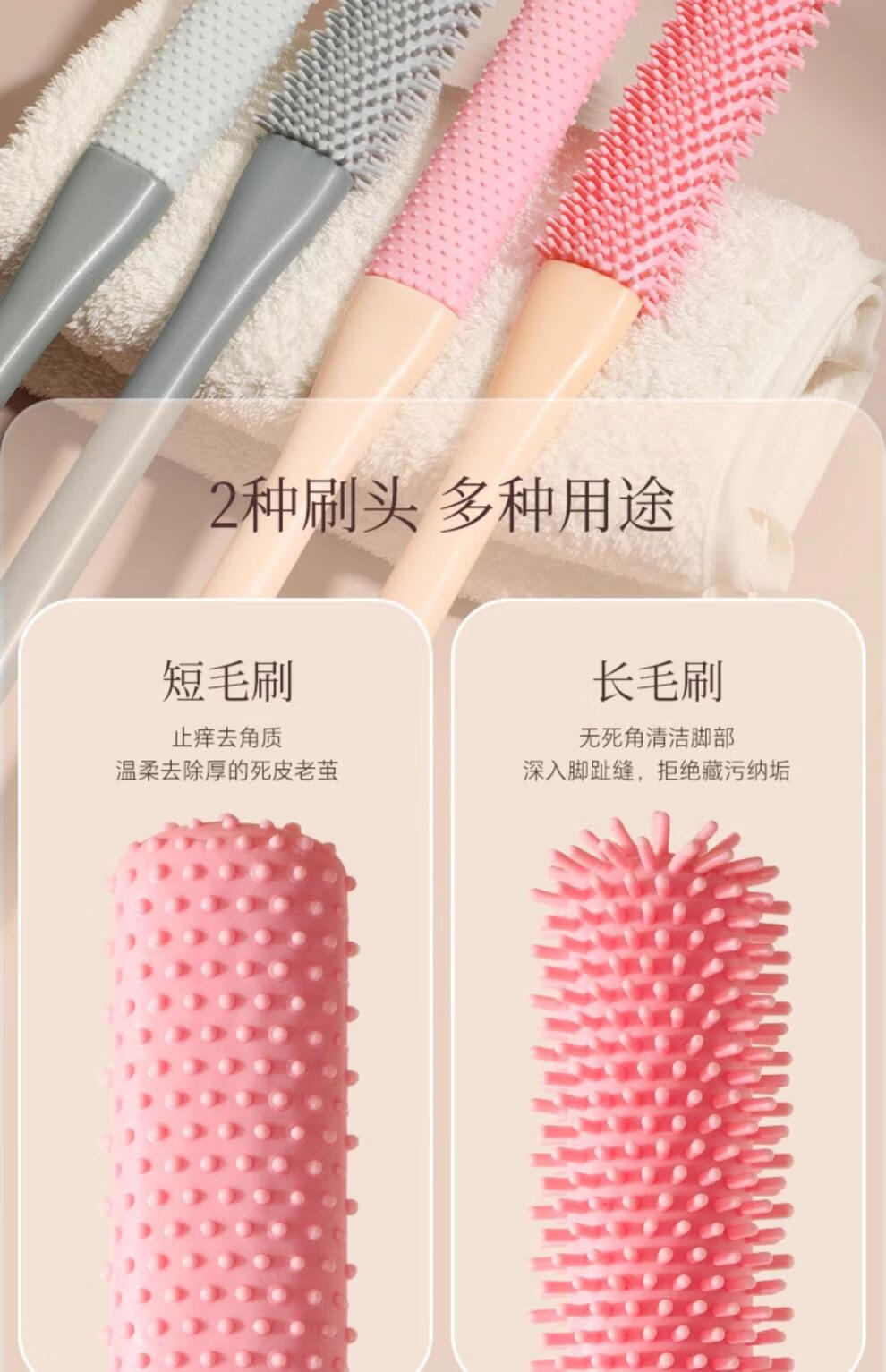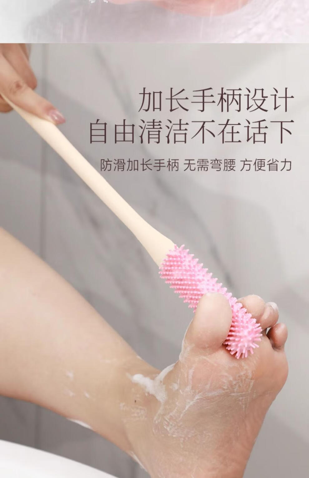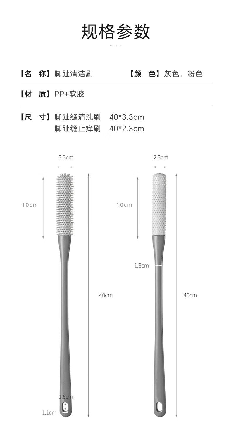 兮儿洗脚刷长柄刷子清洁刷脚脚趾缝清洗刷搓脚磨脚石足部清洁洗脚去污 【灰色】止痒刷