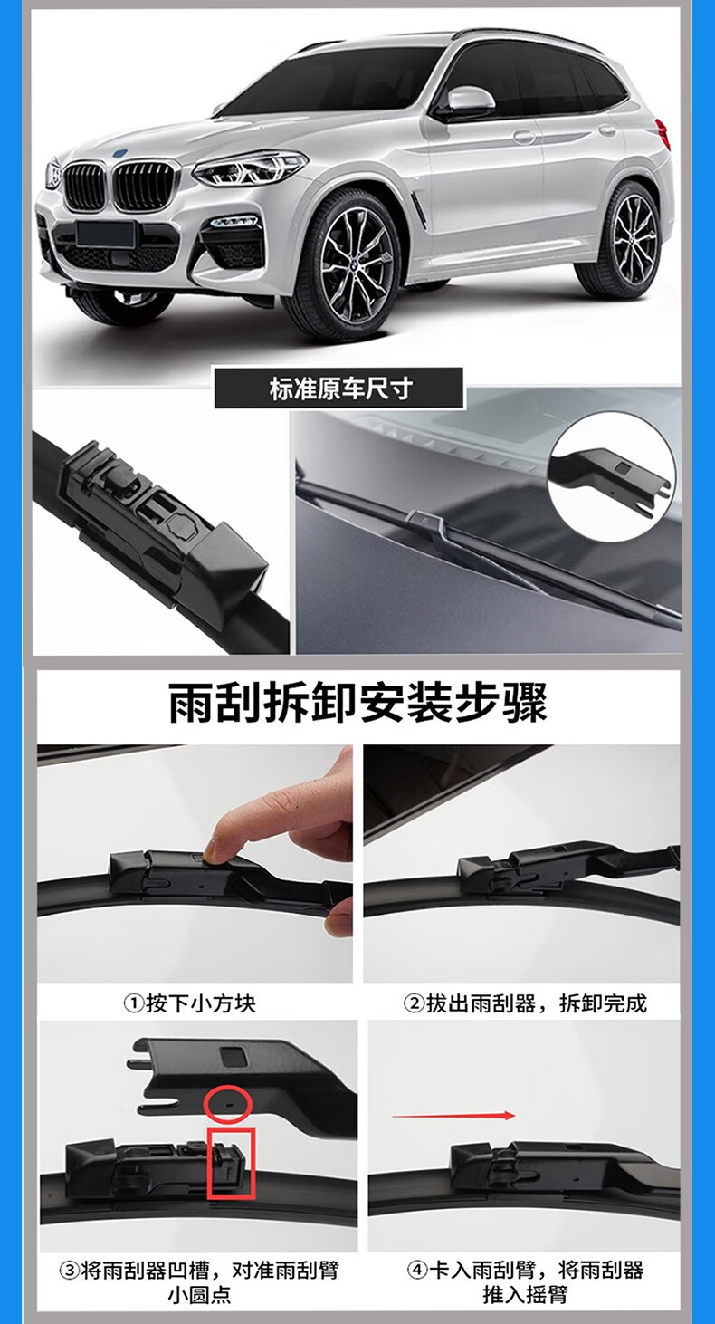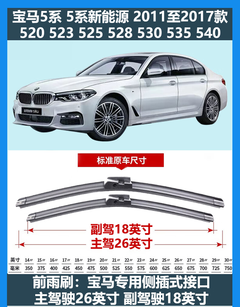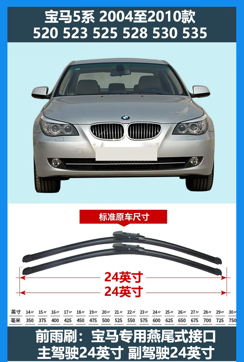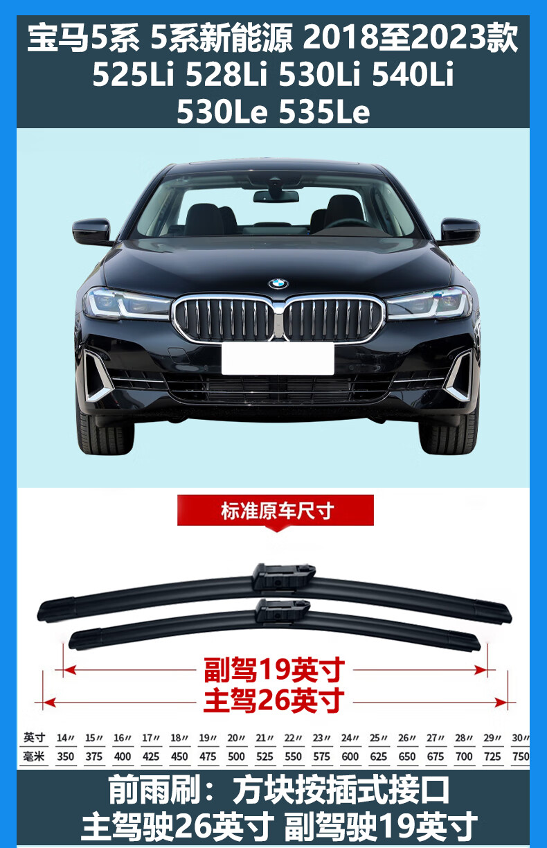 贤聚和雨刮器 雨刷 雨刮片 华晨宝马专用 原装静音 适用于 18至23款宝马5系525 528 530 540 前雨刷一对装