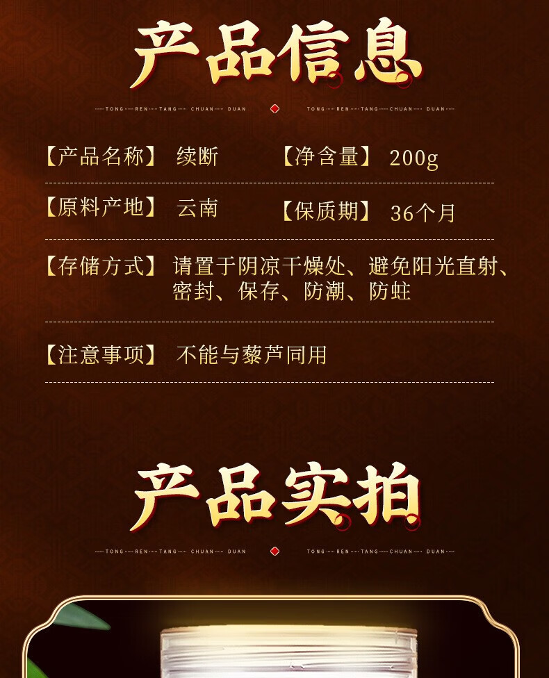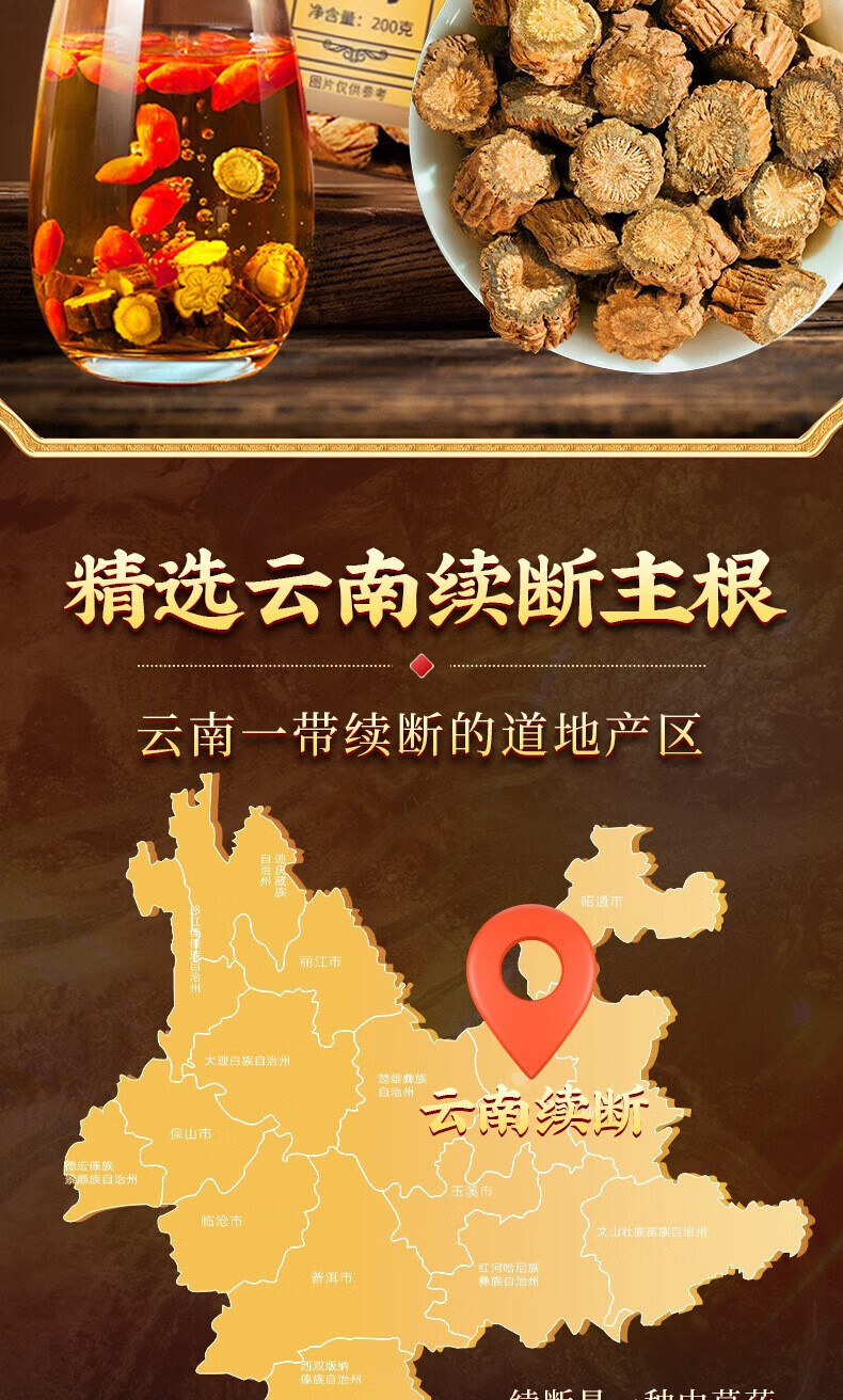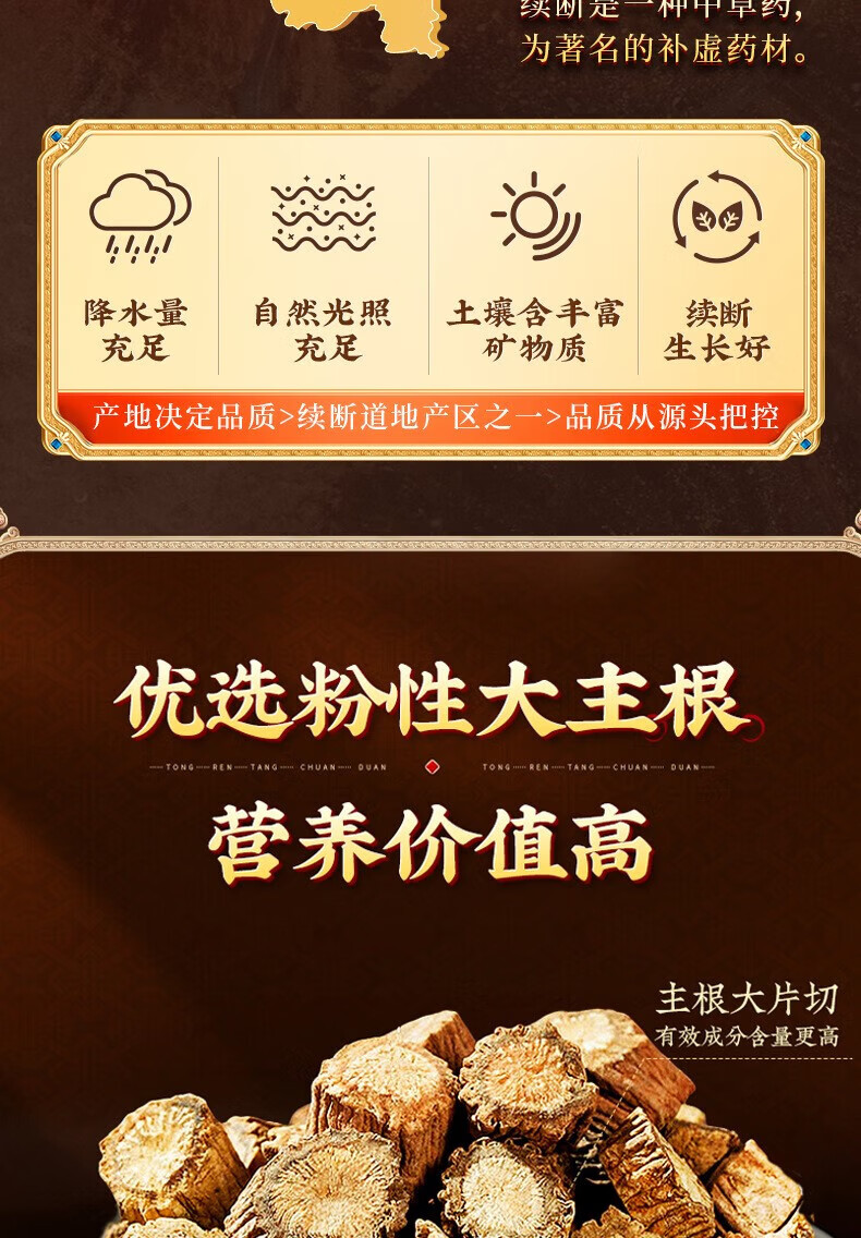 朕皇北京同仁堂续断主根切片新货无熏硫可磨粉泡酒泡茶喝男士养生滋补 【2盒分享装】200g/盒