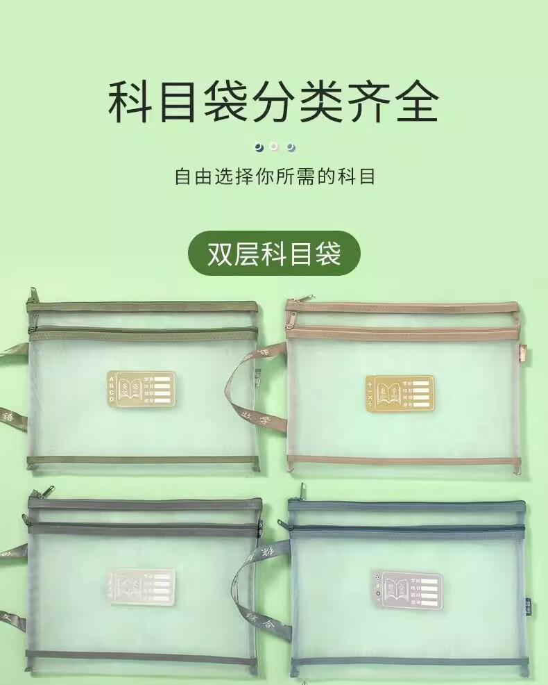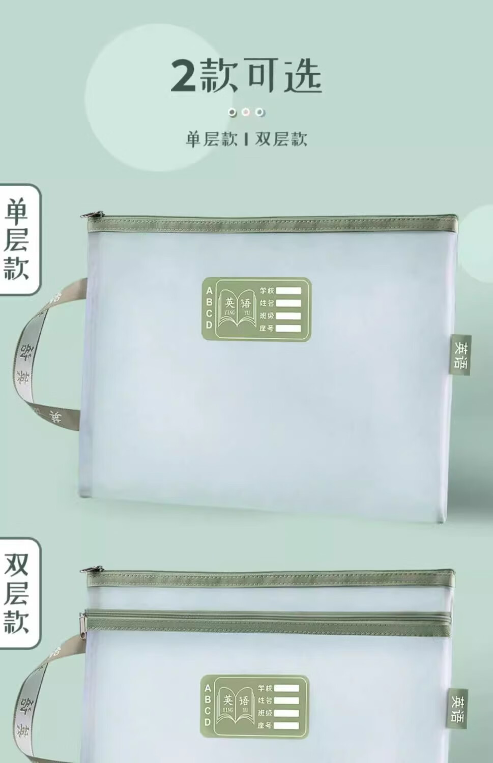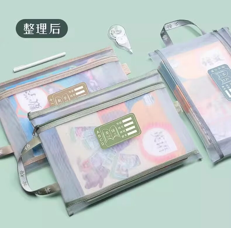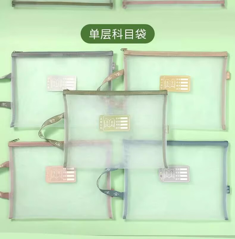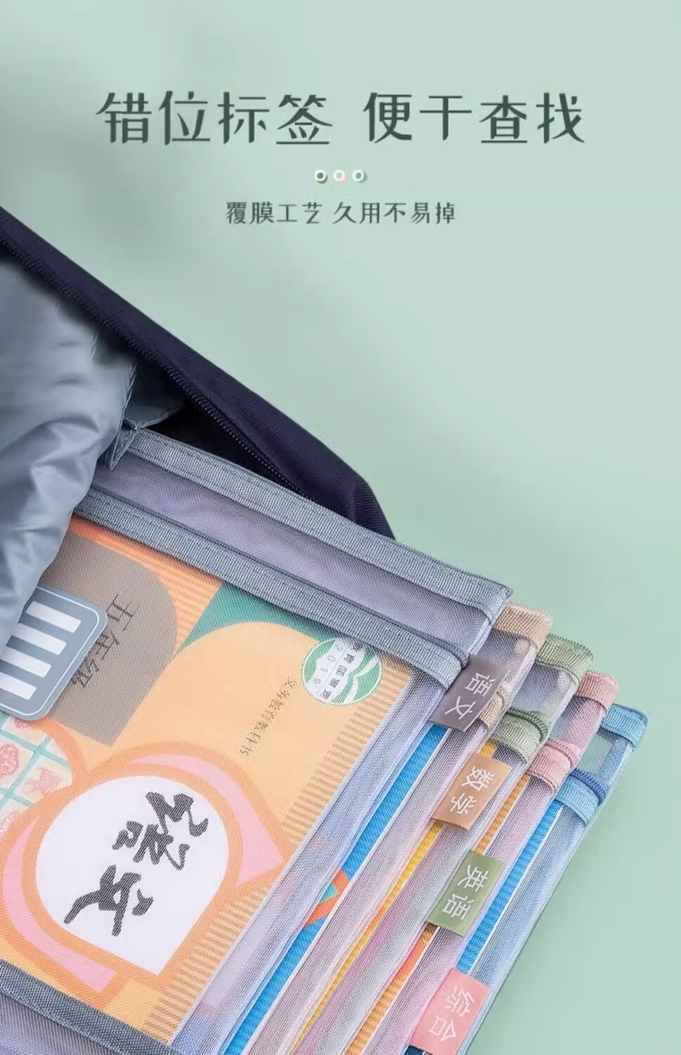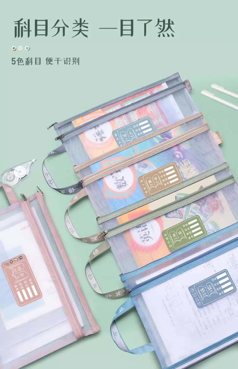 一树梨花 文件袋科目袋分类袋 小学生手提拉链式作业课本试卷资料书籍收纳袋透明网纱文具袋书袋 【升级加厚】双层5个/语+数+英+综+作