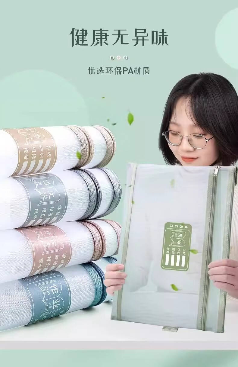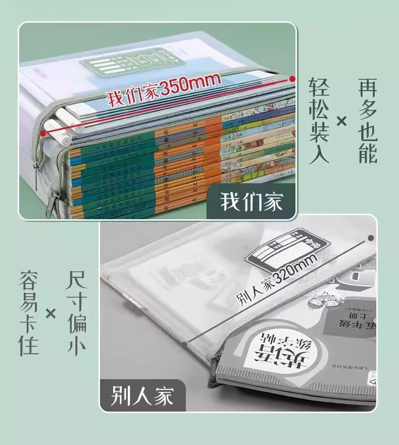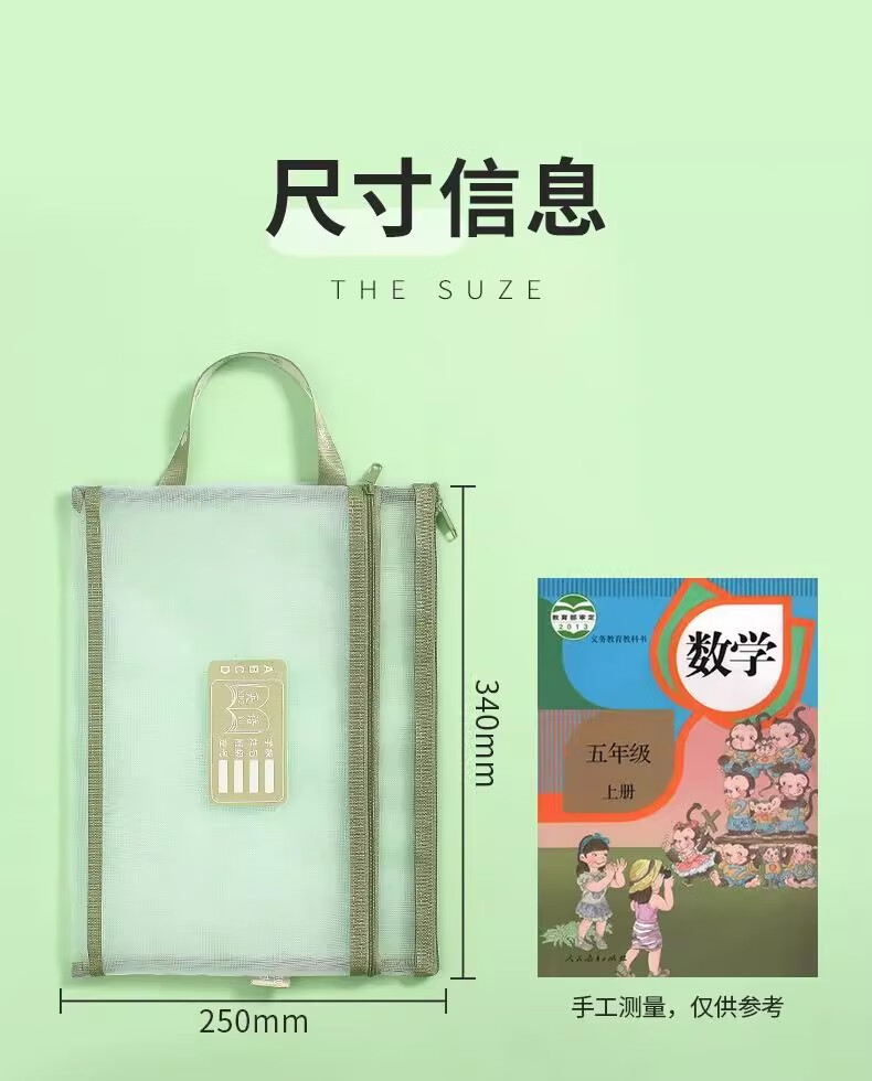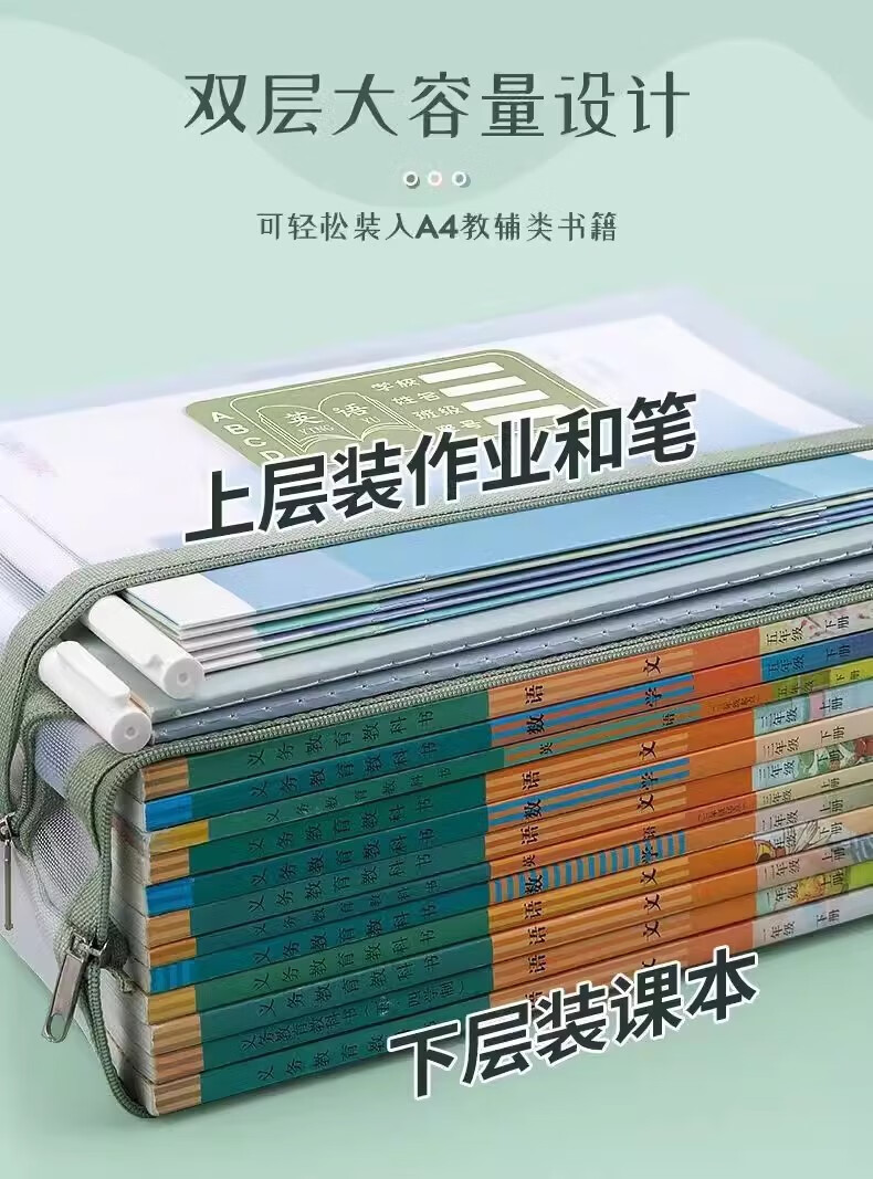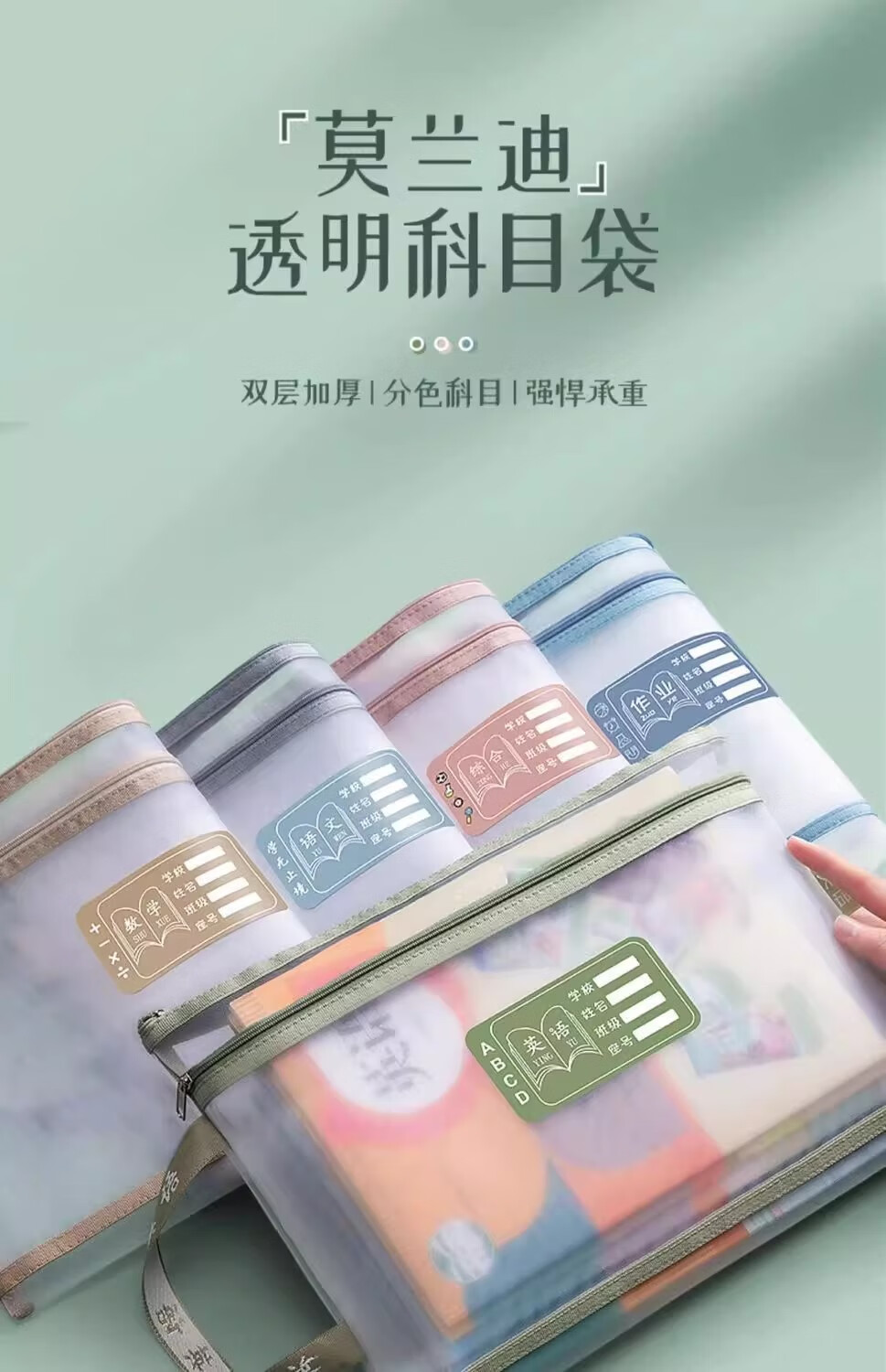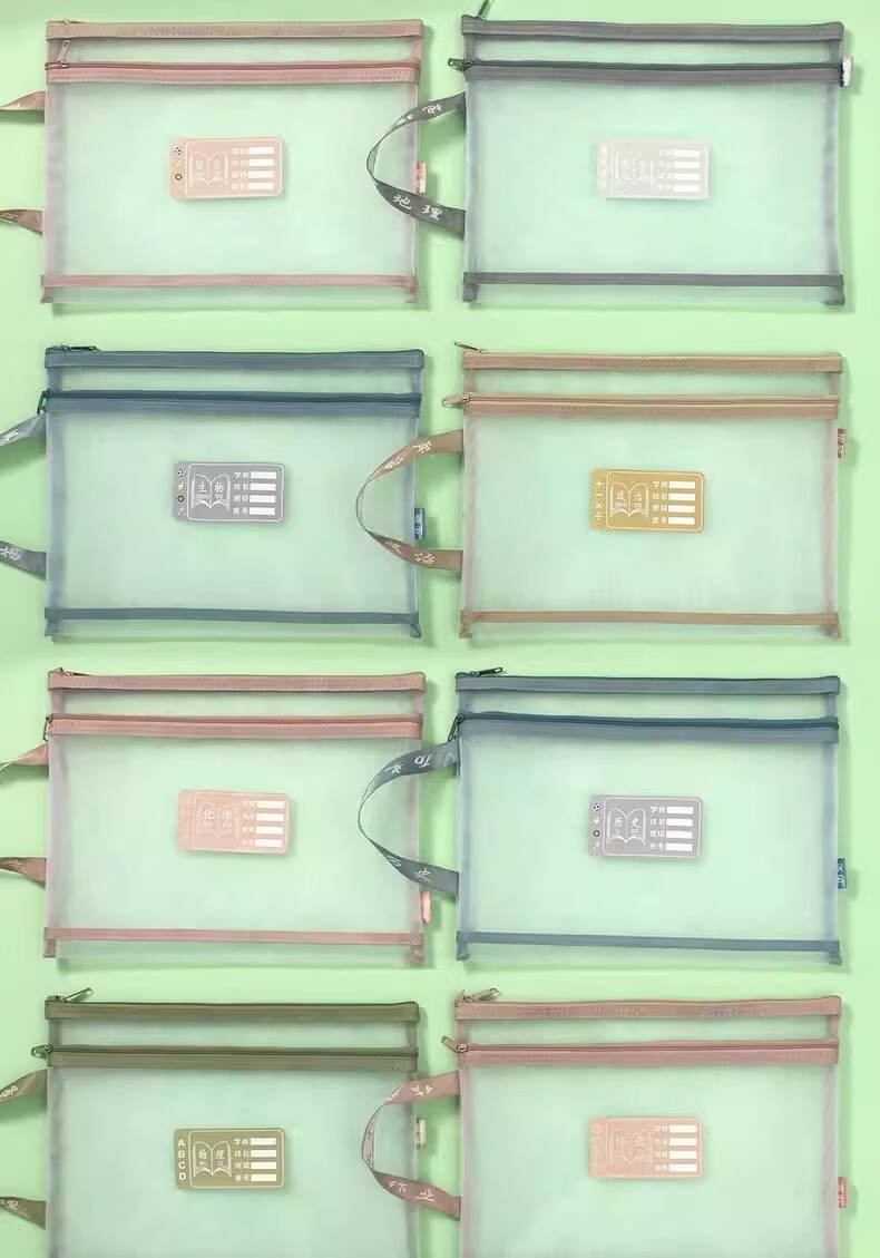 一树梨花 文件袋科目袋分类袋 小学生手提拉链式作业课本试卷资料书籍收纳袋透明网纱文具袋书袋 【升级加厚】双层5个/语+数+英+综+作