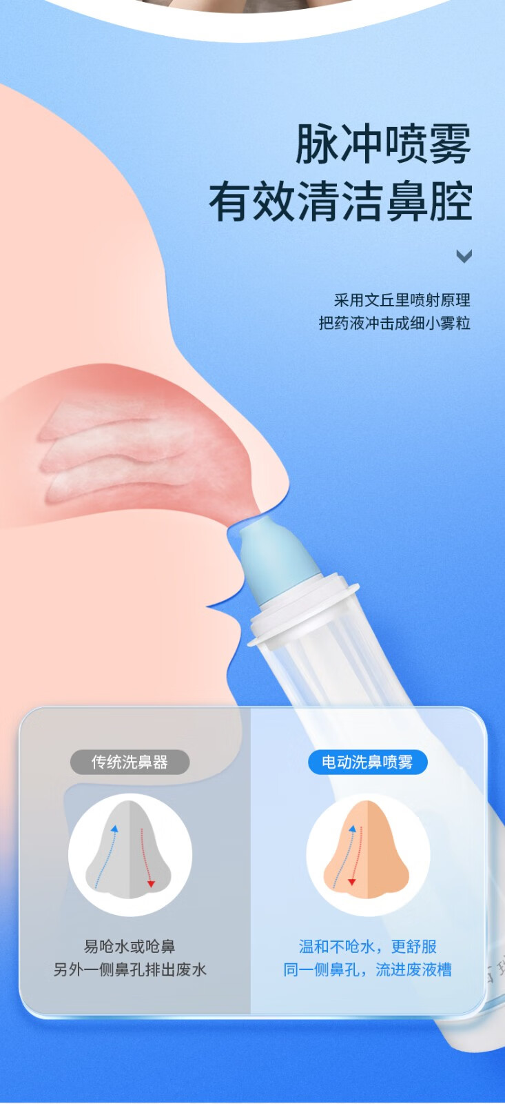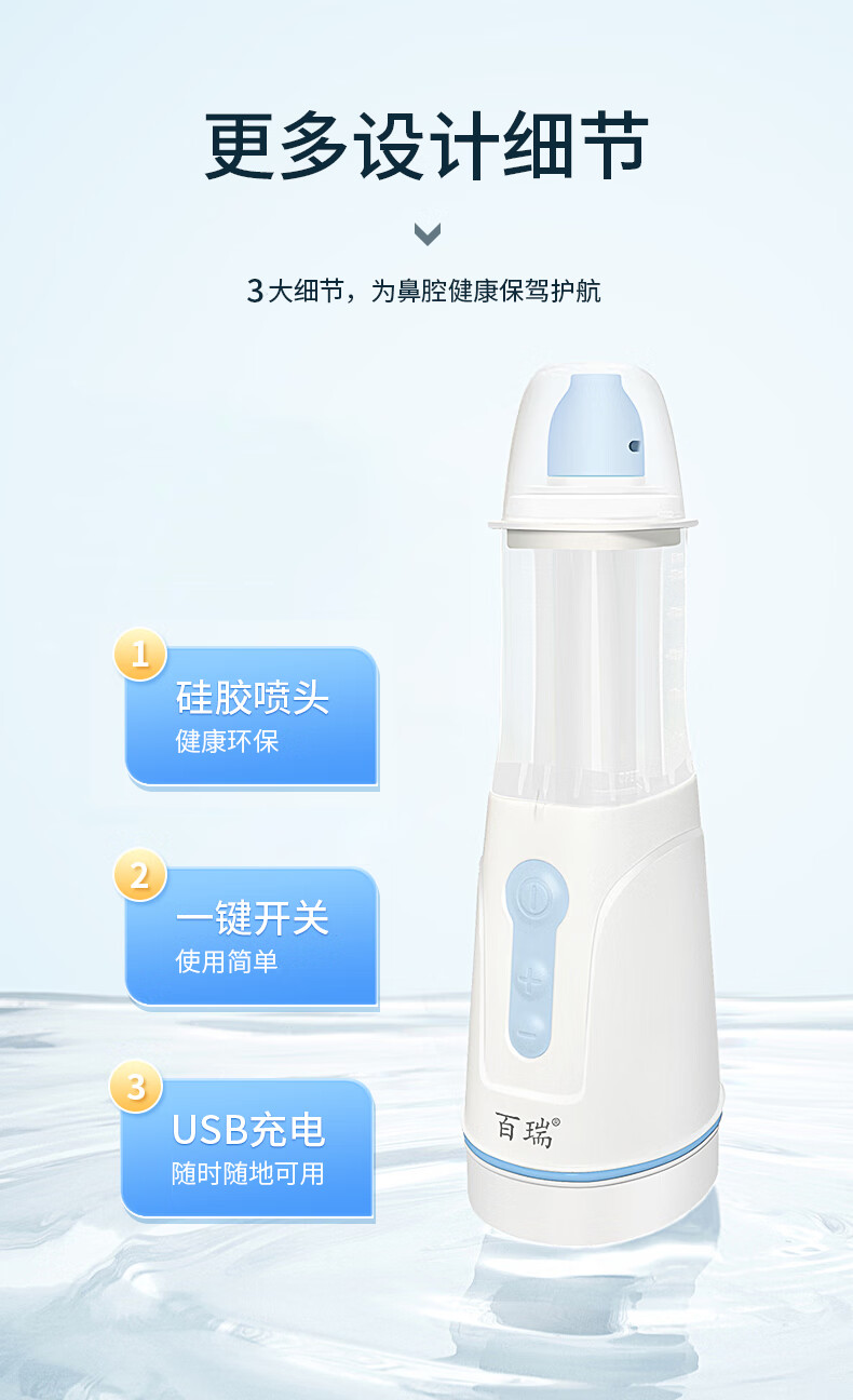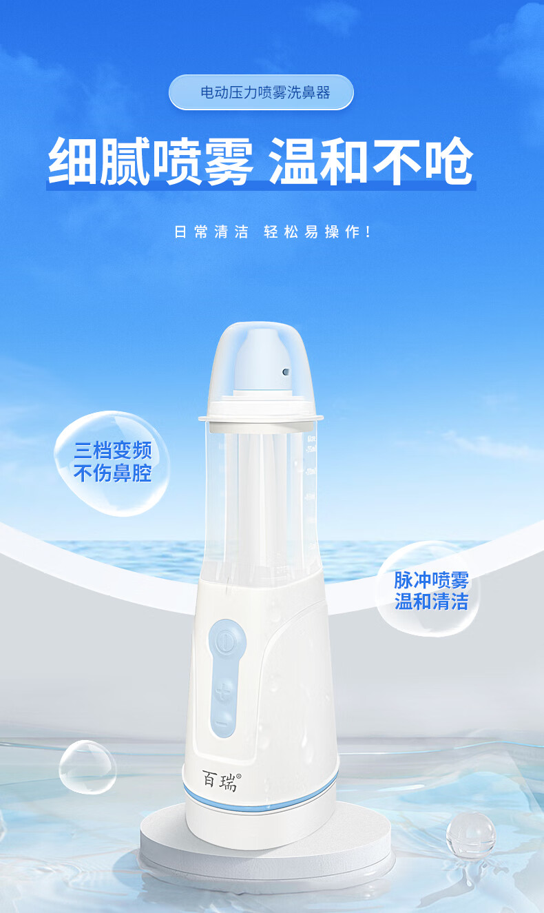 百瑞 医用电动喷雾洗鼻器 鼻炎鼻腔雾化清洗护理 儿童成人手持便携式 洗鼻器+鼻腔清洗液1盒
