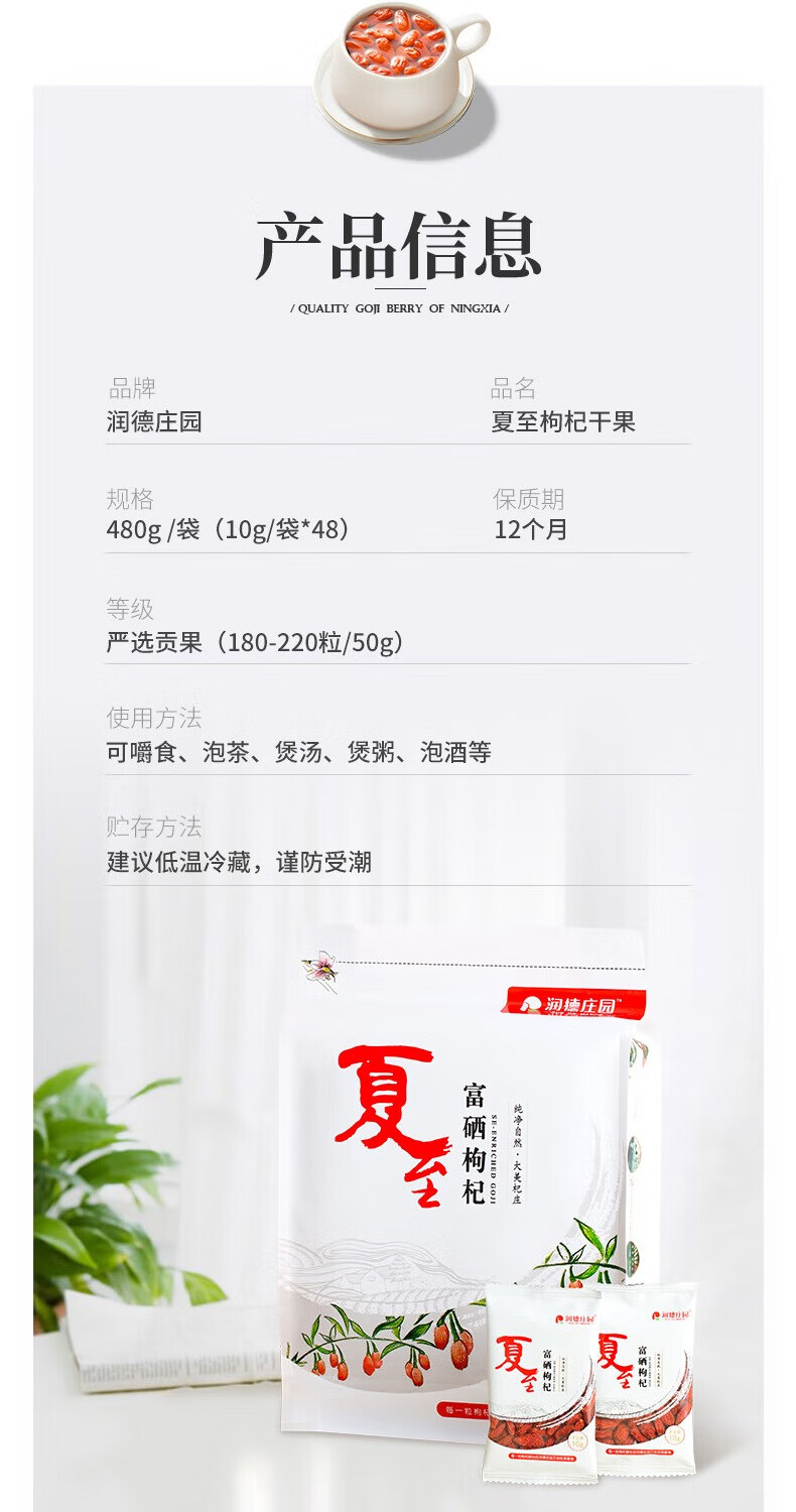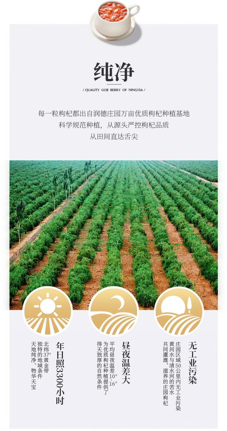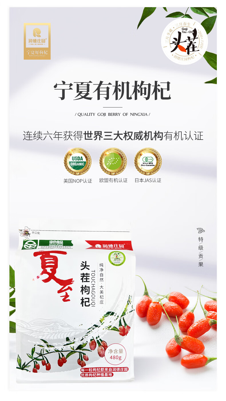 润德庄园有机宁夏头茬枸杞子枸杞果干独立小包装礼袋装特优级480g送礼礼盒 【有机富硒】头茬特优 480g*1袋 【顺丰送货上门】