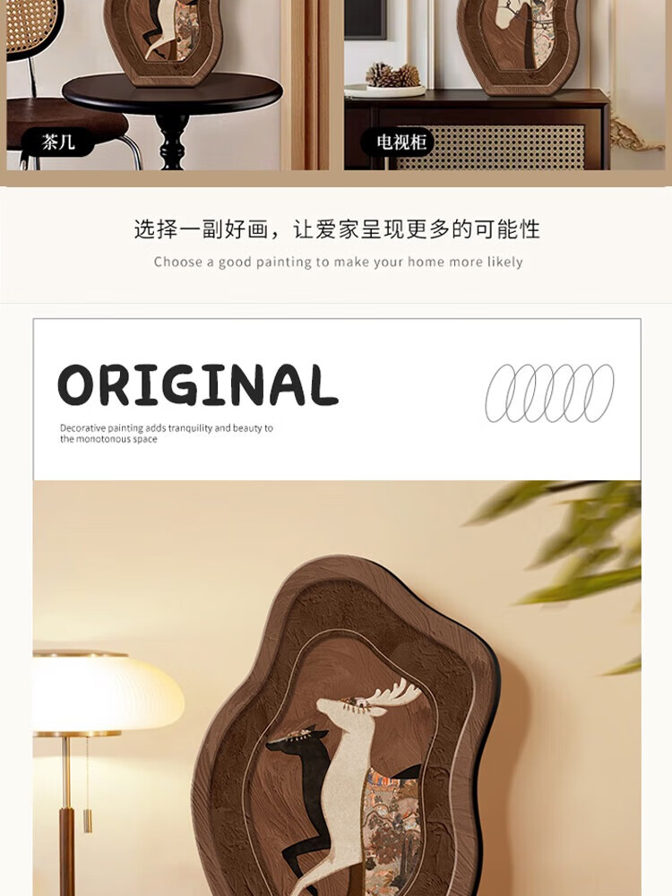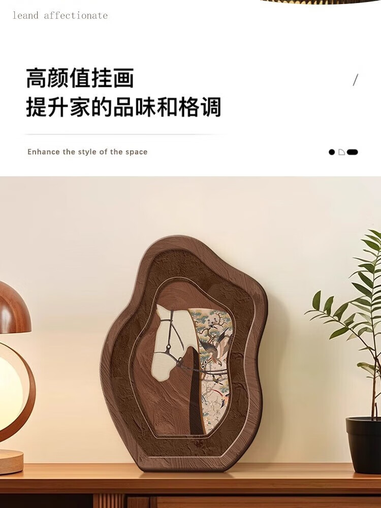 渝鼎福中古风桌面摆件装饰画斗柜玄关床头柜摆台复古艺术小众高级感摆画 马到成功装饰画 15*20cm