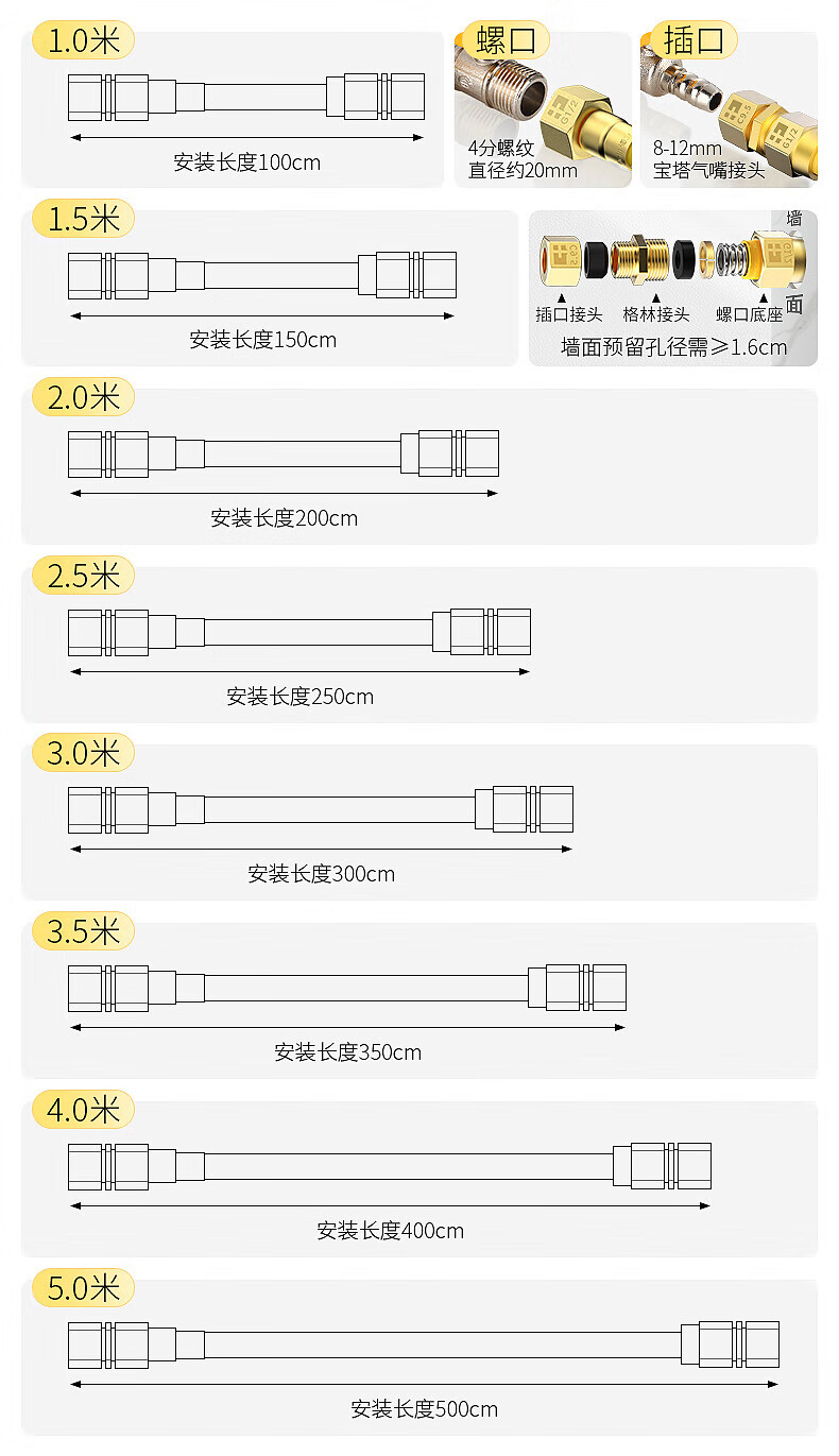 海立燃气管波纹管2025新国标304不锈钢防爆天然气管道专用4分灶热水器