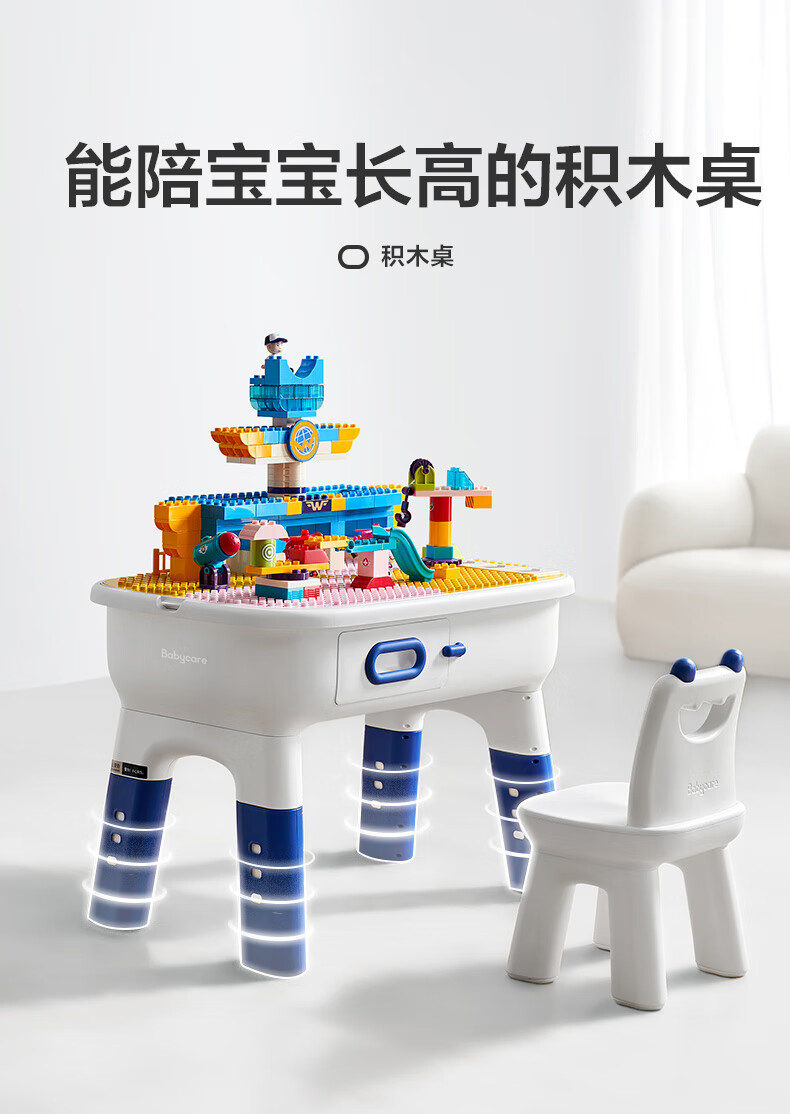 babycare 积木桌子多功能益智拼装玩具男孩女孩宝宝儿童大颗粒生日礼物 积木桌(一桌一椅)