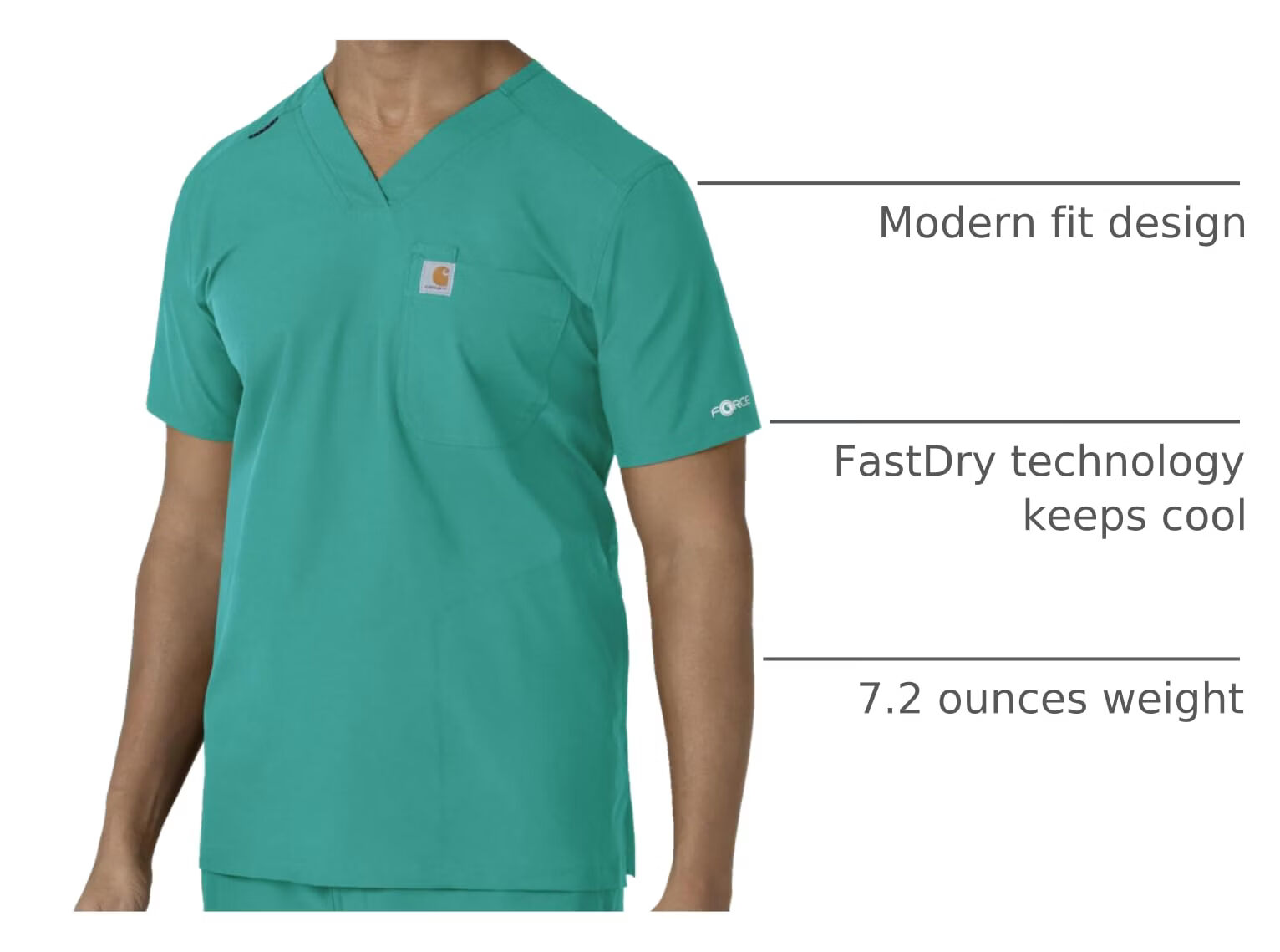 Carhartt Scrubs C16113 Force 时尚修身 V 领上衣, 蓝绿色, 小号 蓝绿色 小号