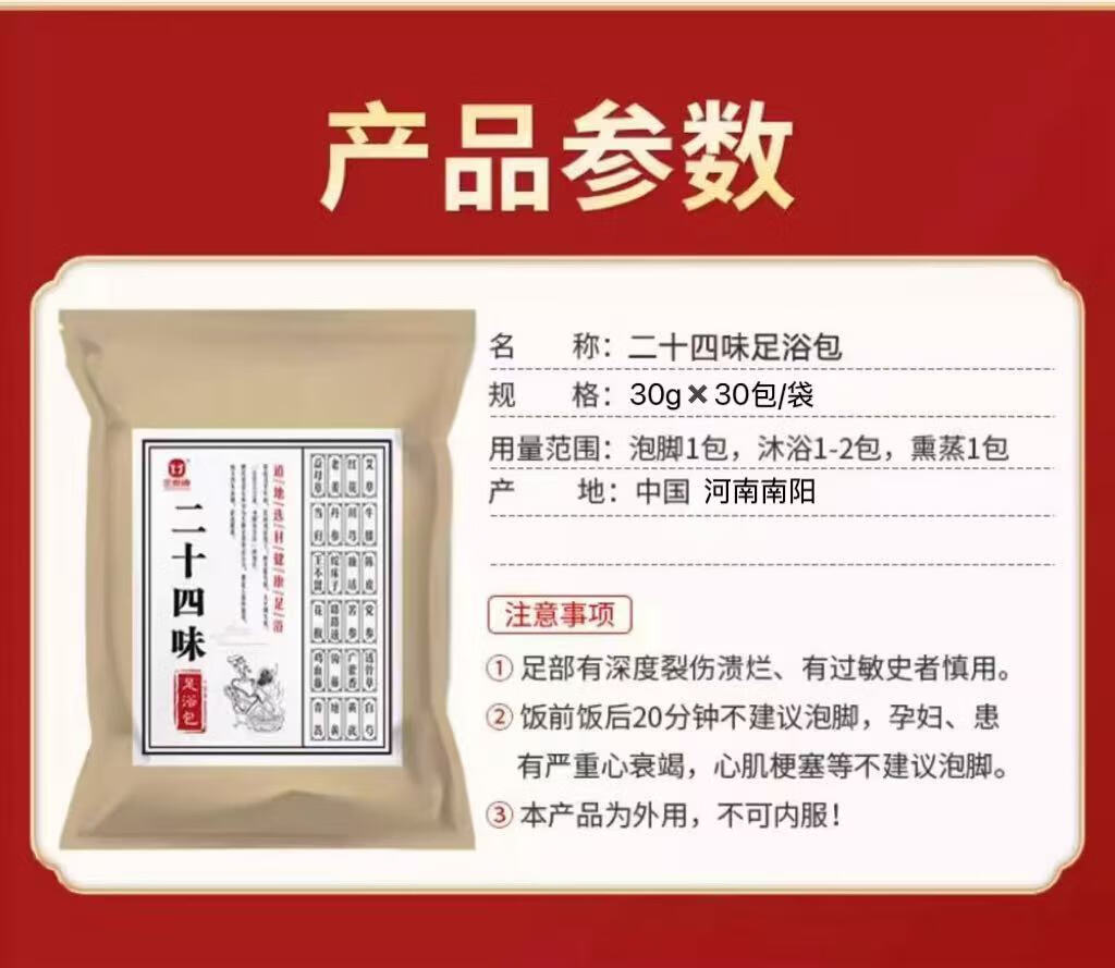 二十四味足浴包泡脚包24味泡脚药包祛寒去湿气助睡眠排毒艾草艾叶 【限时活动】1袋900g