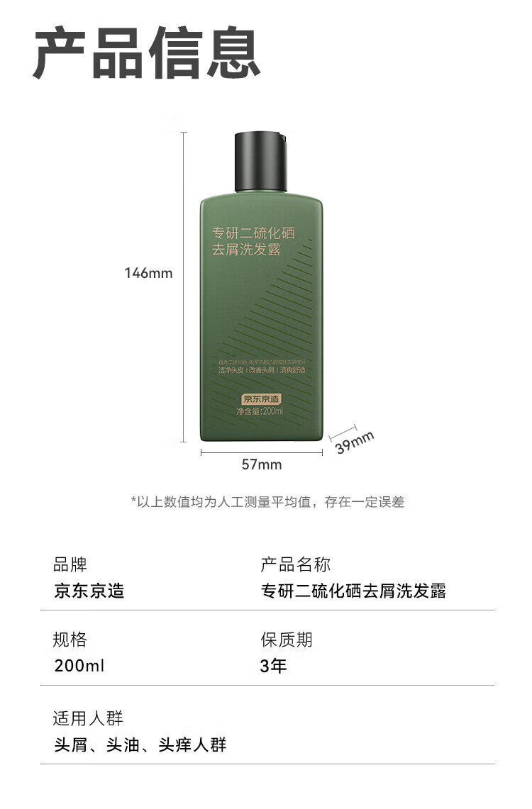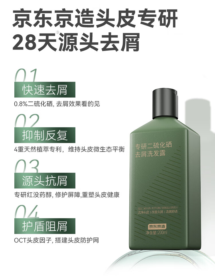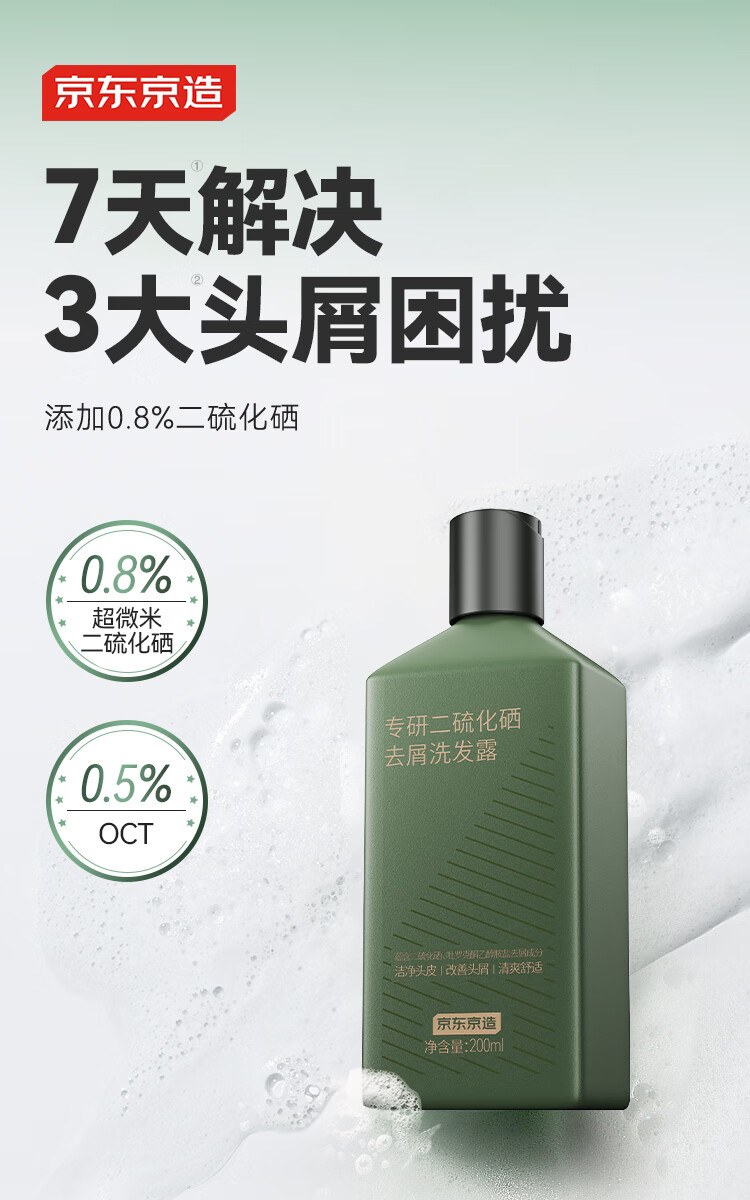 京东京造专研二硫化硒洗发水200ml男士女士去屑控油止痒洗头膏京东自营
