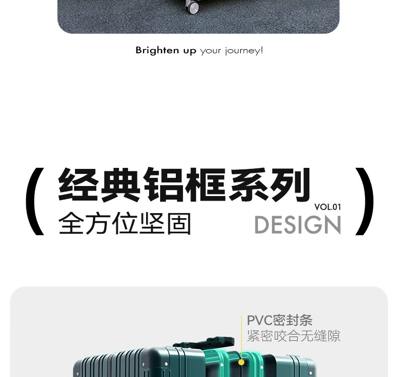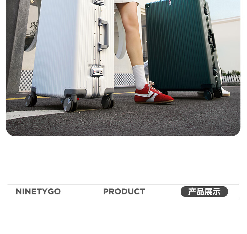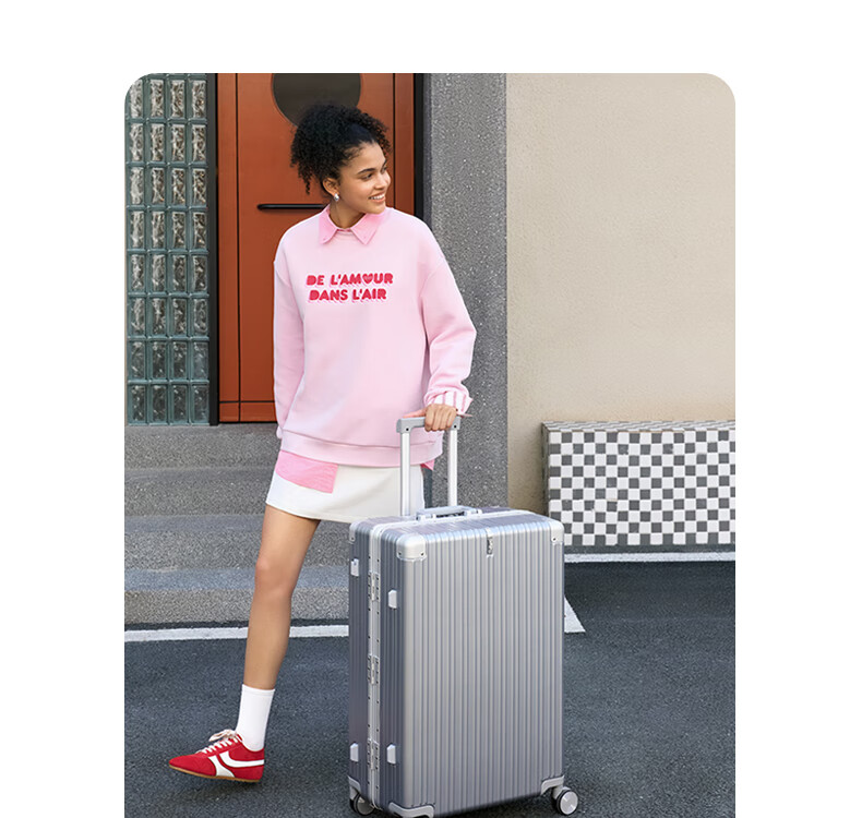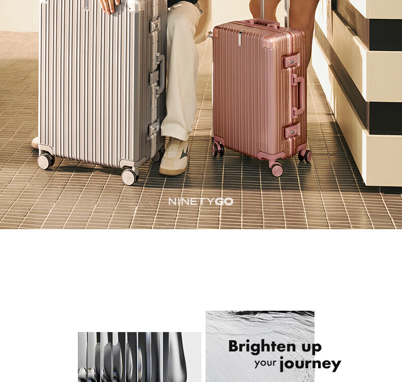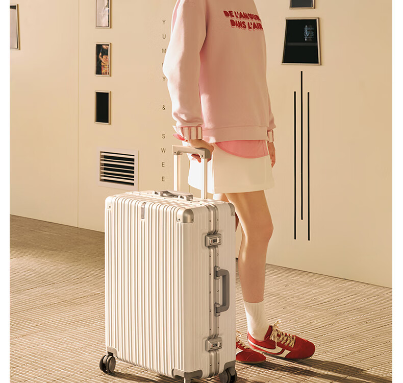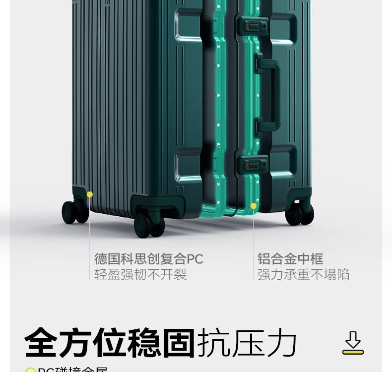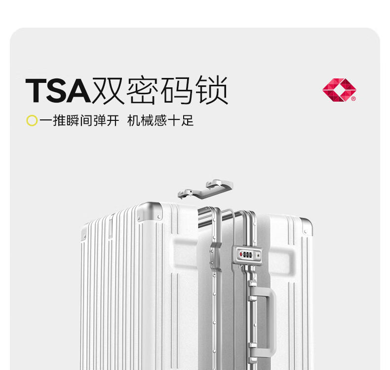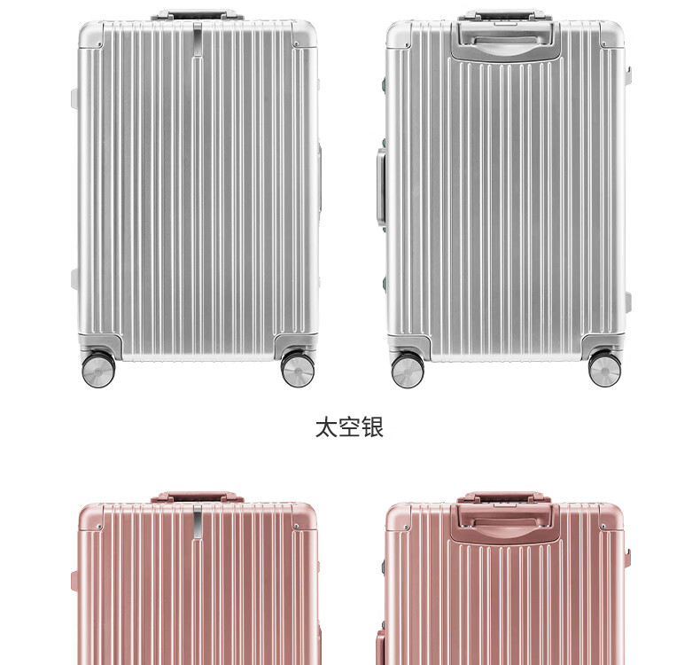 90分行李箱26英寸铝框拉杆箱大容量旅行箱万向轮密码箱皮箱太空银