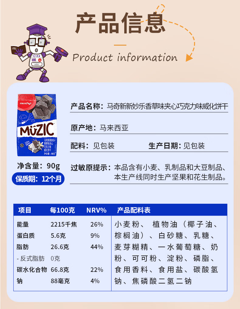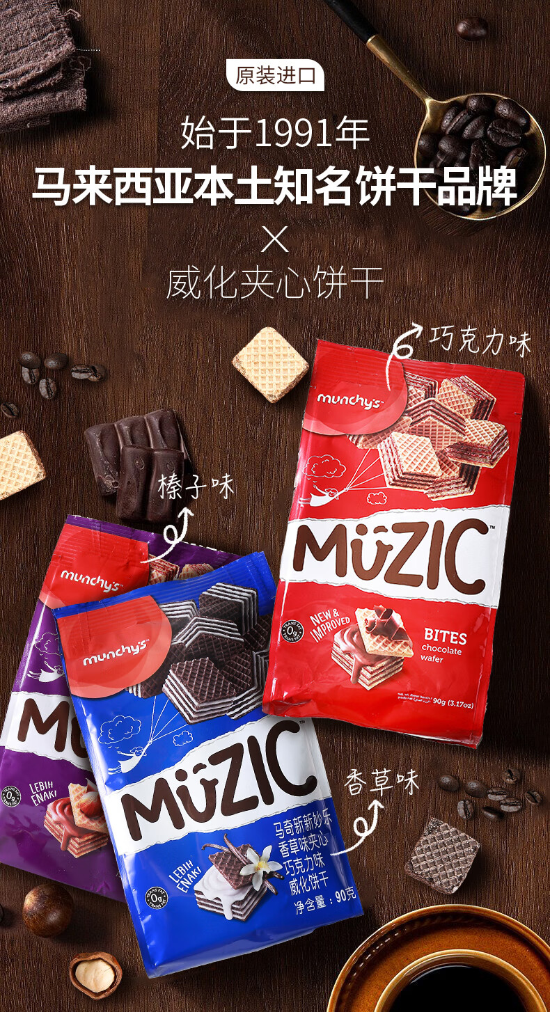 马奇新新 马来西亚进口威化点心休闲零食夹心饼干多口味下午茶曲奇蛋卷 香草味威化90g*4