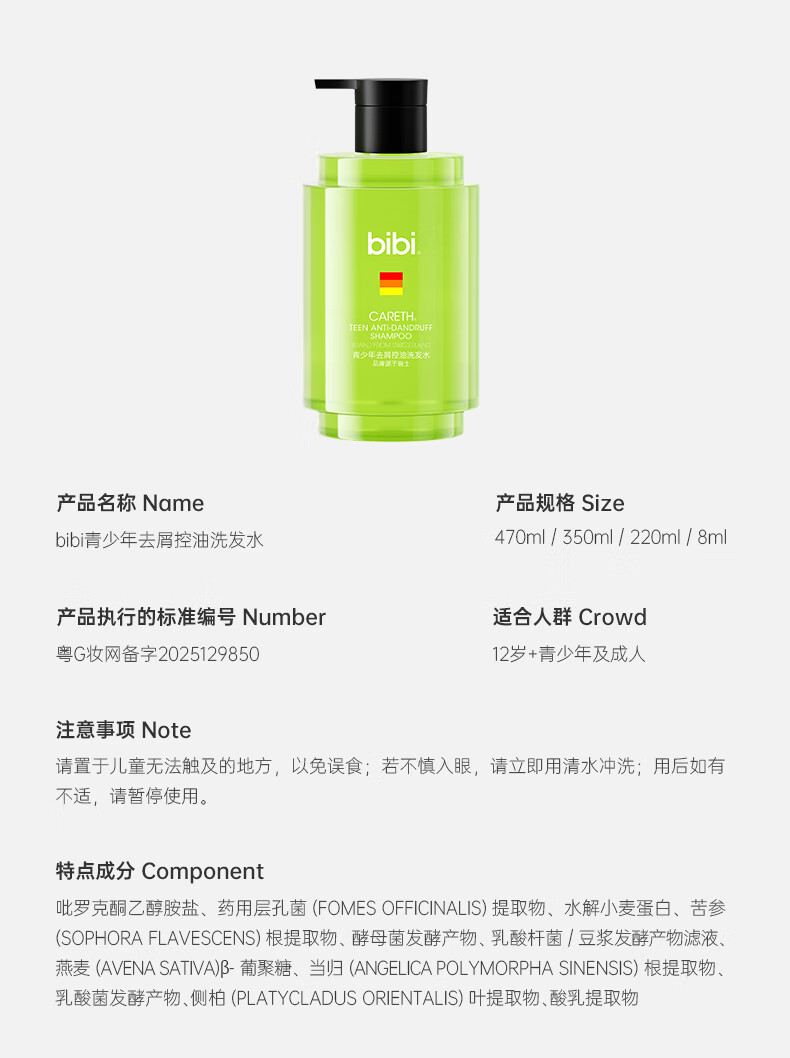 bibi青少年洗发水深层洁净去屑控油男女学生洗发乳滋养头皮大童洗发露 【拍1送3】洗发水220ml