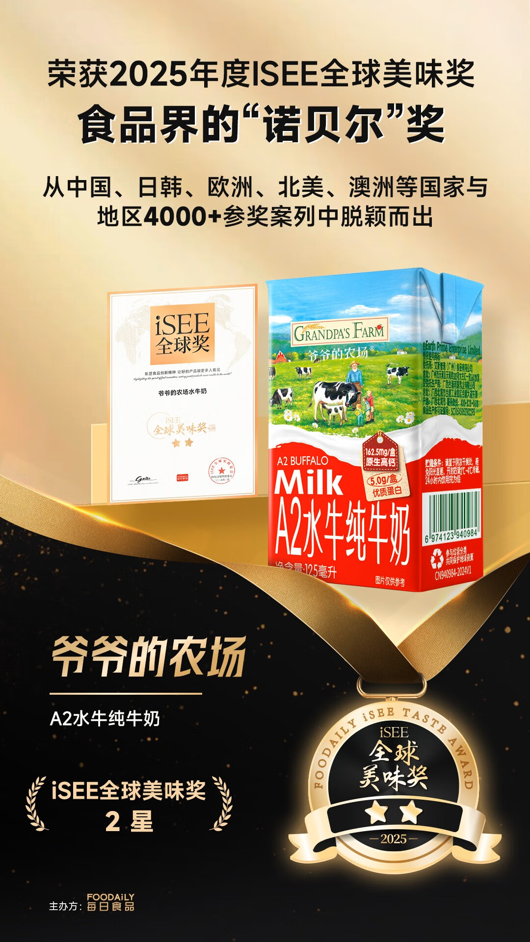 爷爷的农场A2水牛纯牛奶宝宝儿童早餐奶辅食零食 高钙优质蛋白纯牛奶 A2水牛奶-125ml*9盒/箱 -3箱装
