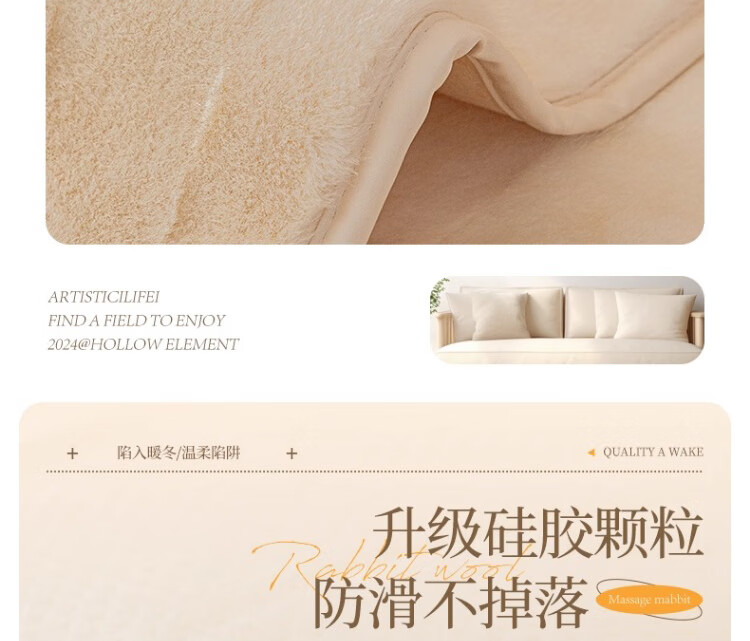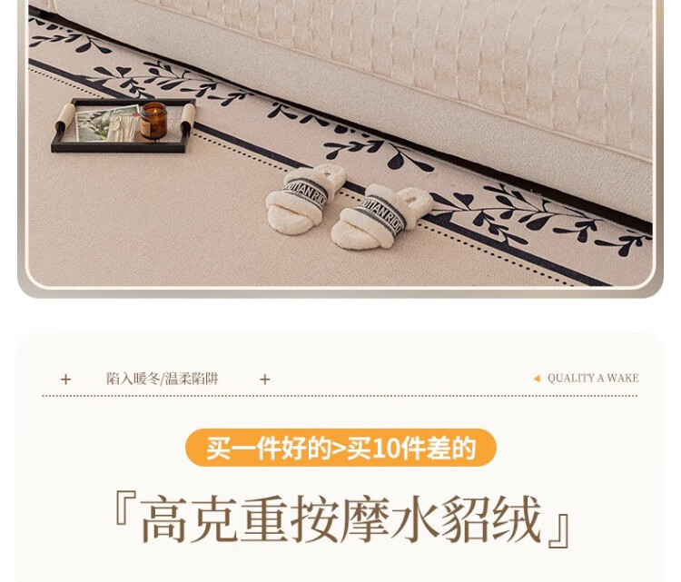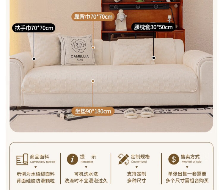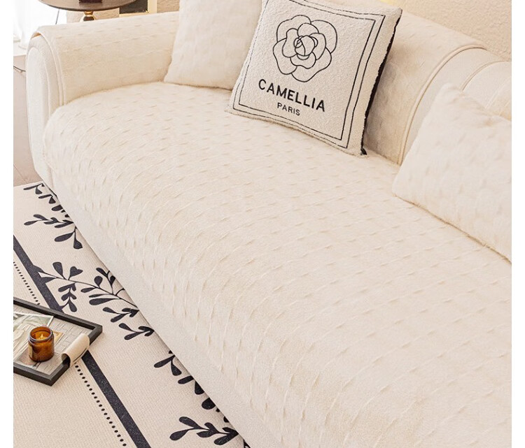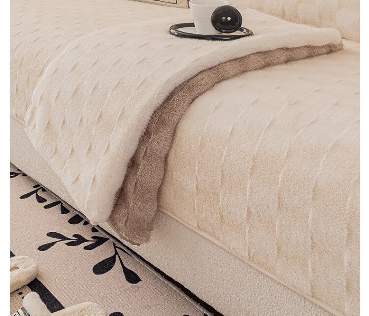 无印良品沙发垫冬季加厚水貂绒沙发座垫防滑沙发坐垫不掉毛沙发垫毛绒 双色水貂绒-米白【无甲醛荧光 耐磨耐猫抓】 90*120cm (扶手/坐垫)