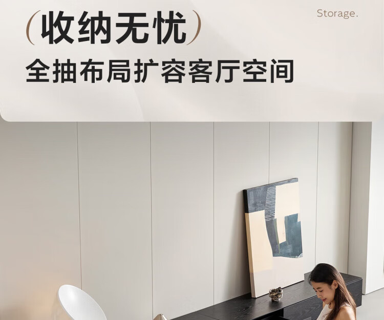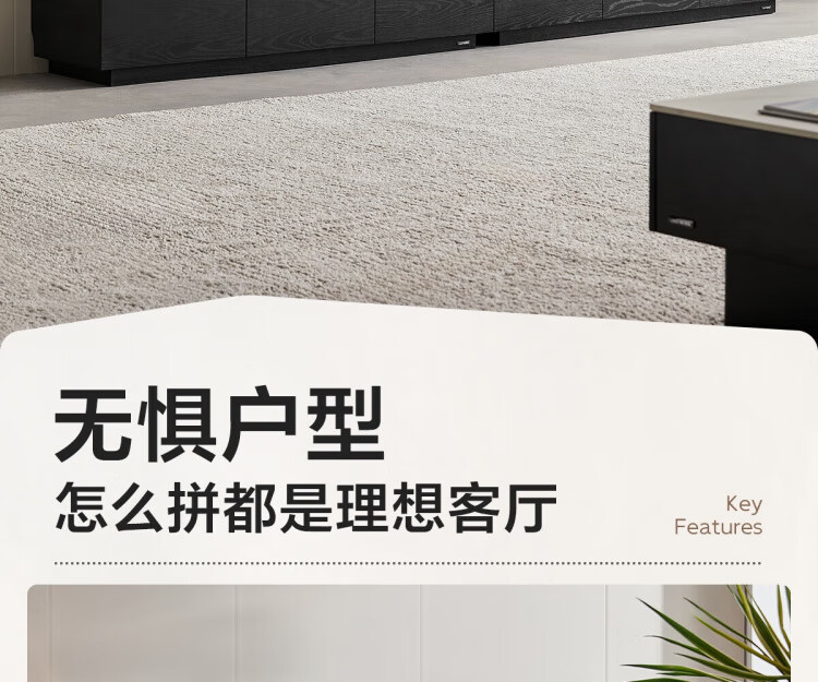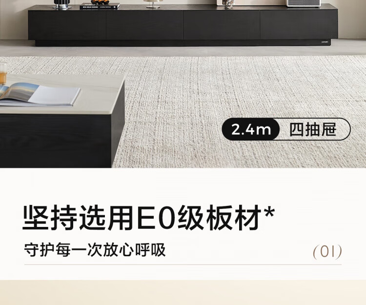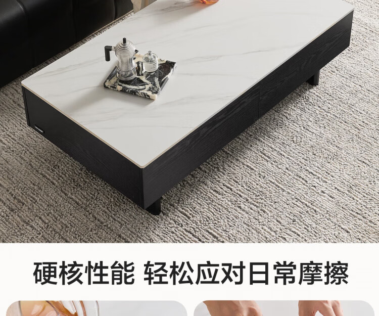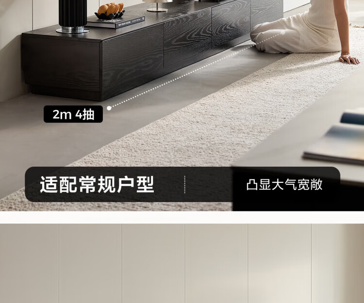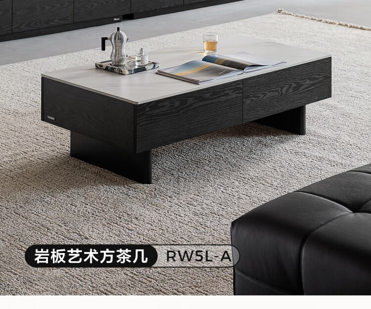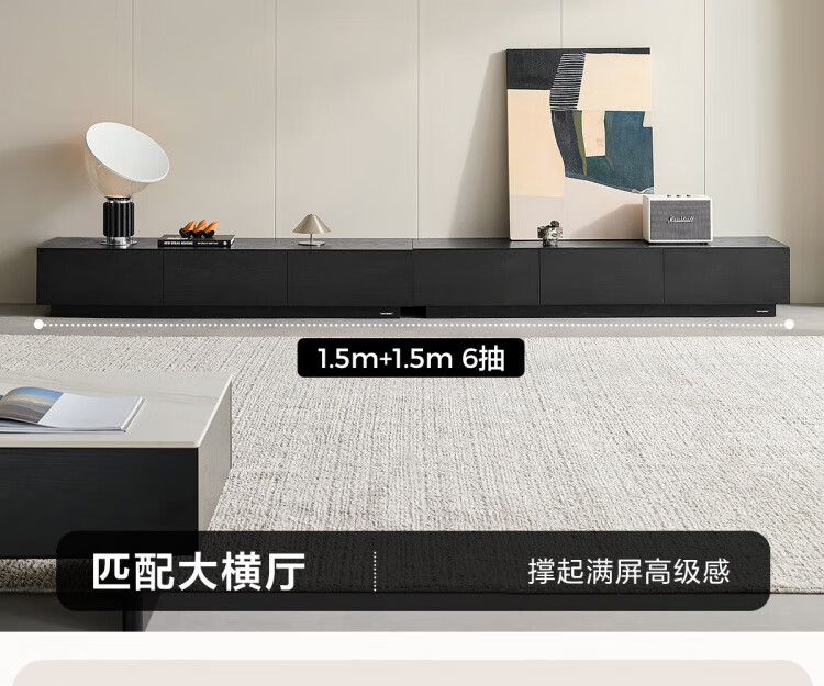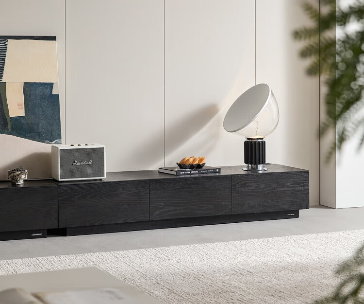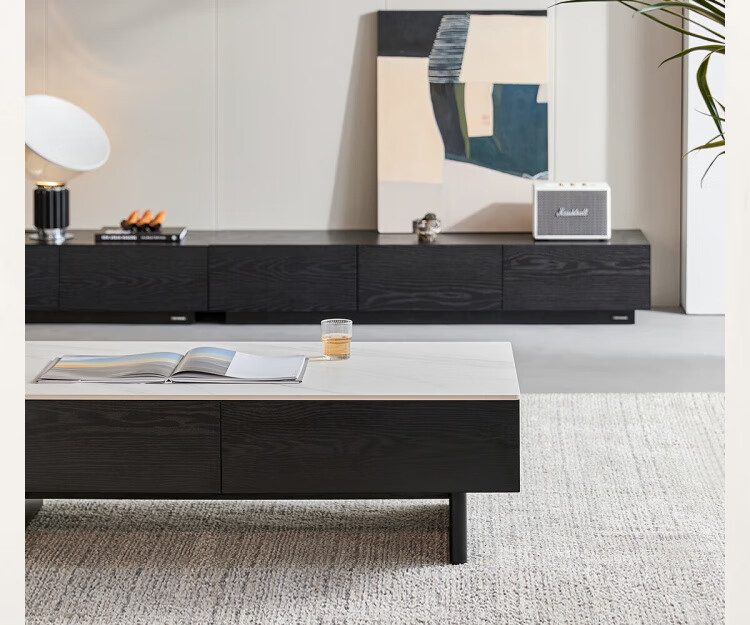 林氏家居黑色岩板茶几小户型落地电视柜组合客厅2025新款家用茶桌RW5L 2.0m电视柜