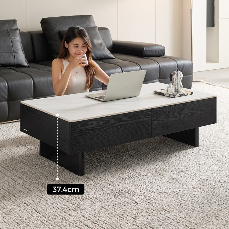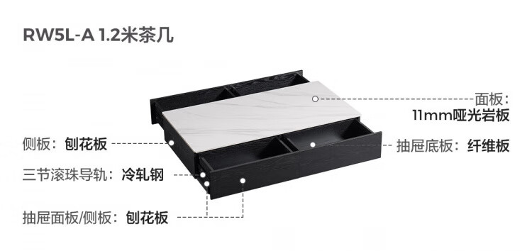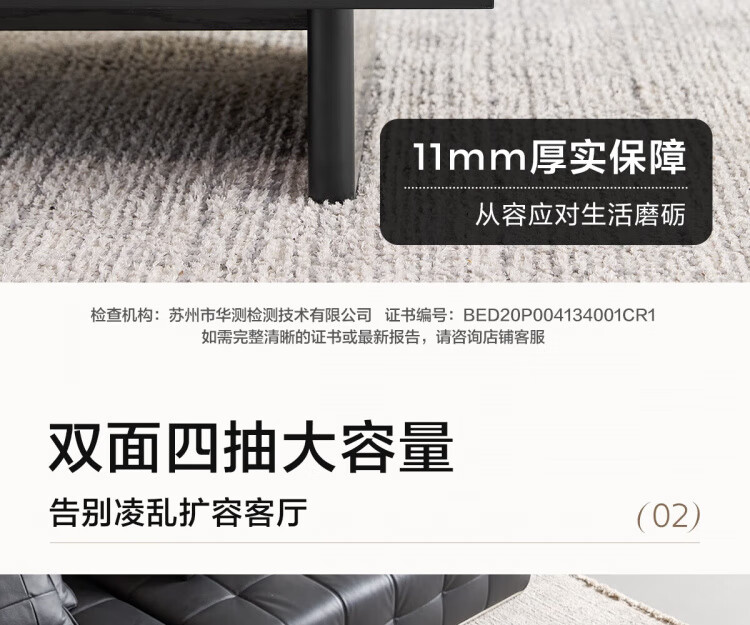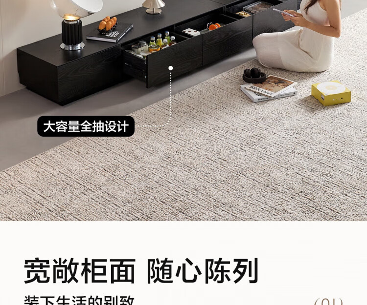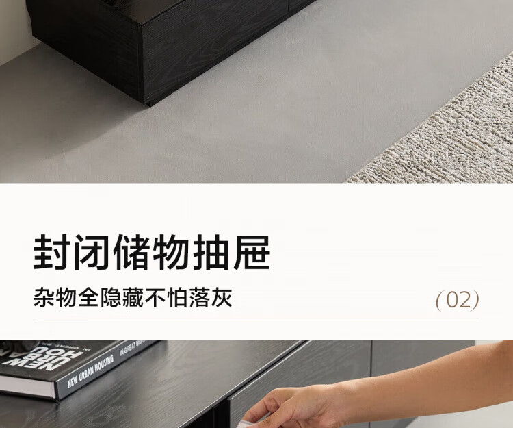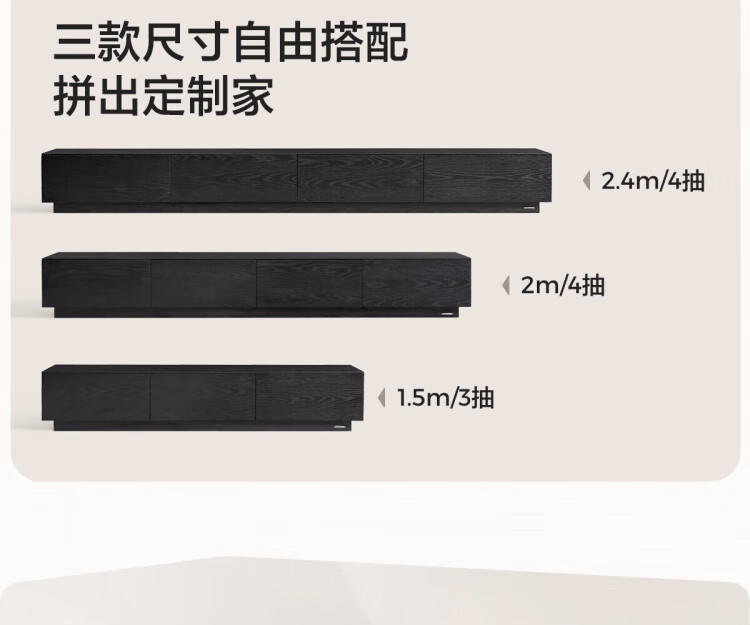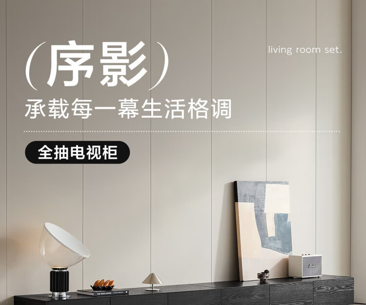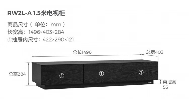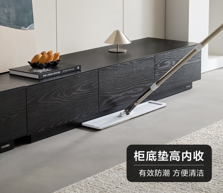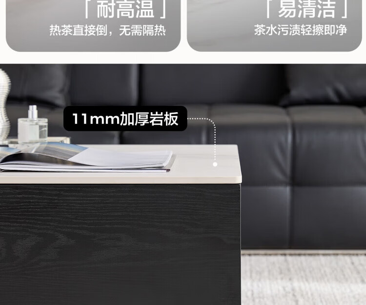 林氏家居黑色岩板茶几小户型落地电视柜组合客厅2025新款家用茶桌RW5L 2.0m电视柜