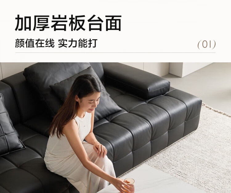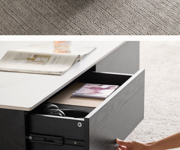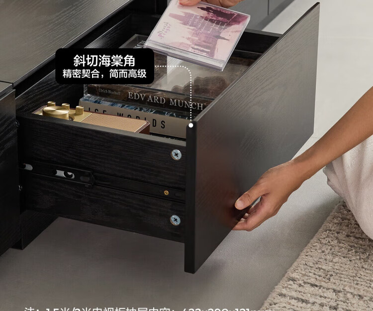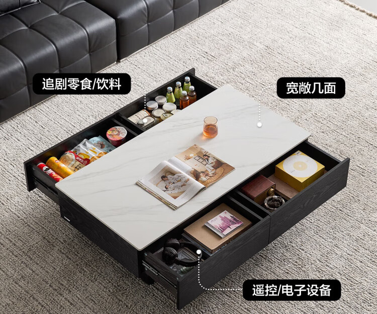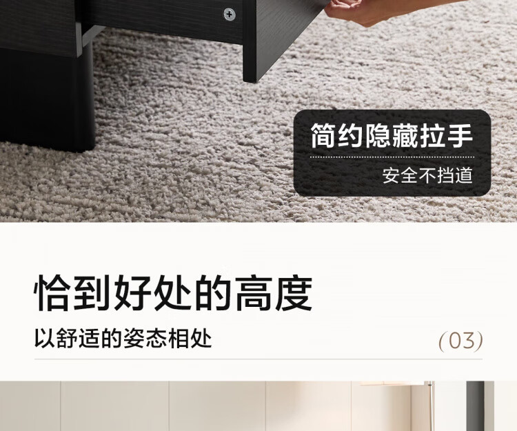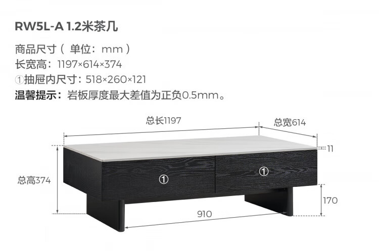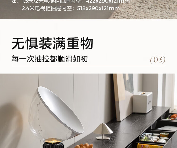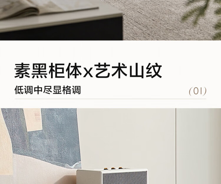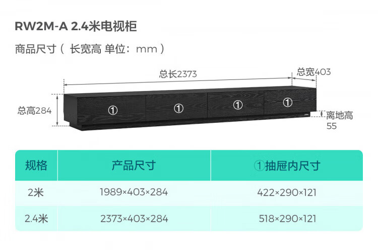 林氏家居黑色岩板茶几小户型落地电视柜组合客厅2025新款家用茶桌RW5L 2.0m电视柜