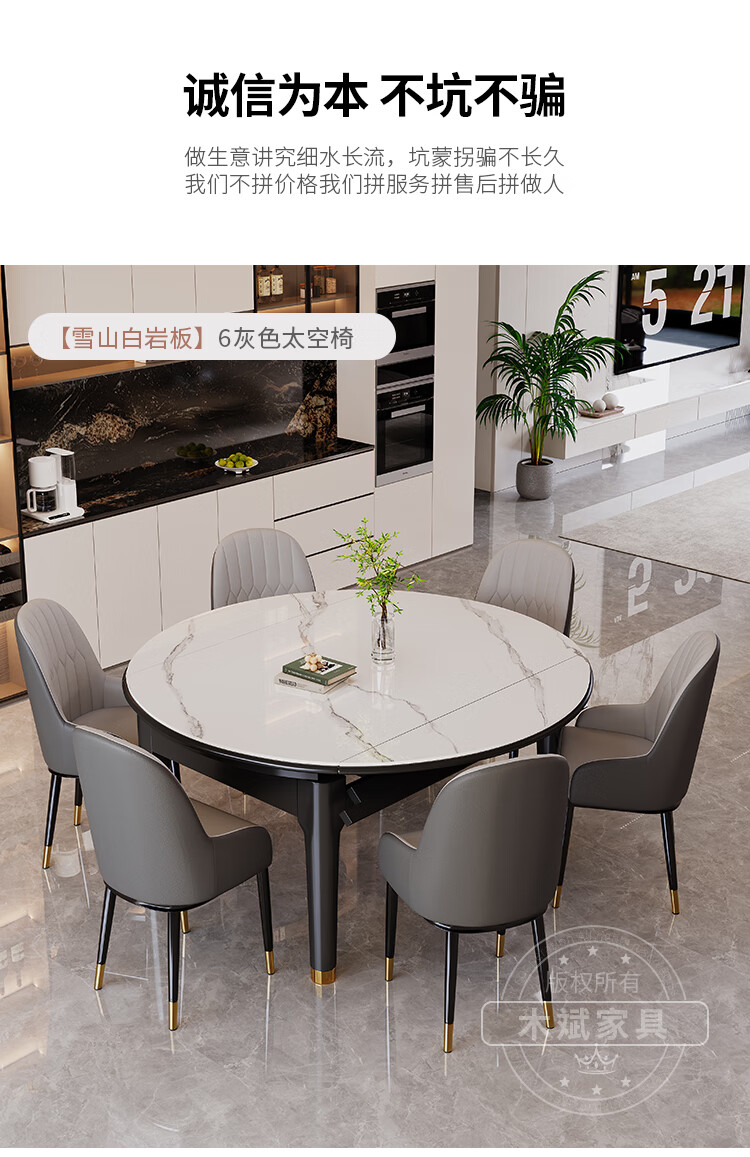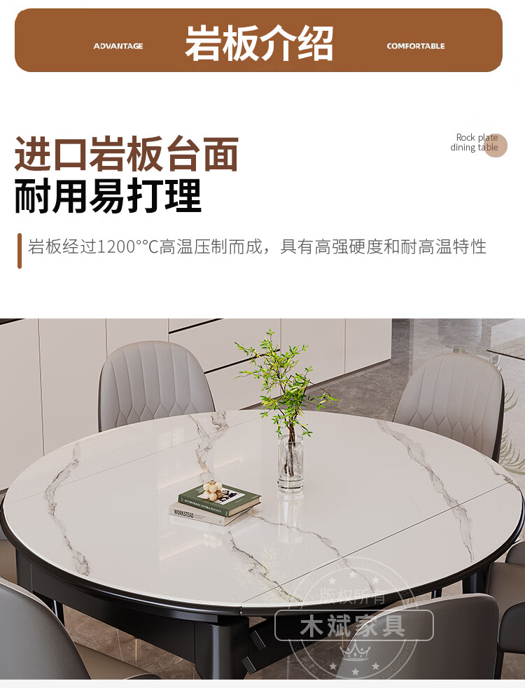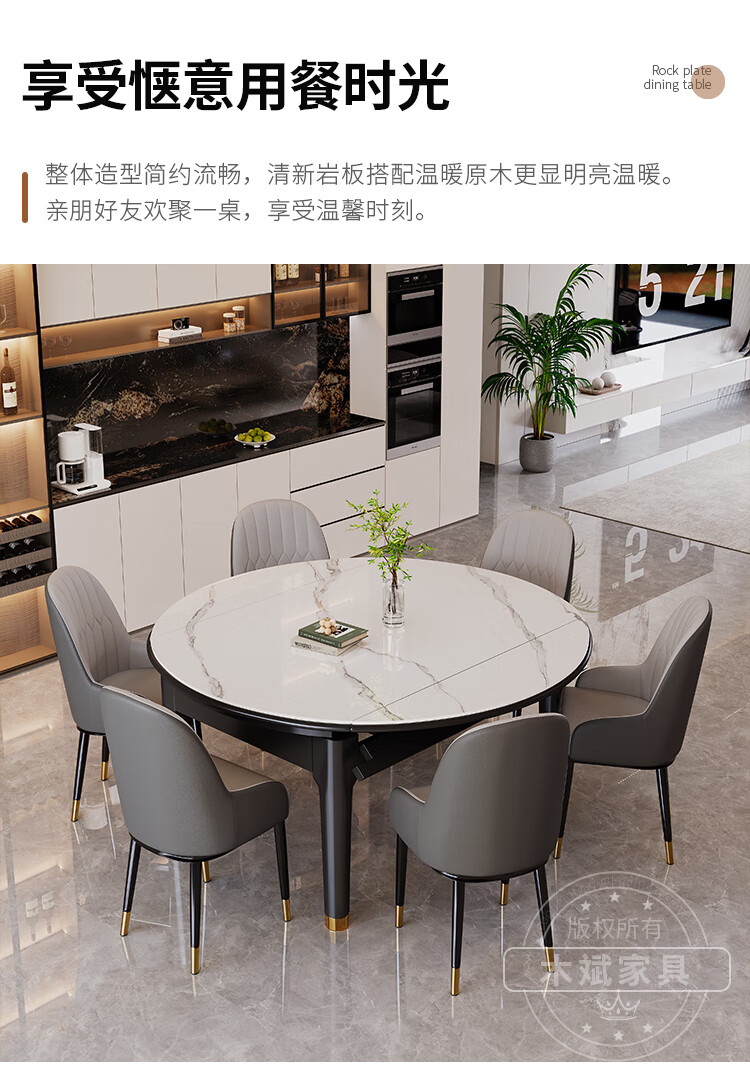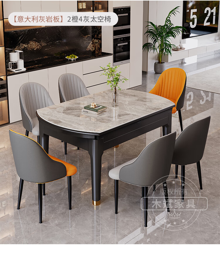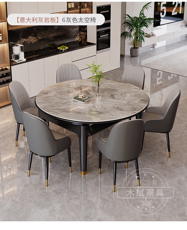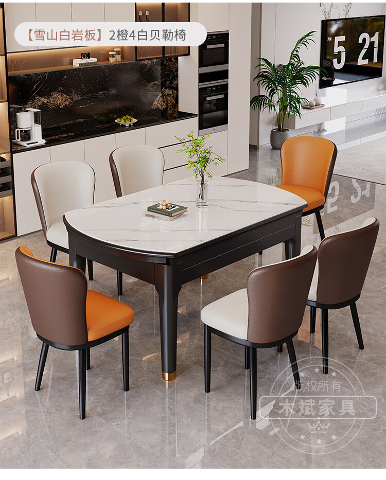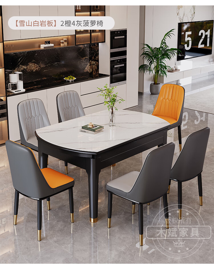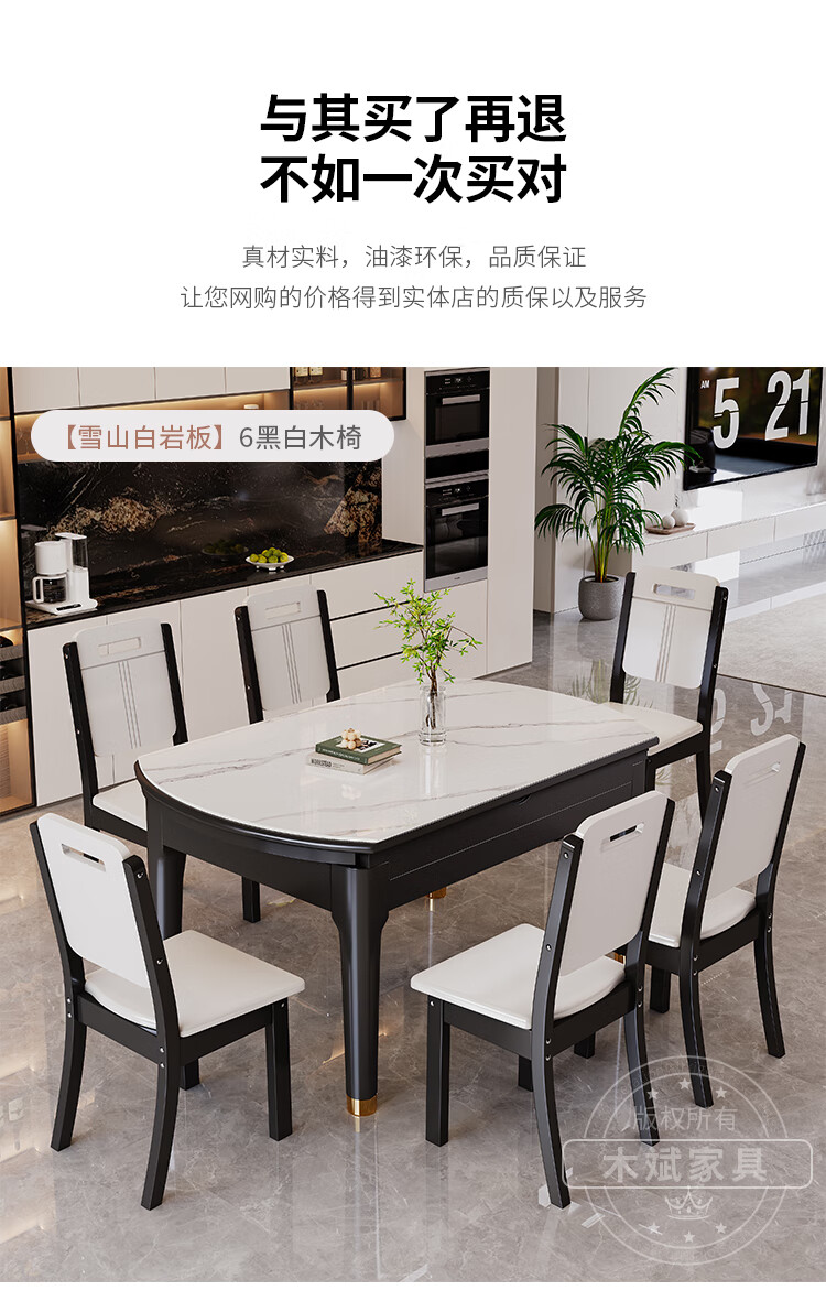 木斌实木岩板餐桌椅子全套现代简约家用小户型伸缩可折叠饭桌可变圆桌 【12MM岩板】 1桌6菠萝椅 (抗菌岩板) 1.2米