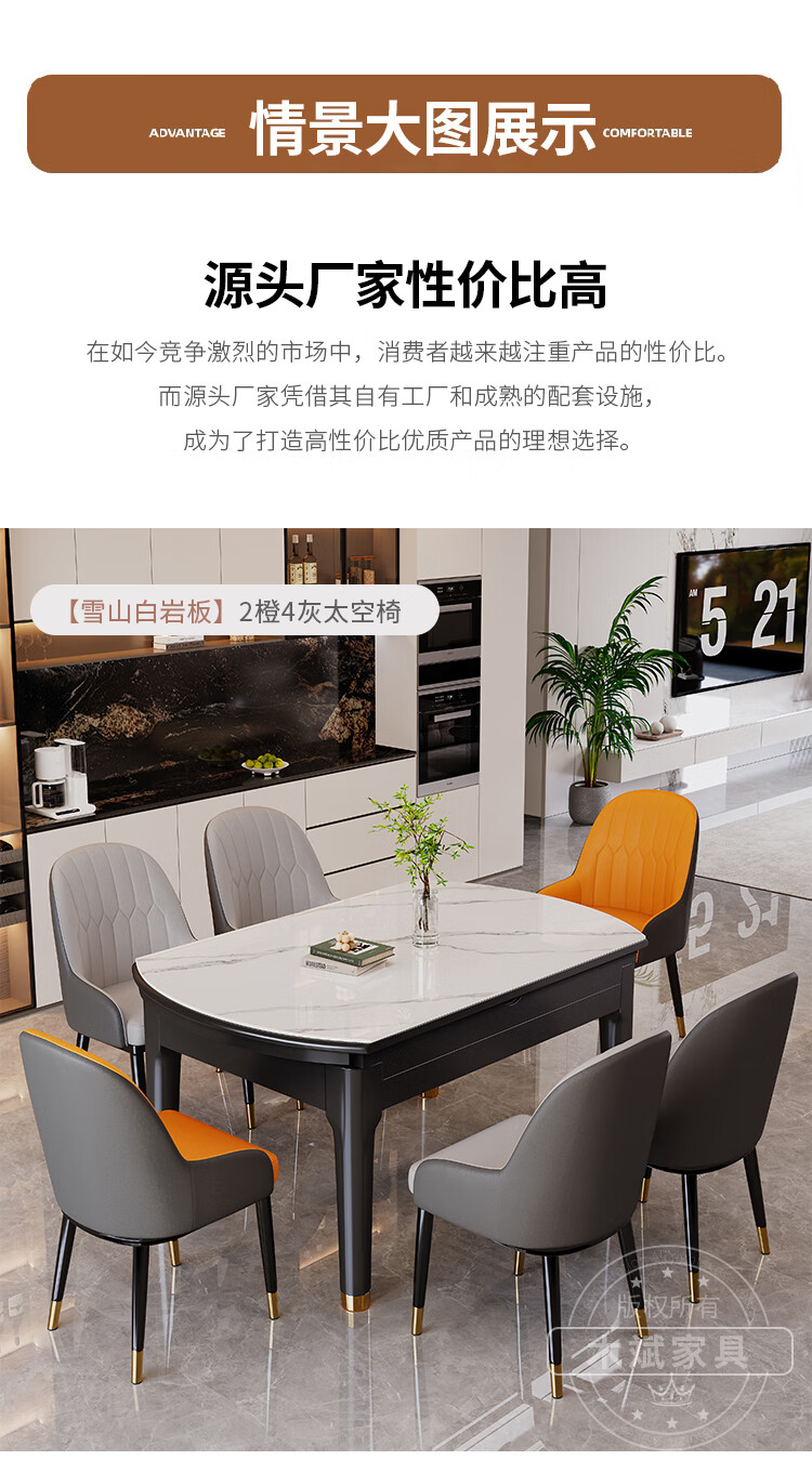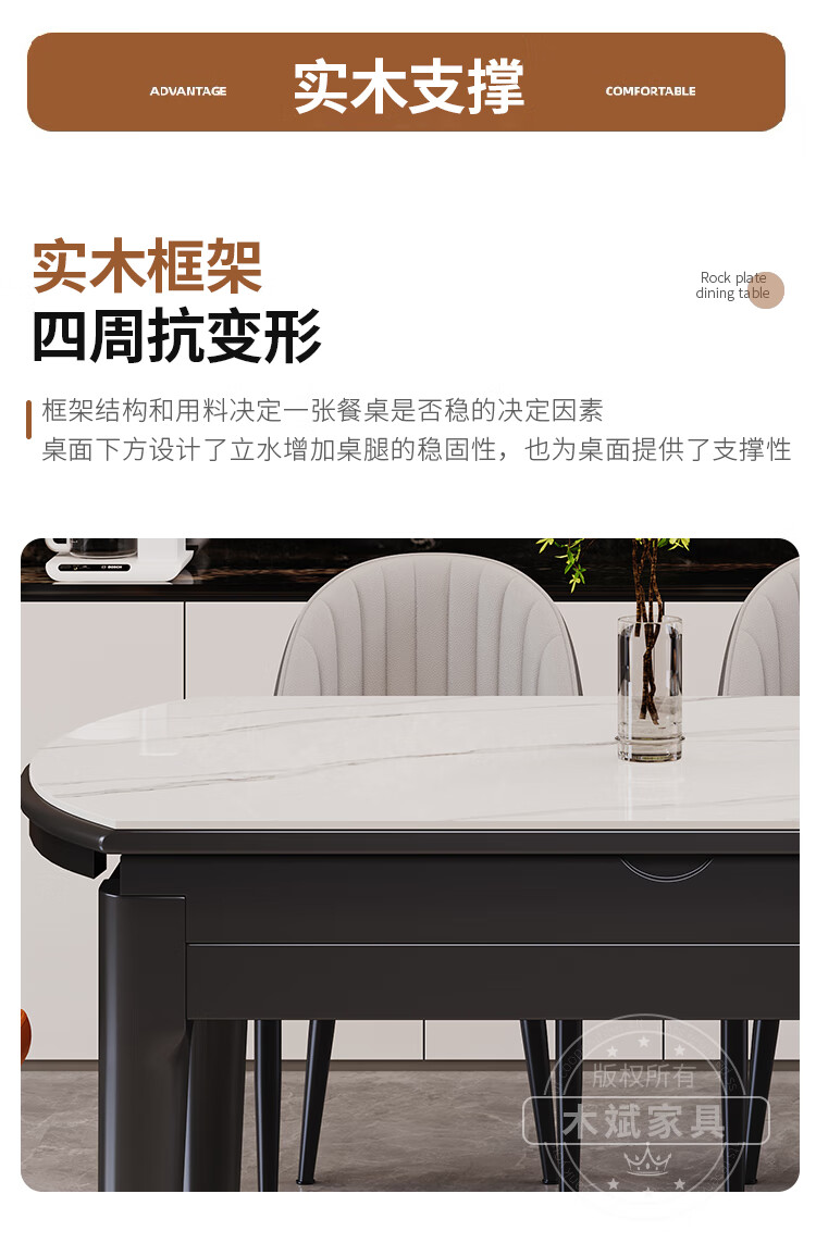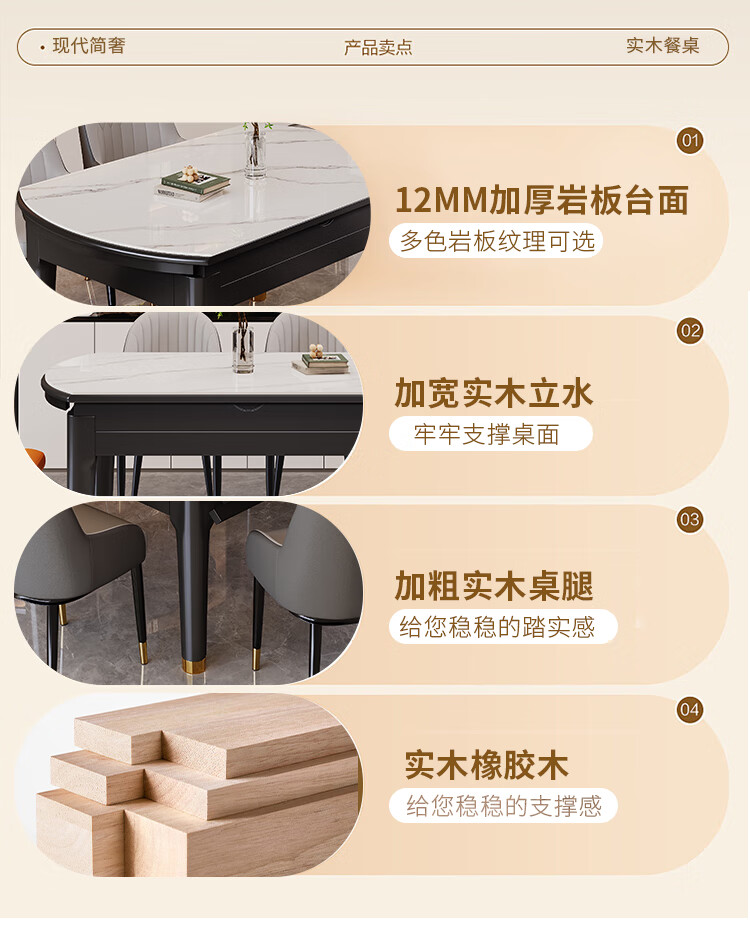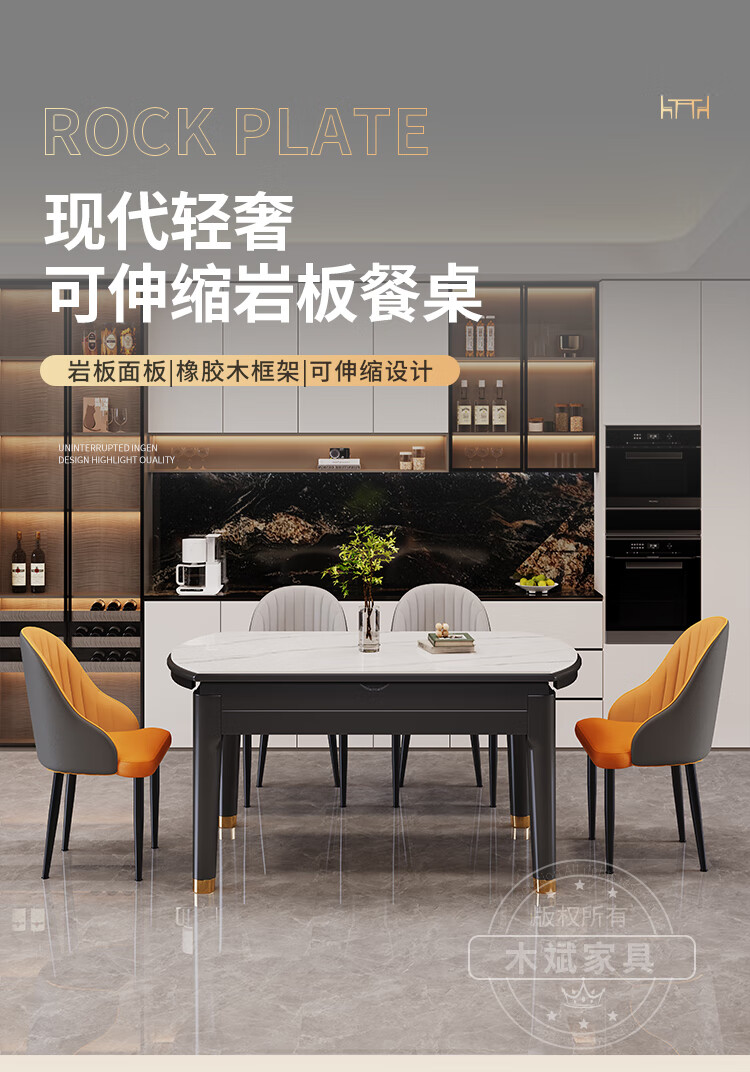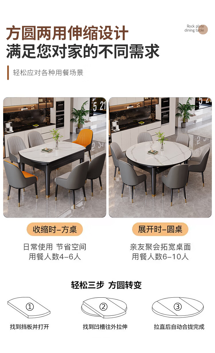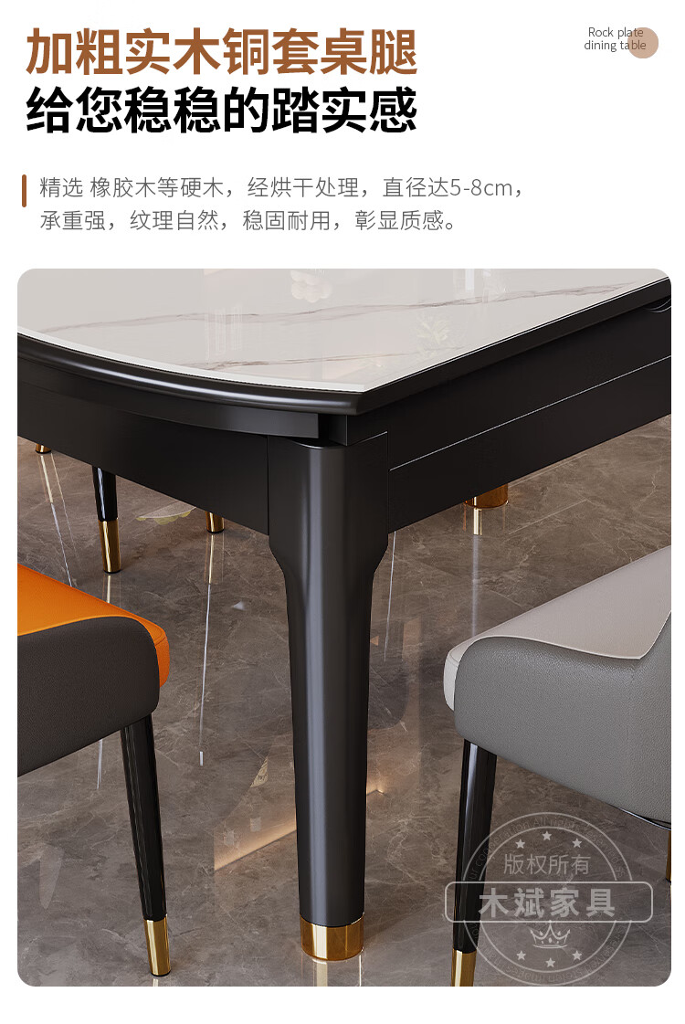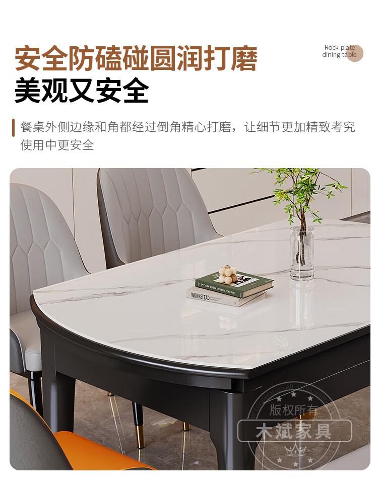 木斌实木岩板餐桌椅子全套现代简约家用小户型伸缩可折叠饭桌可变圆桌 【12MM岩板】 1桌6菠萝椅 (抗菌岩板) 1.2米