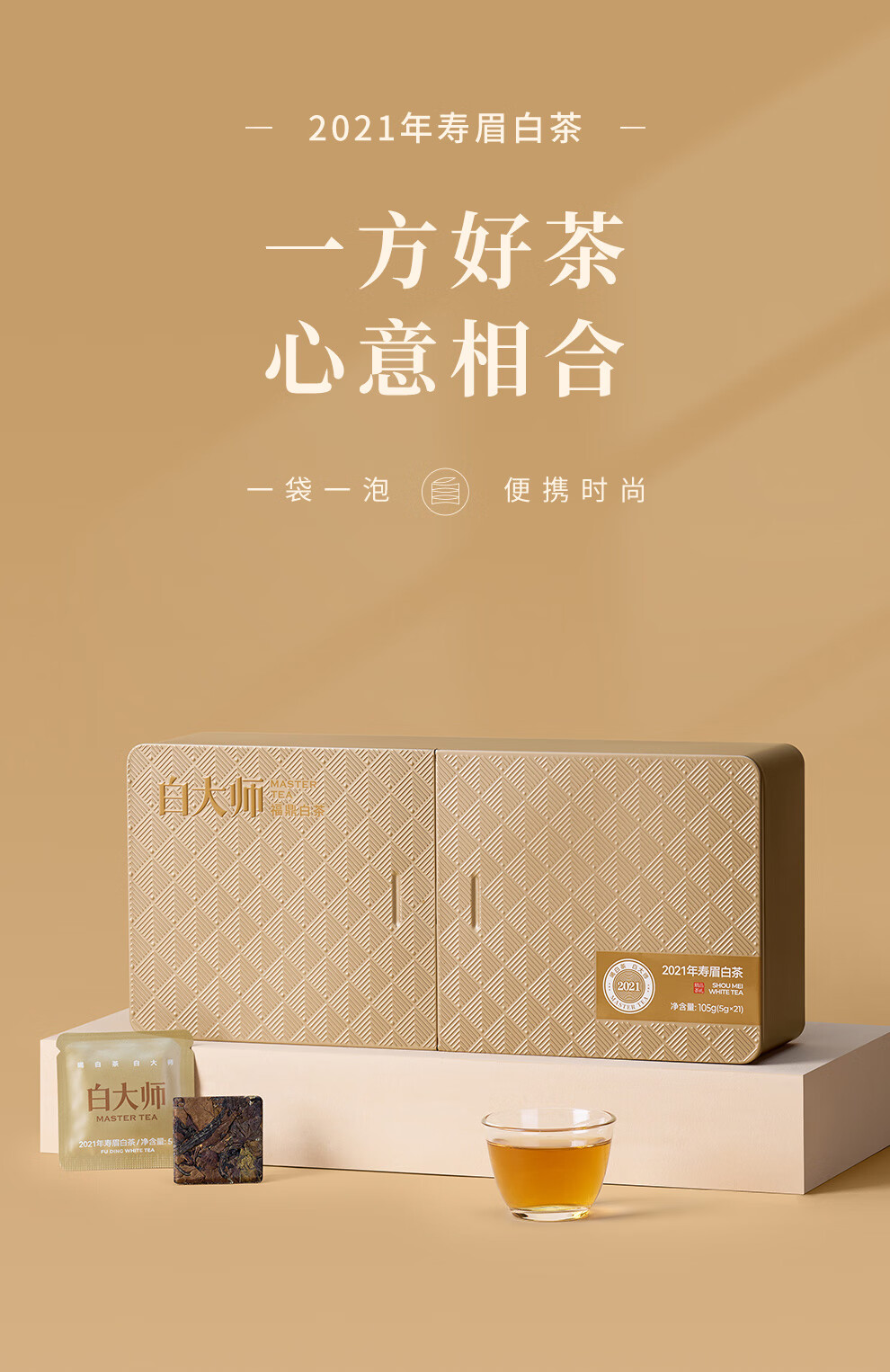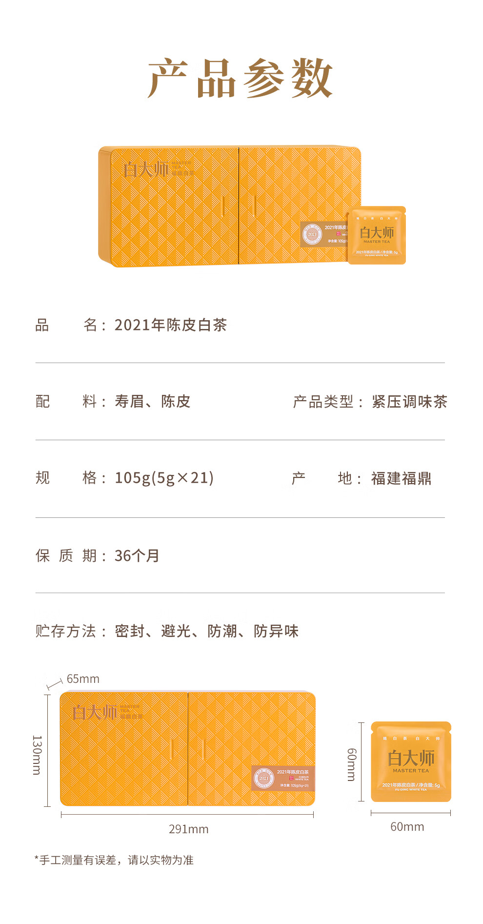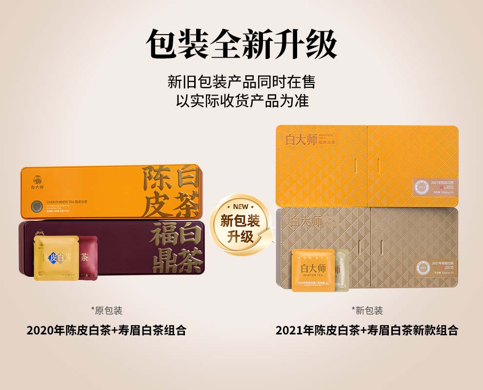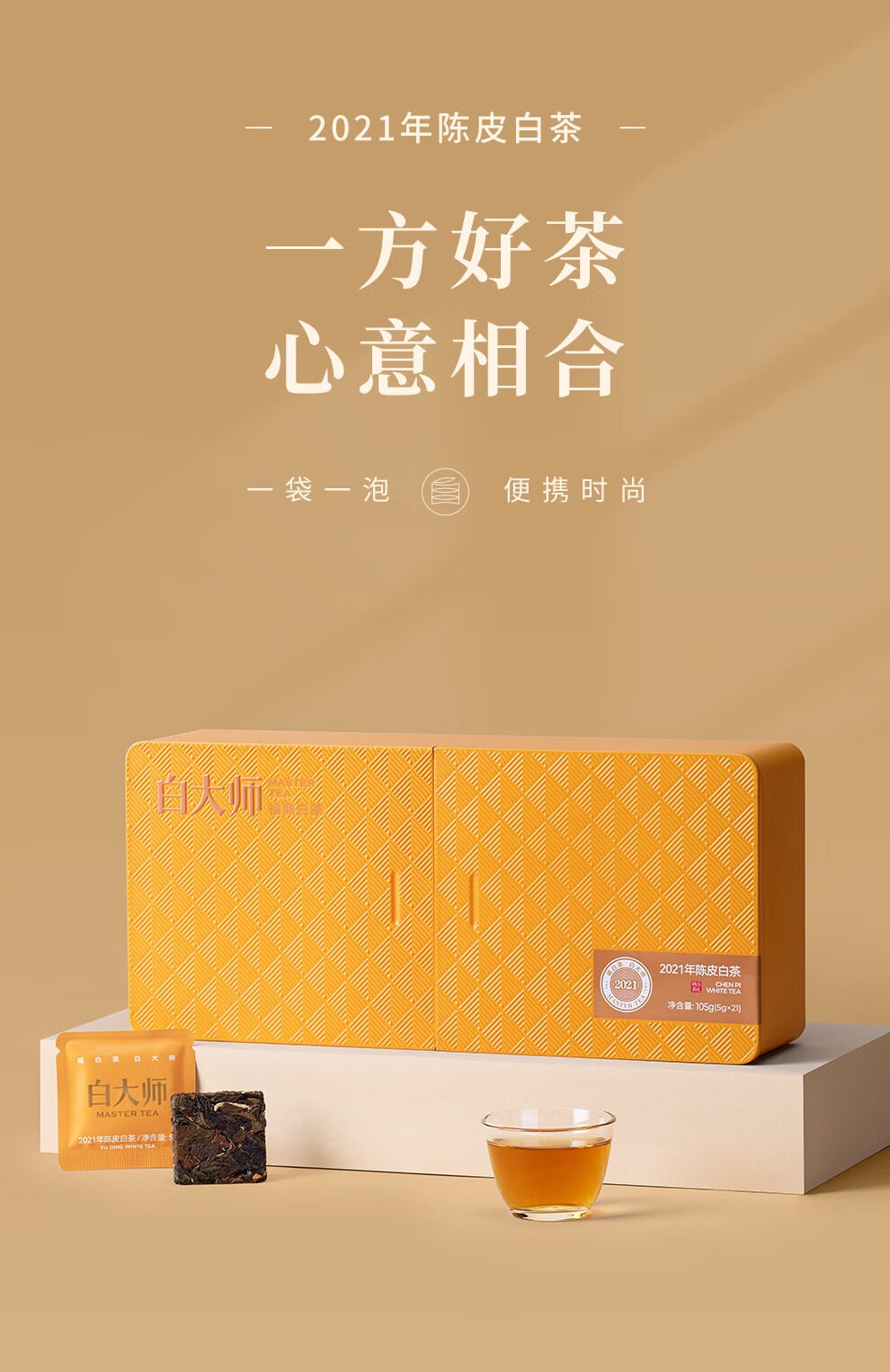 白大师茶叶福鼎白茶陈皮寿眉210g 2021年饼干茶礼盒装茶叶送礼自喝茶叶