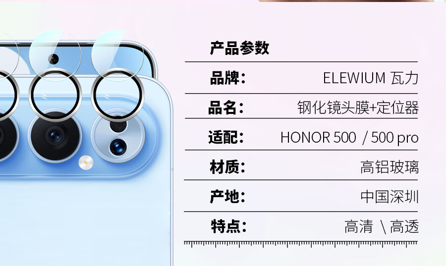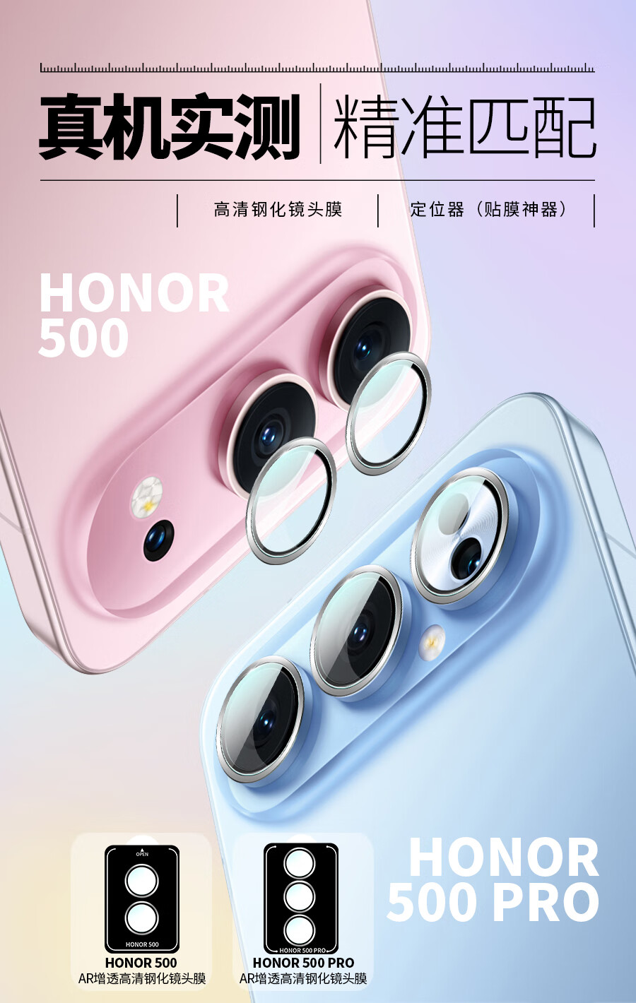 瓦力【AR增透】适用荣耀500镜头膜HONOR 500手机后置摄像保护膜高清鹰眼钢化膜防摔抗指纹-带定位器