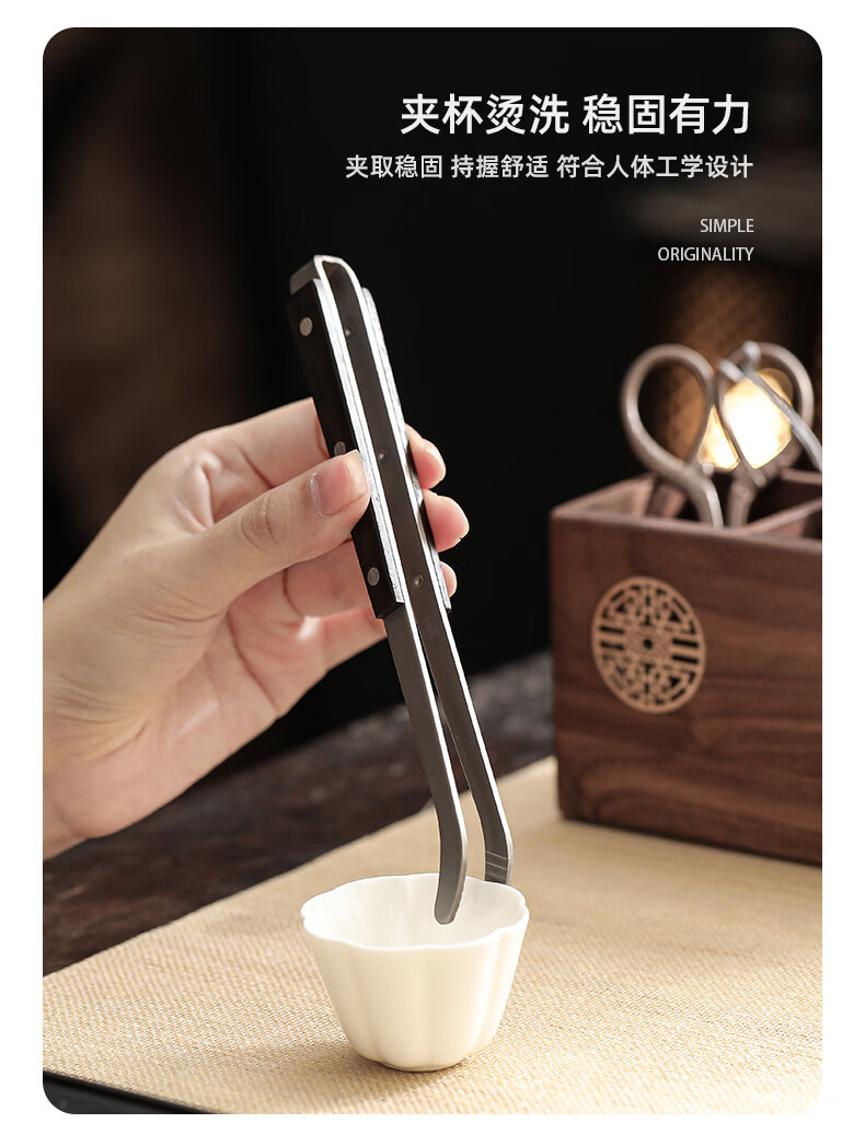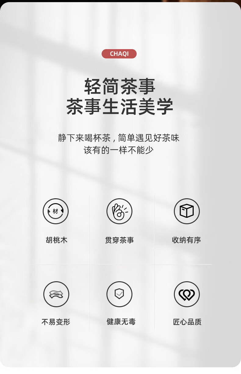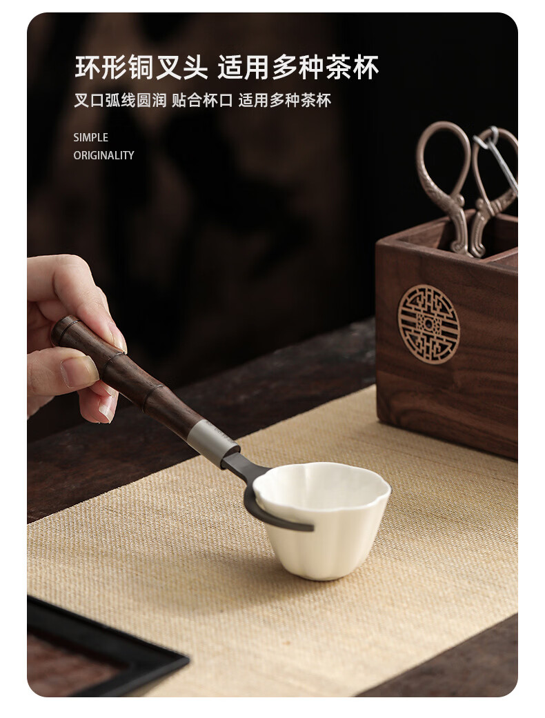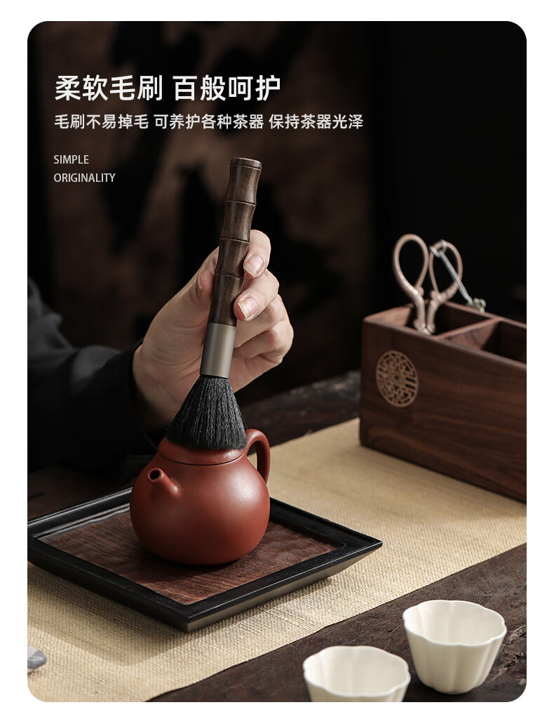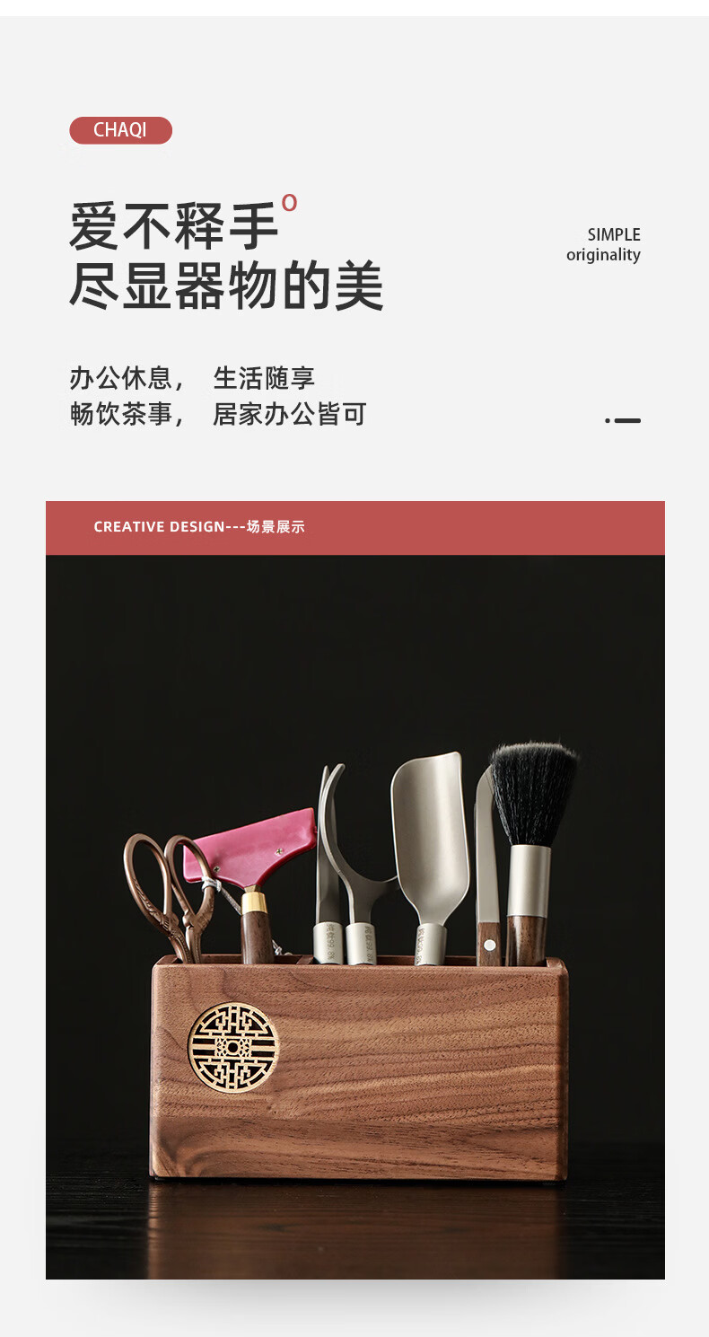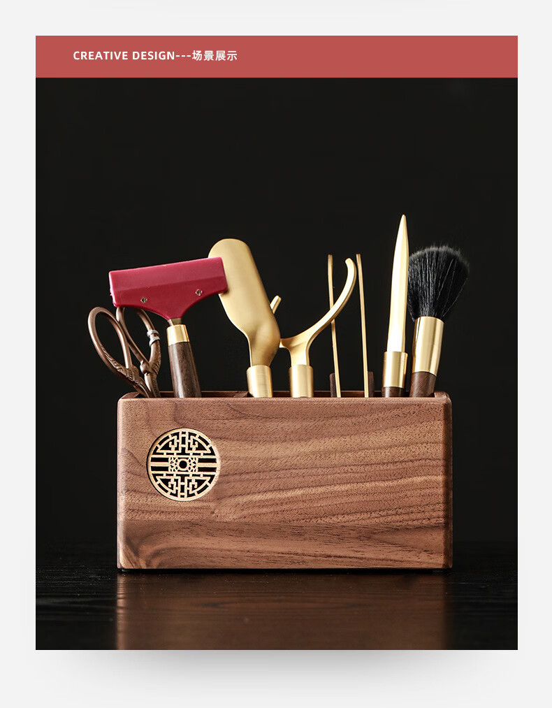 语森忆胡桃木六君子收纳桶套装茶道用品大全茶剪茶刀养壶笔家用茶具配件 双格茶道桶+黄铜竹节配件