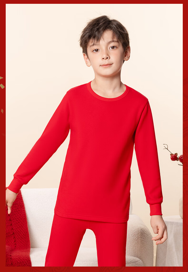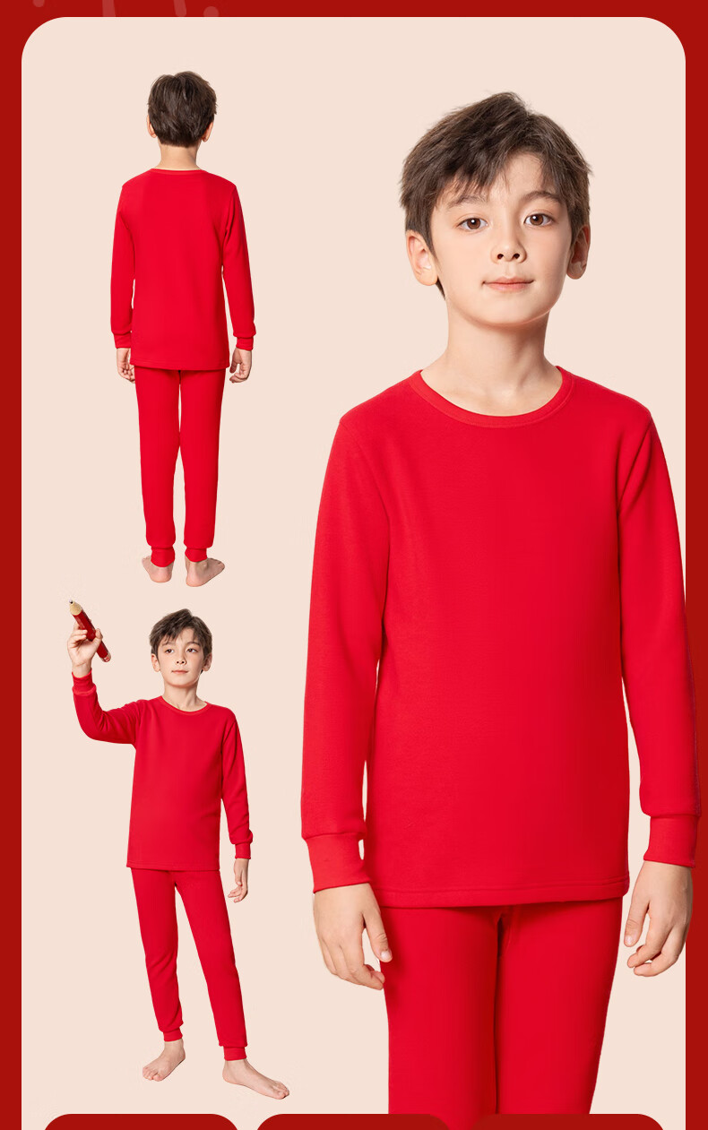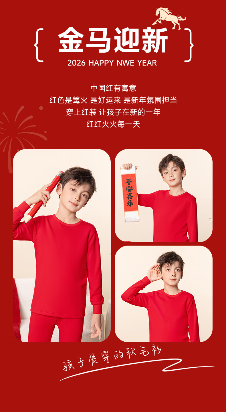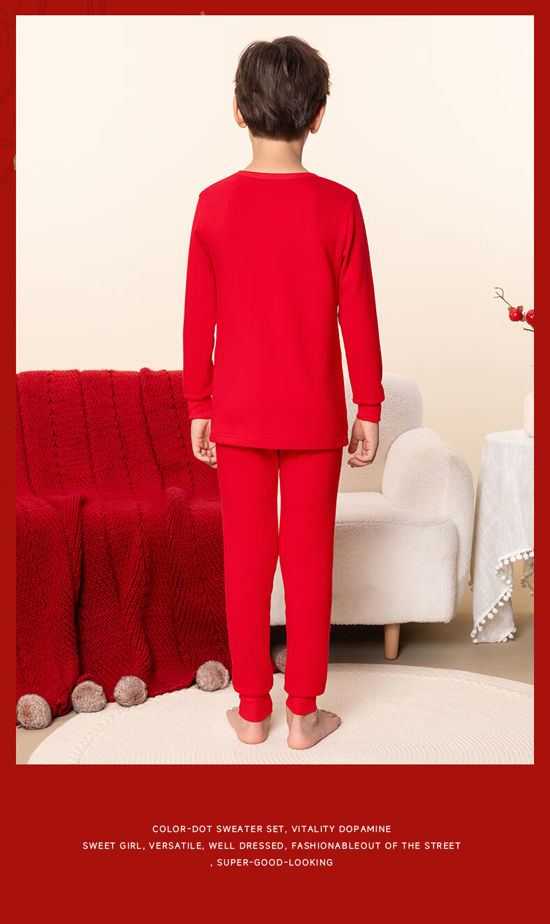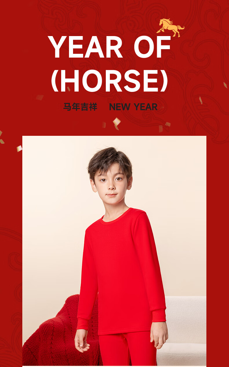 马克华菲儿童秋衣秋裤套装男童保暖内衣秋冬季睡衣纯棉本命年新年衣服红色 红 M剪纸小马 110
